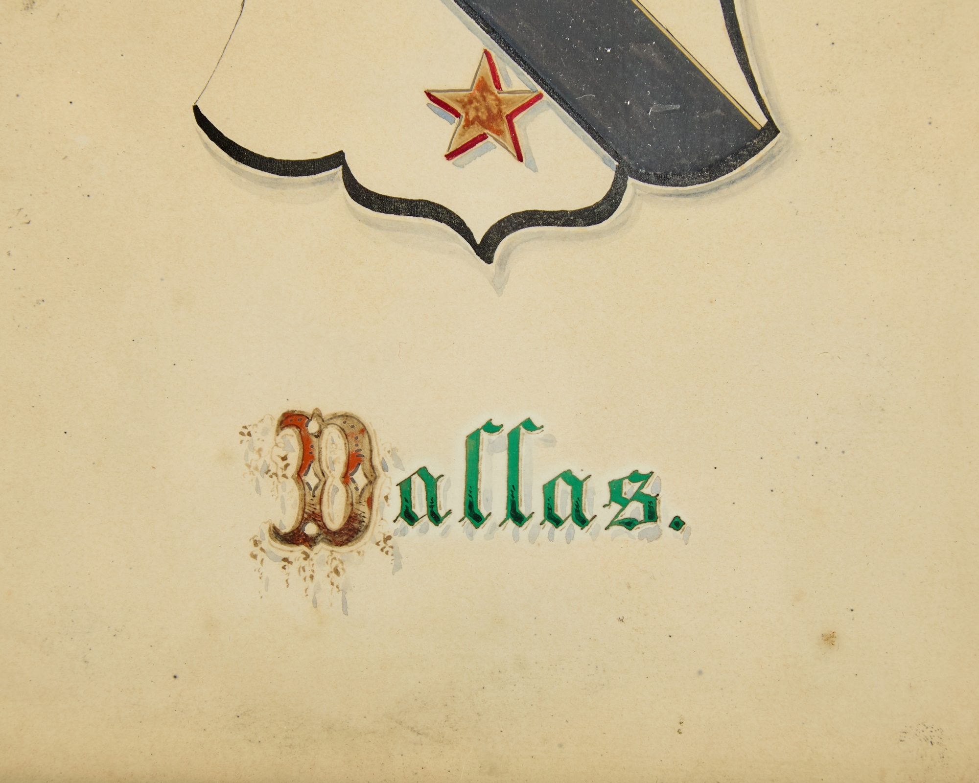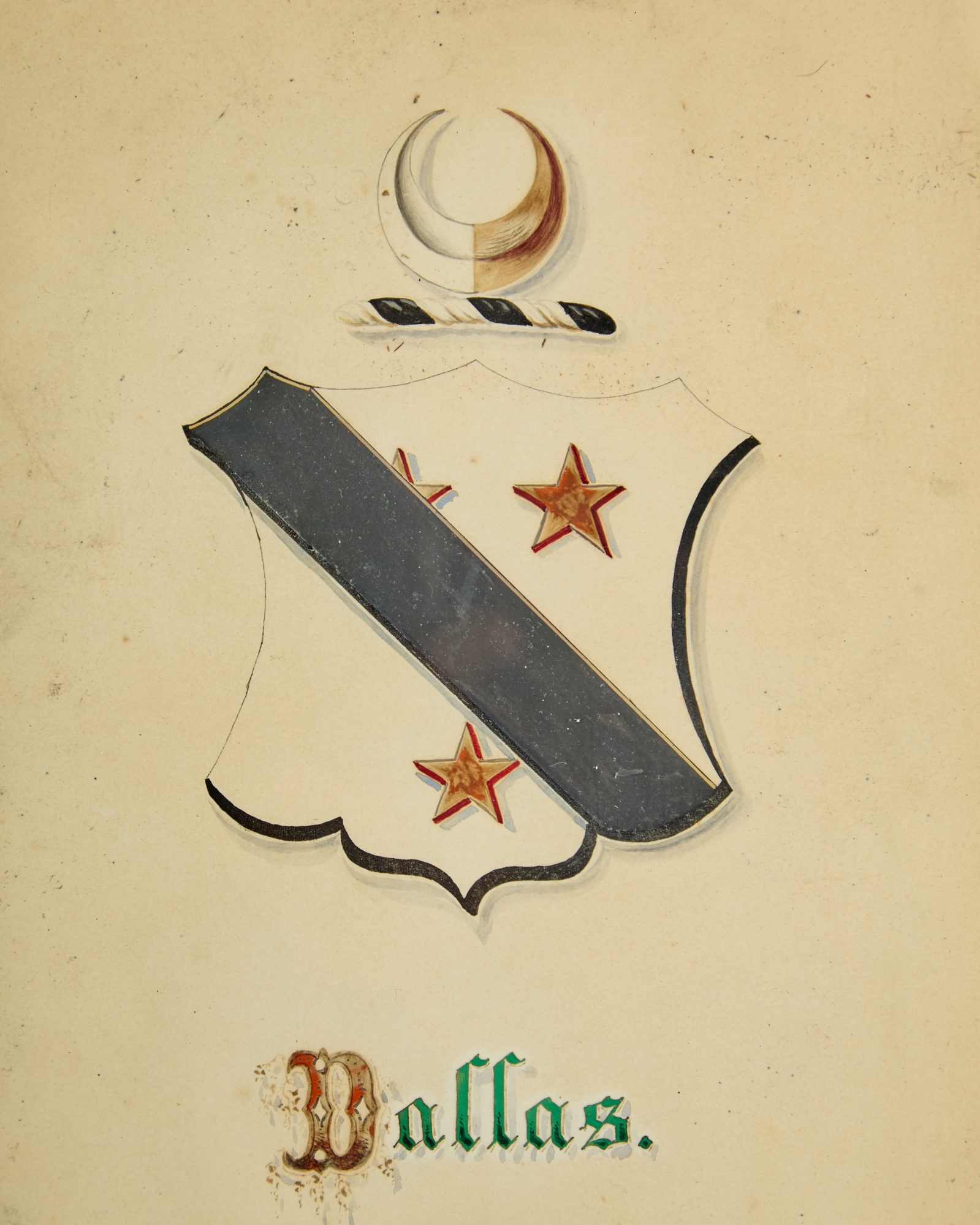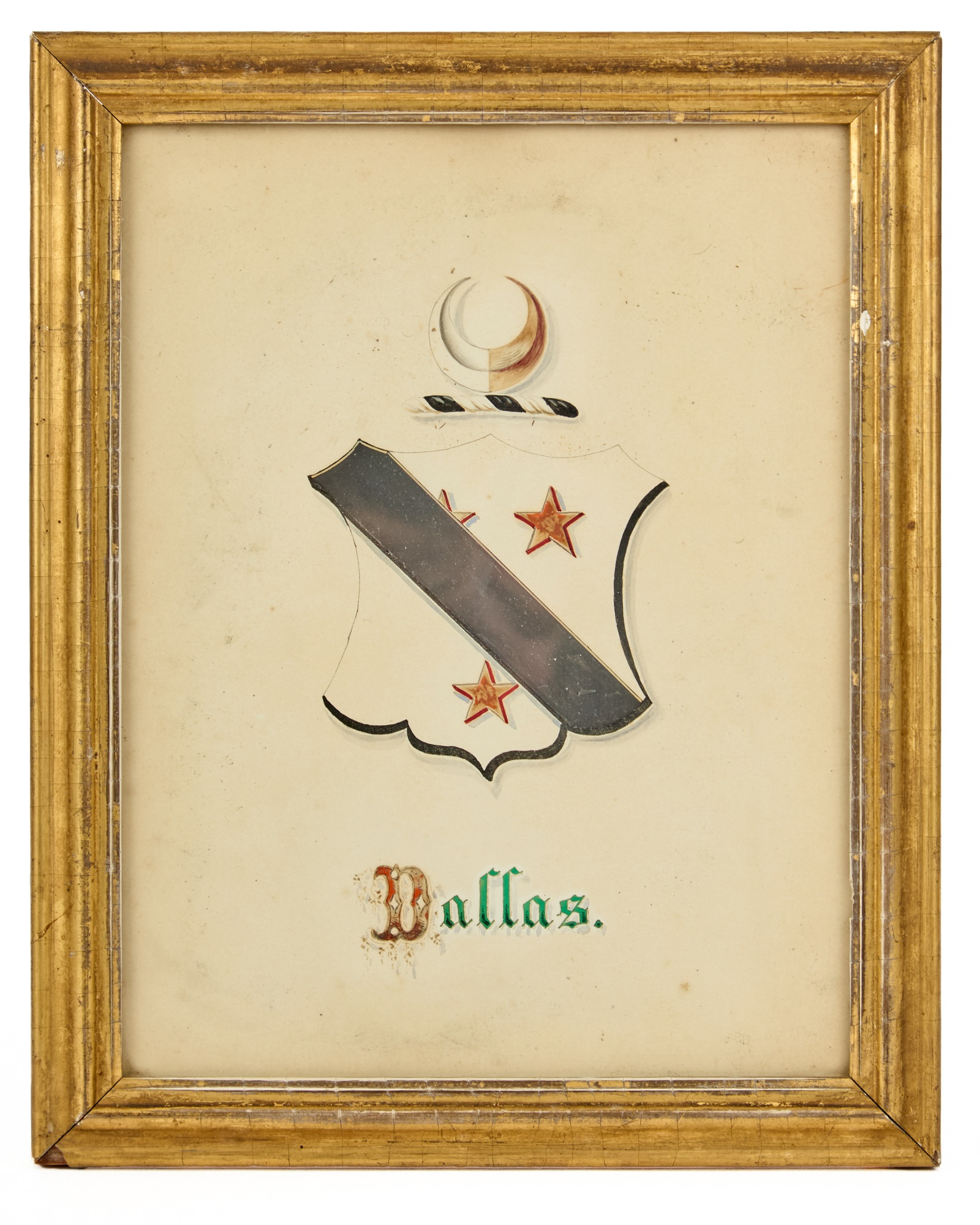 Aesthetic movement font, watercolor on paper 13 x 10 1/2 inches (overall including frame). Provenance: by direct descent of the family of George M. Dallas, Vice President under James K. Polk. Condition: Toning, surface grime.