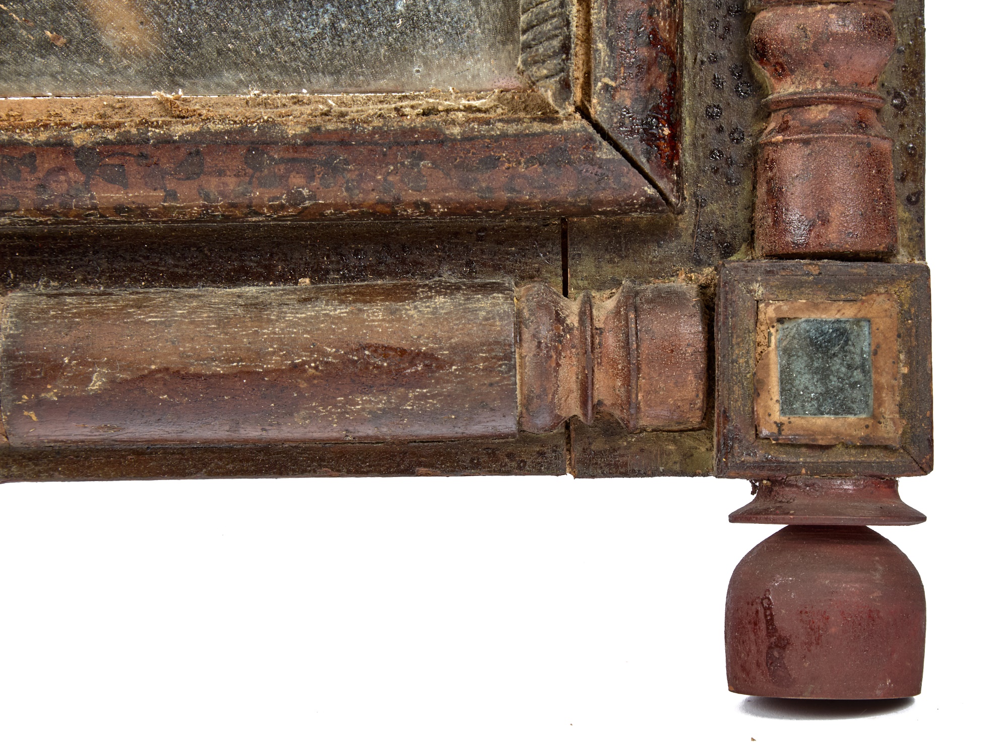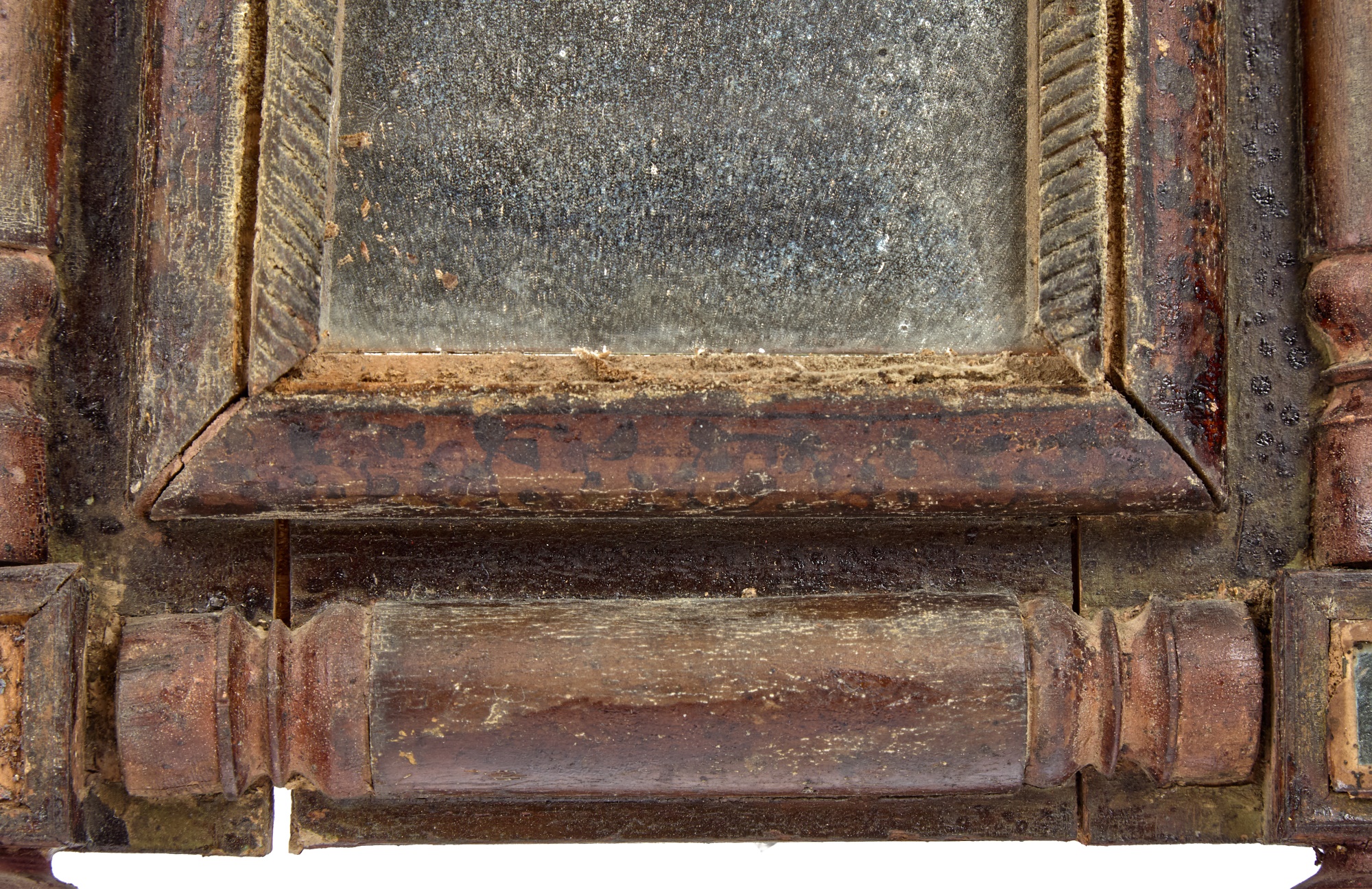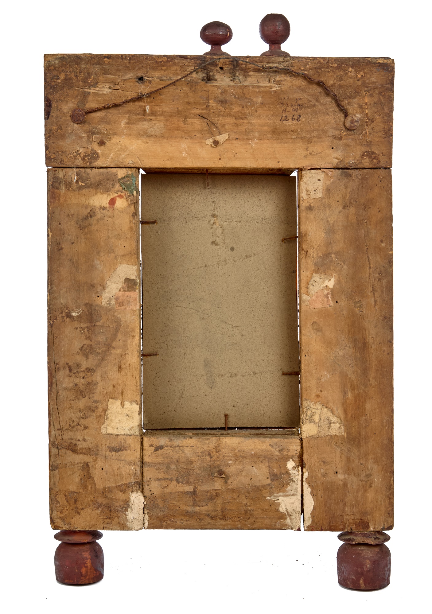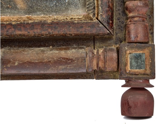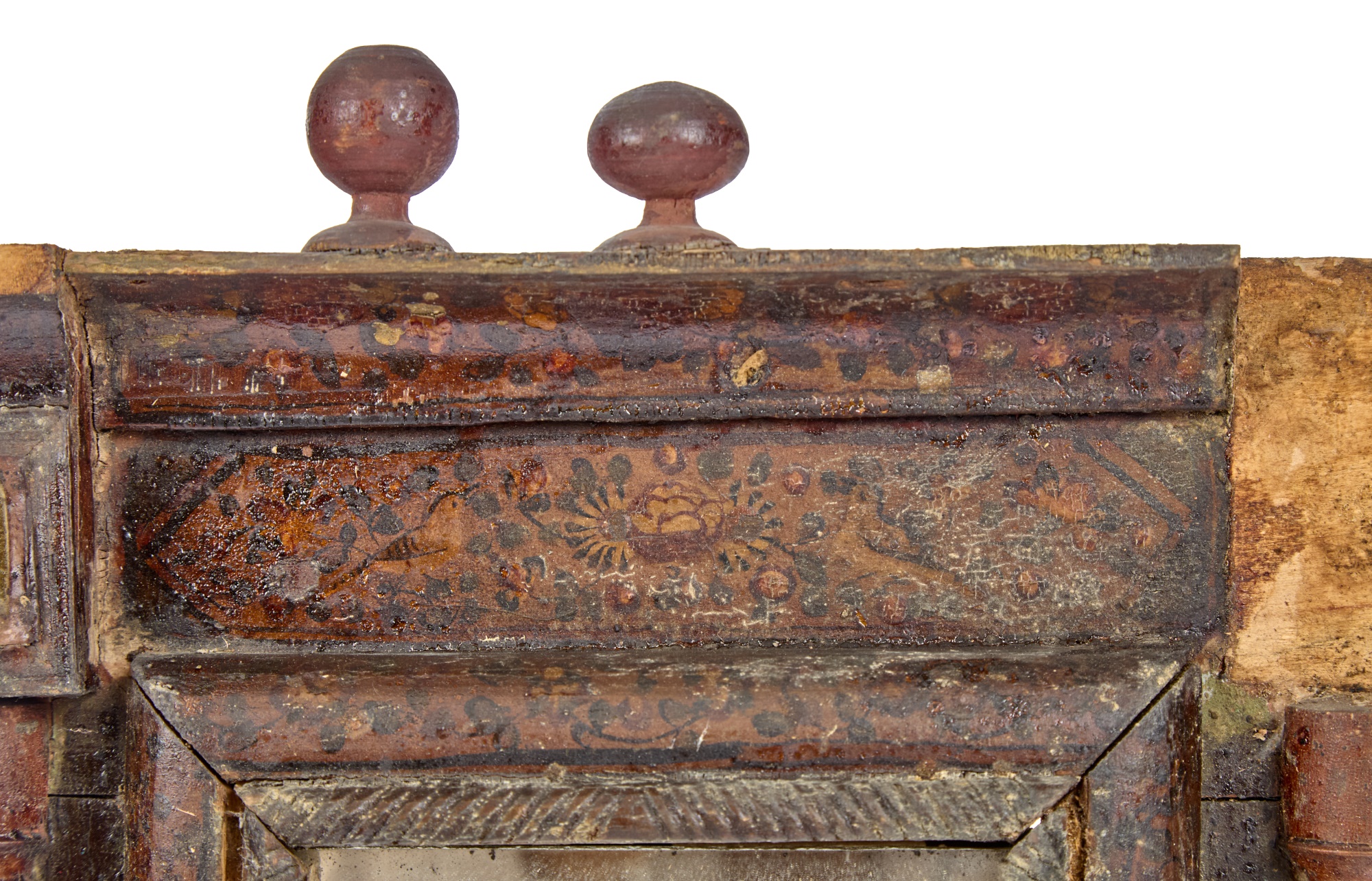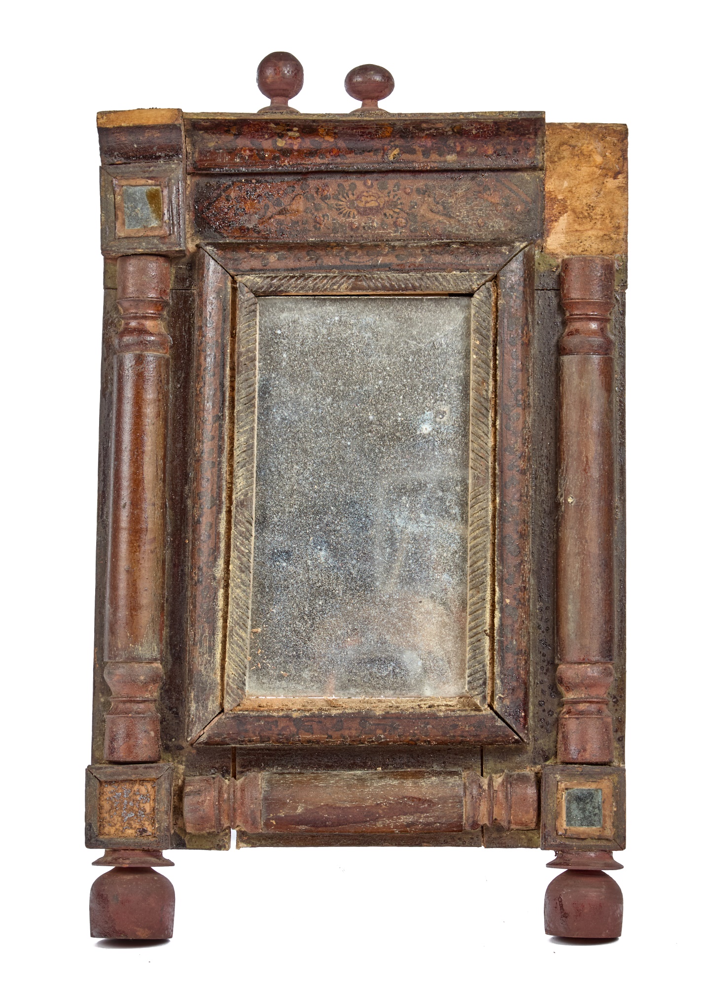 Great floral & songbird decoupage to the crest & frame of mirror. 19 x 11 1/2 inches. Condition: In need of restoration. Temp No 2275