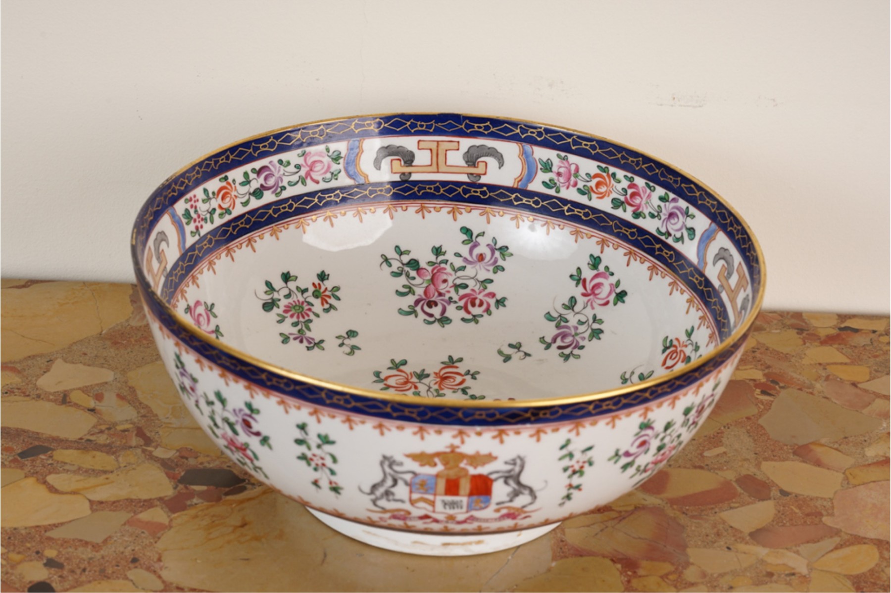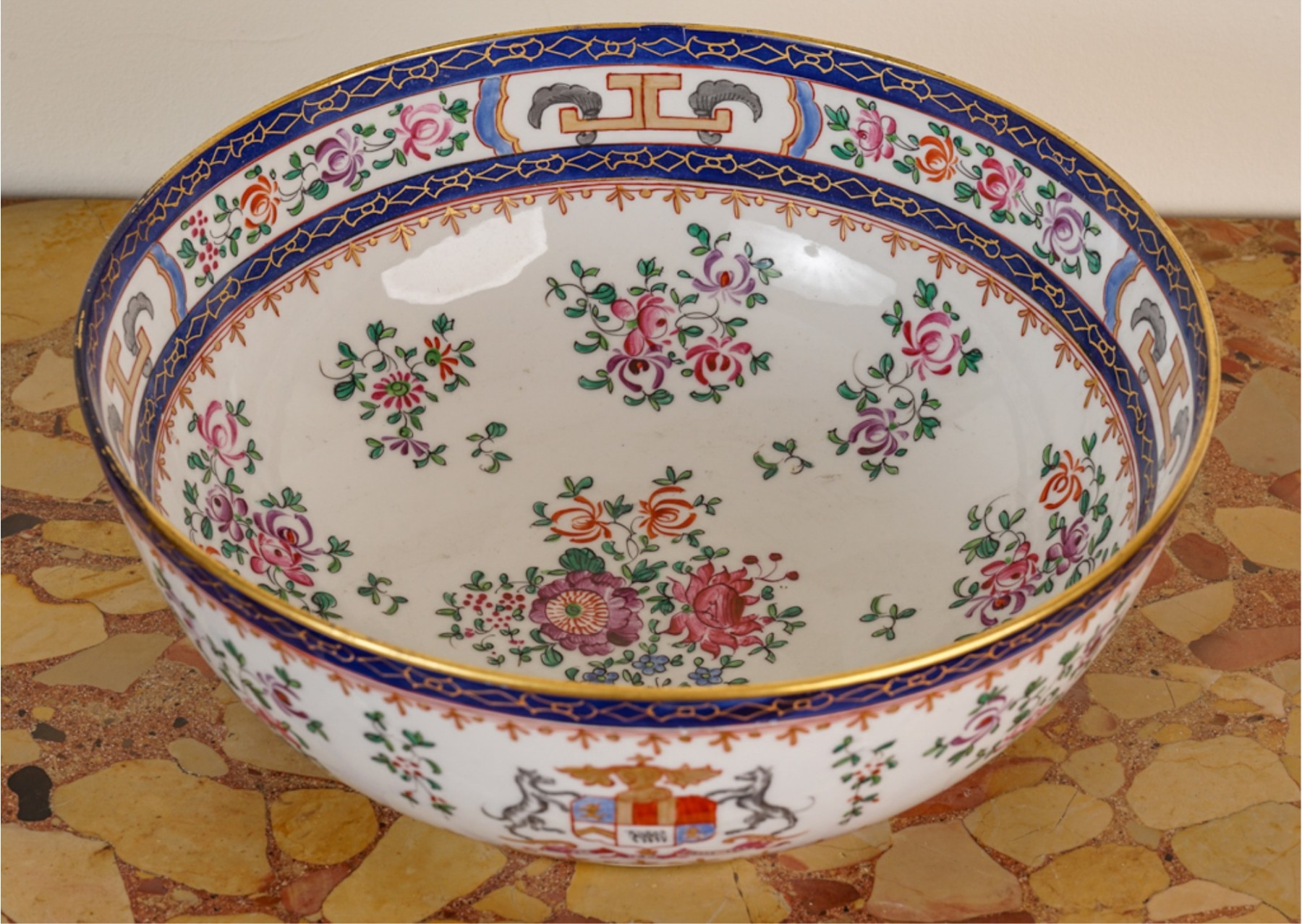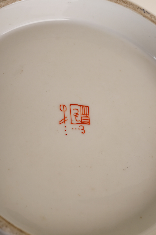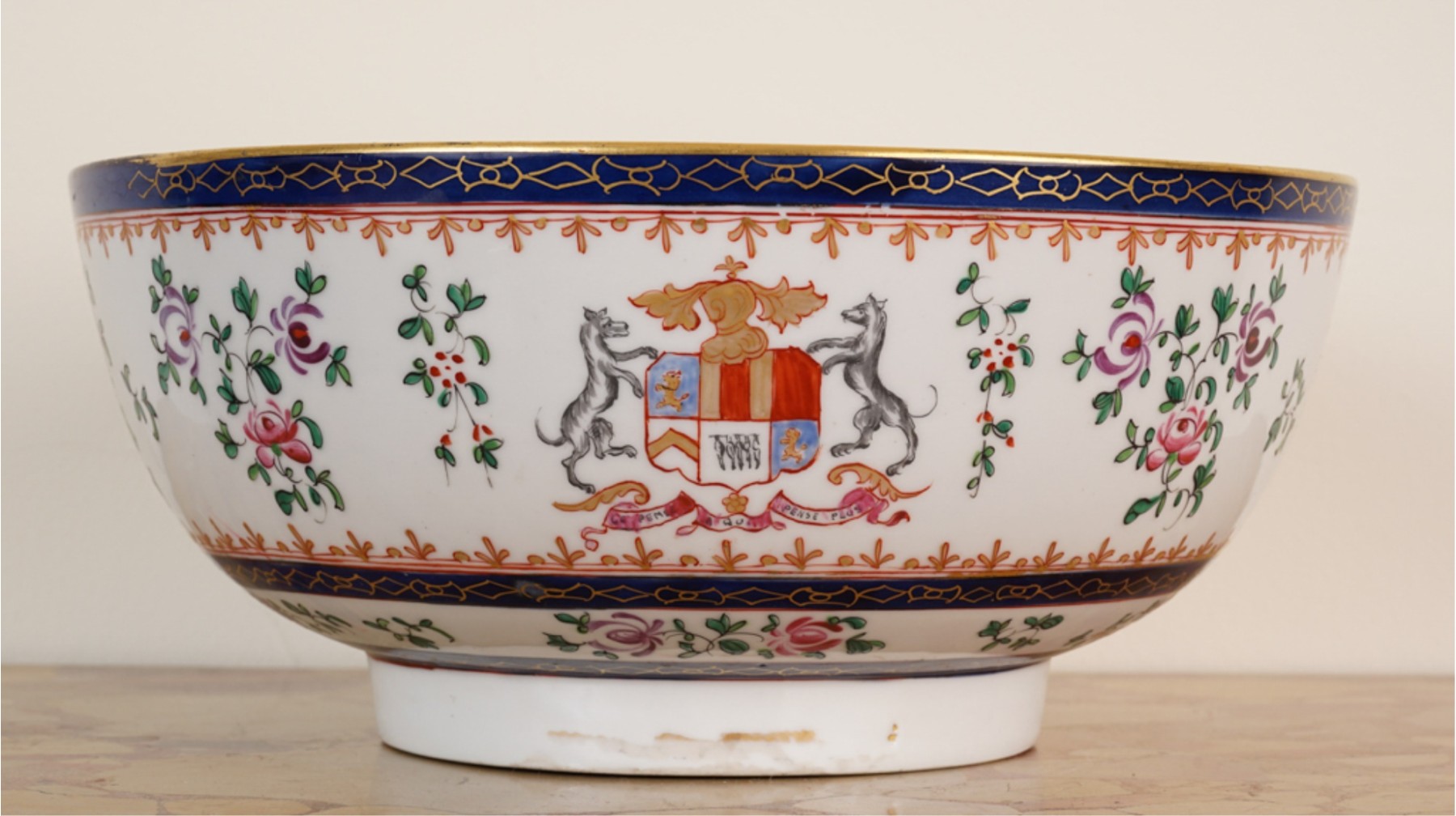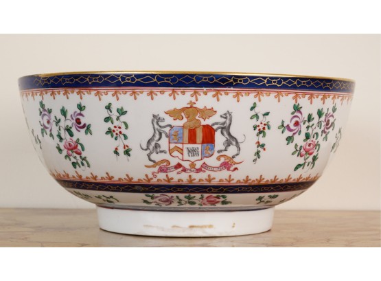 Hand painted with coat of arms. Signed on bottom. 5 x 11 3/8 inches.
