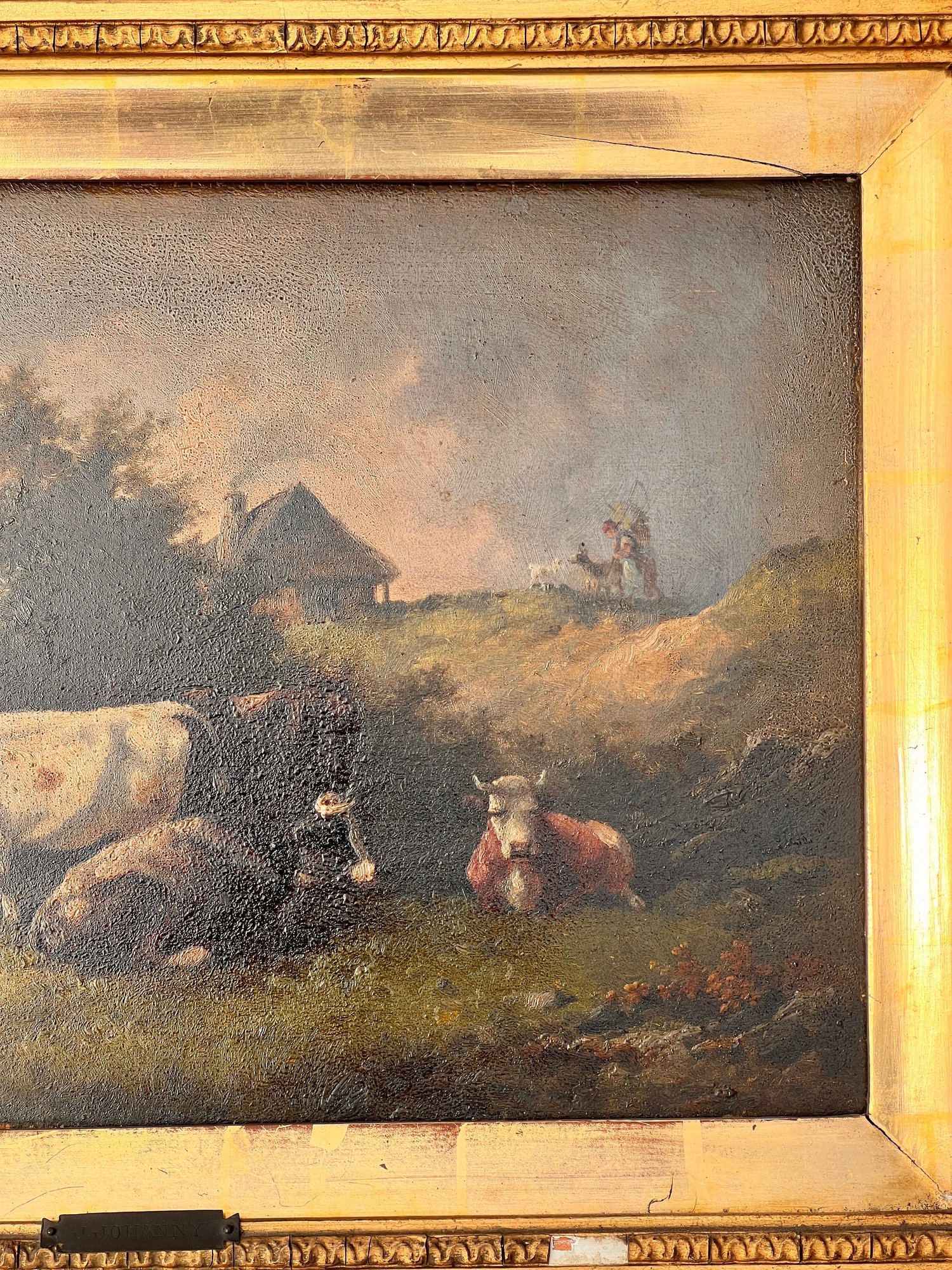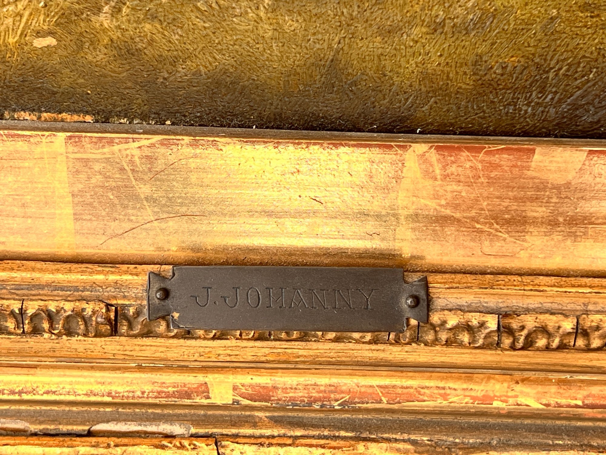 Unsigned, plaque indicates J. Johanny to be the artist. Oil on panel 10 x 15 inches. framed 19 x 24 inches (overall)
