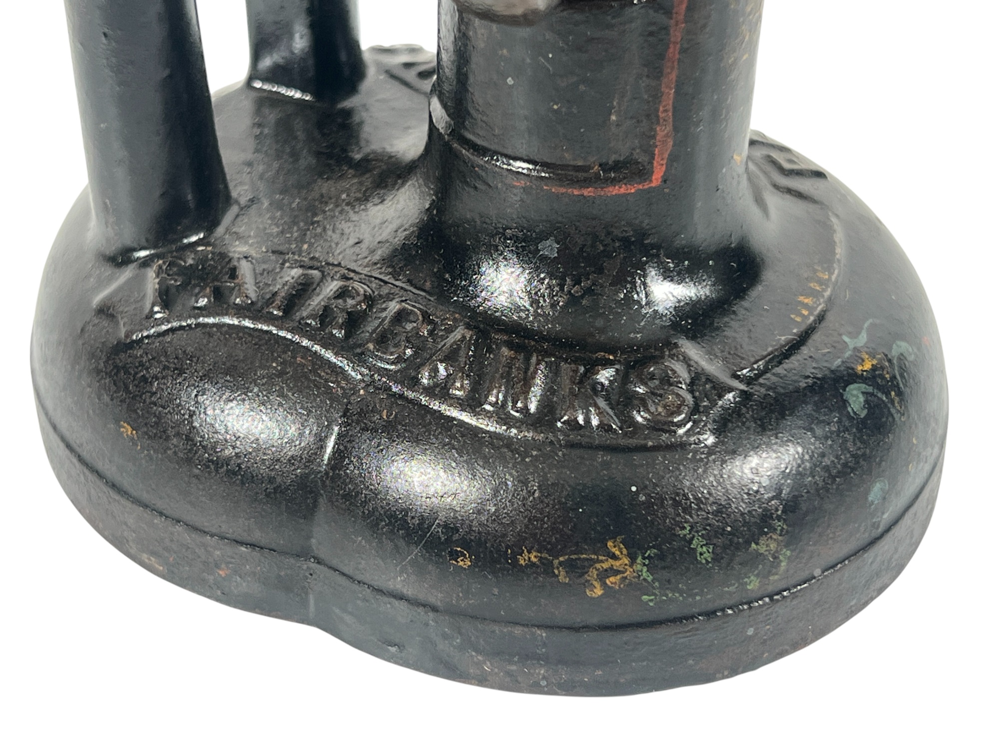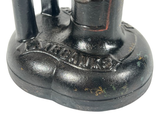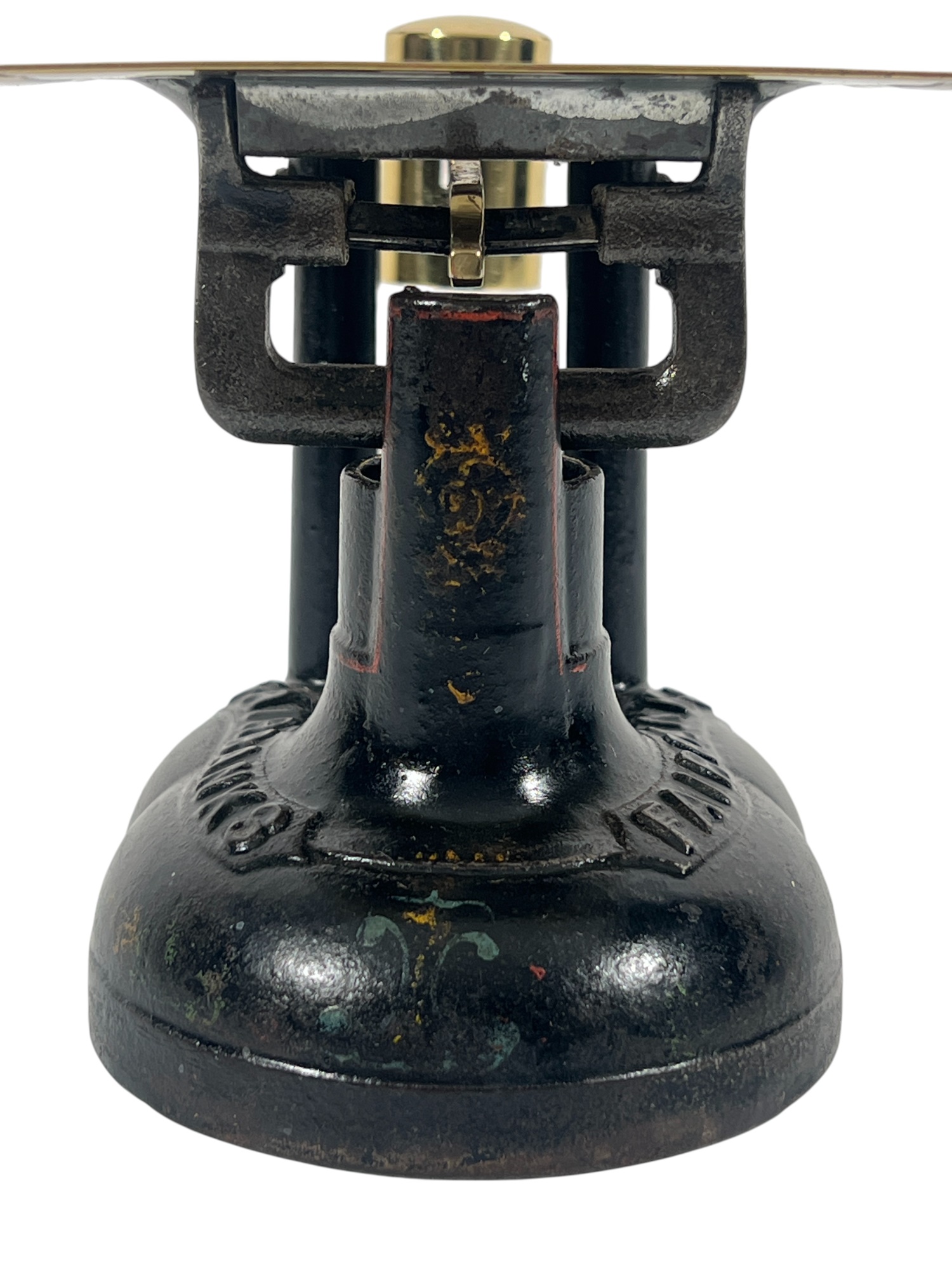 Cast iron base with nice paint decoration. 4 x 10 inches. Condition: Wear to paint from age & use. Temp No 8829