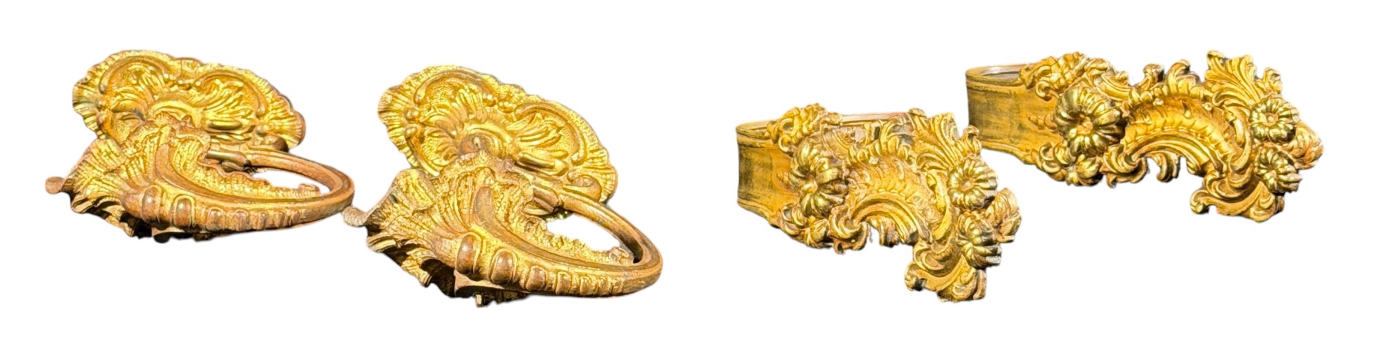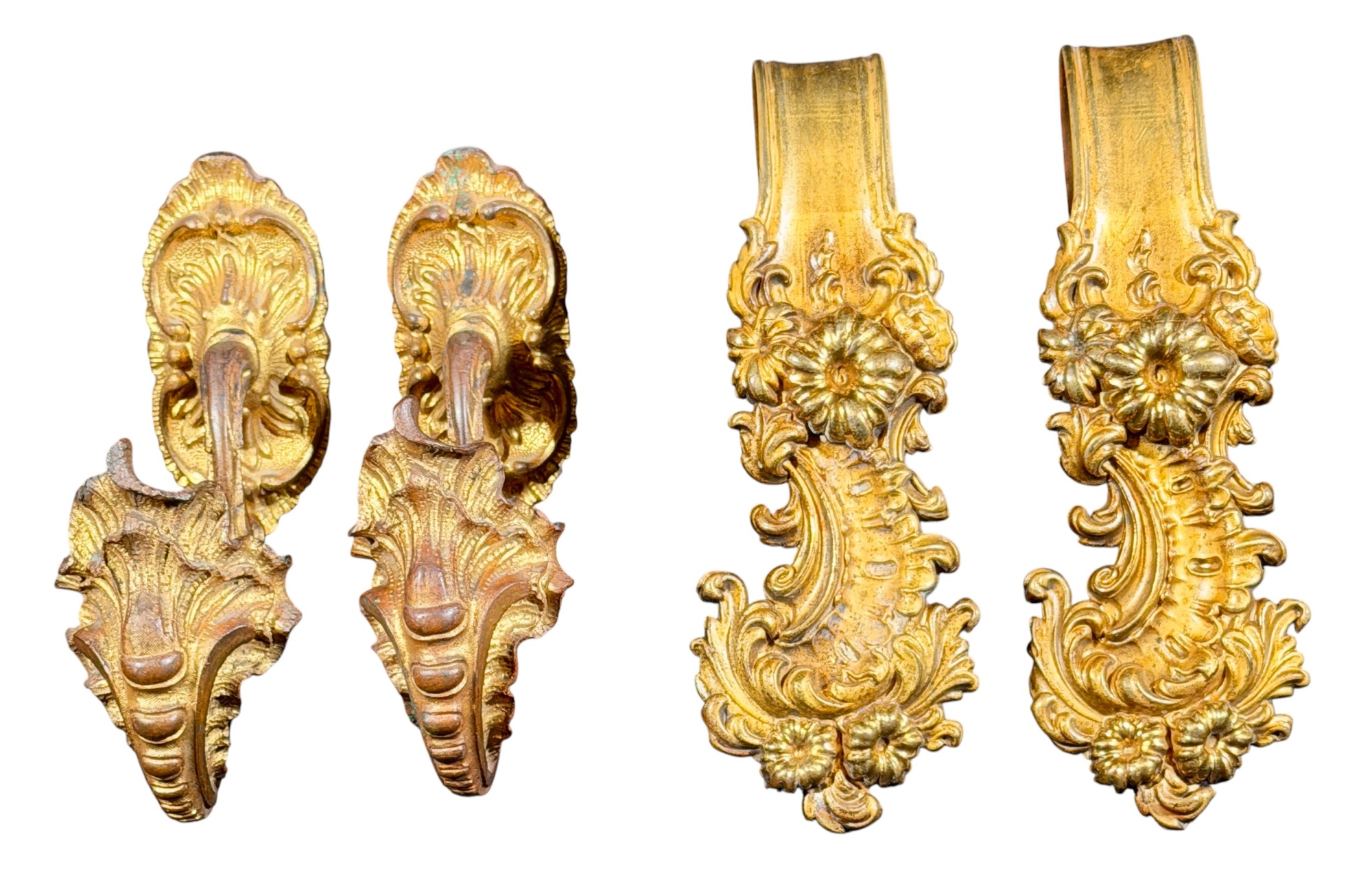 (1) ormolu pair and (1) brass pair. Condition: Wear to gilt. Temp No 8667