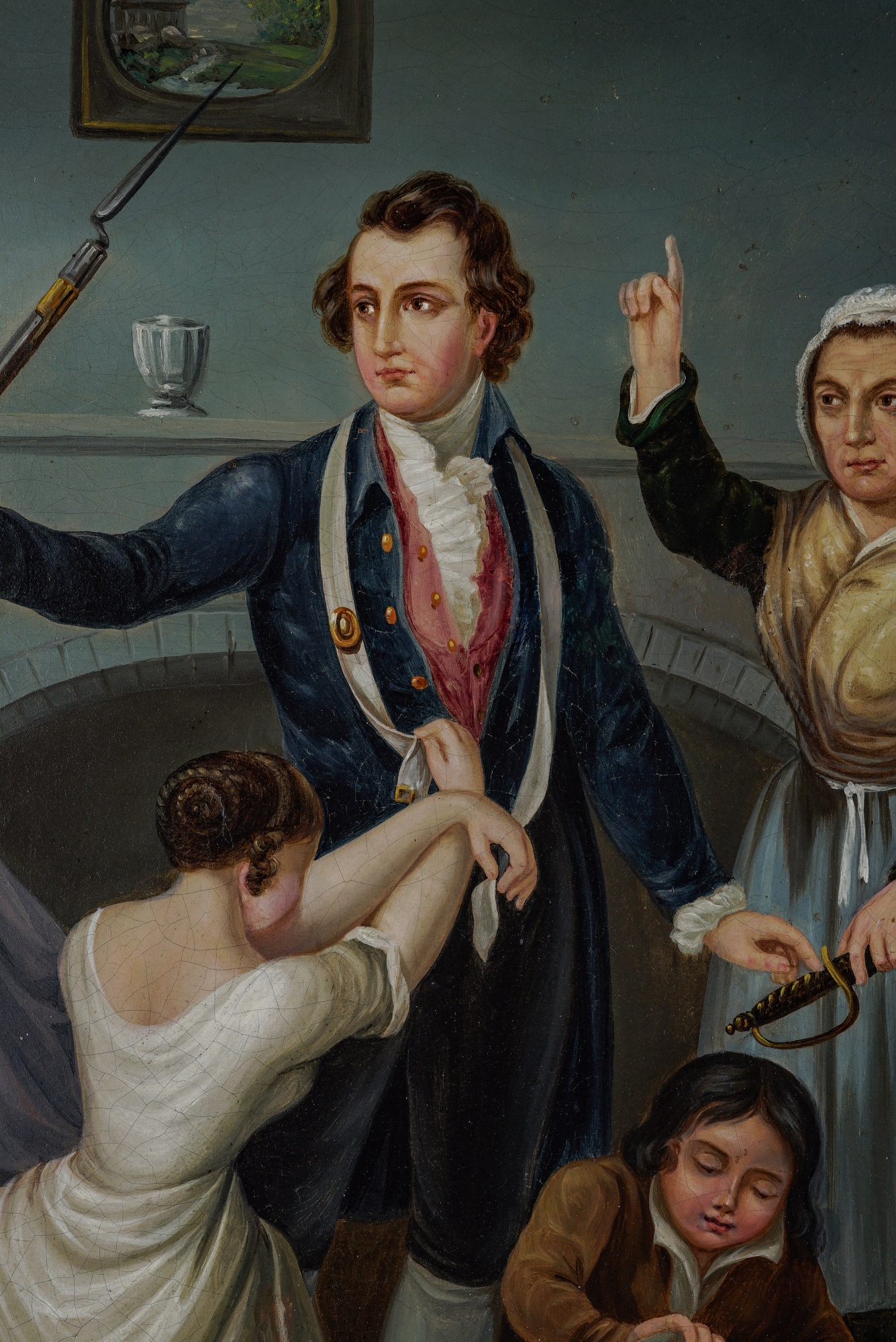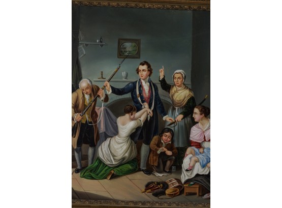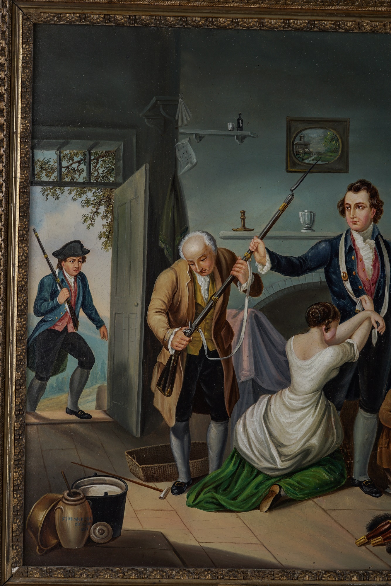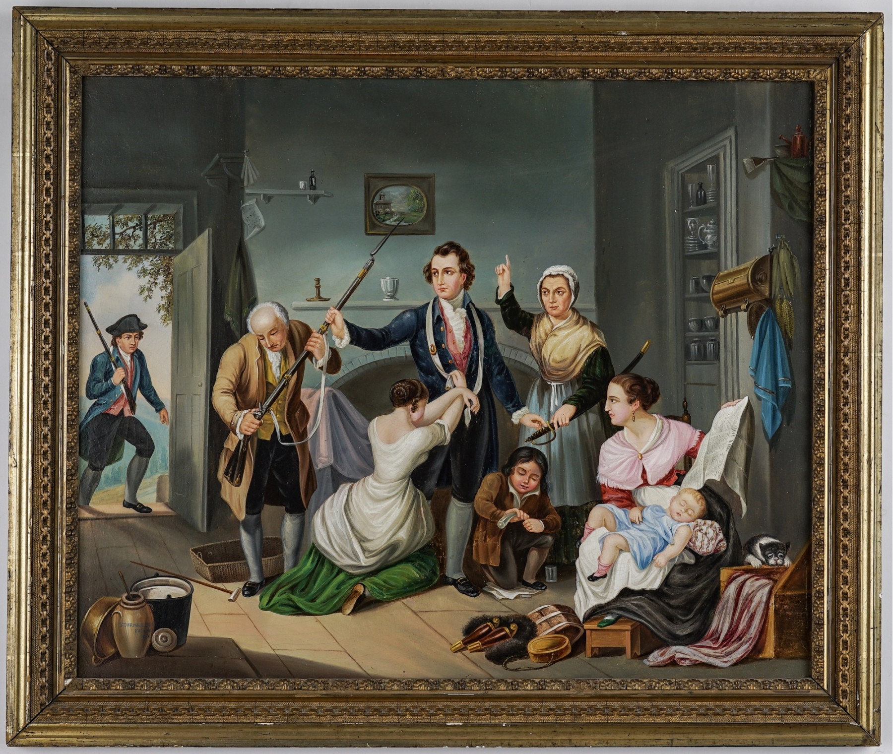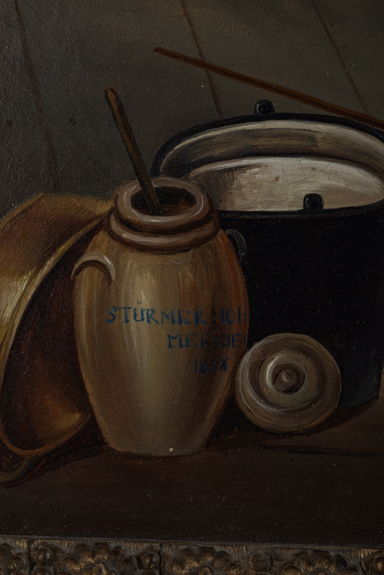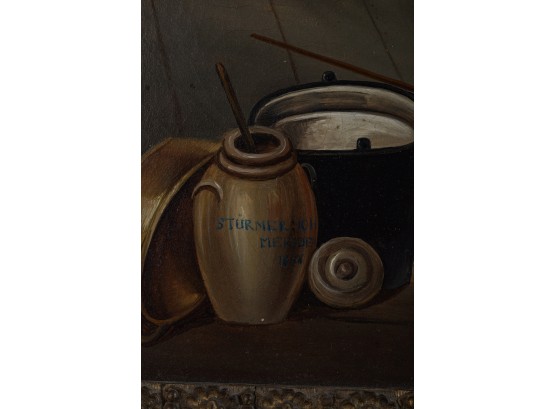 Oil on canvas on Masonite. Signed/titled lower left: "STURMER MERIDEI: IOH 1858". In a gold frame 26 1/2 x 31 1/2 inches overall