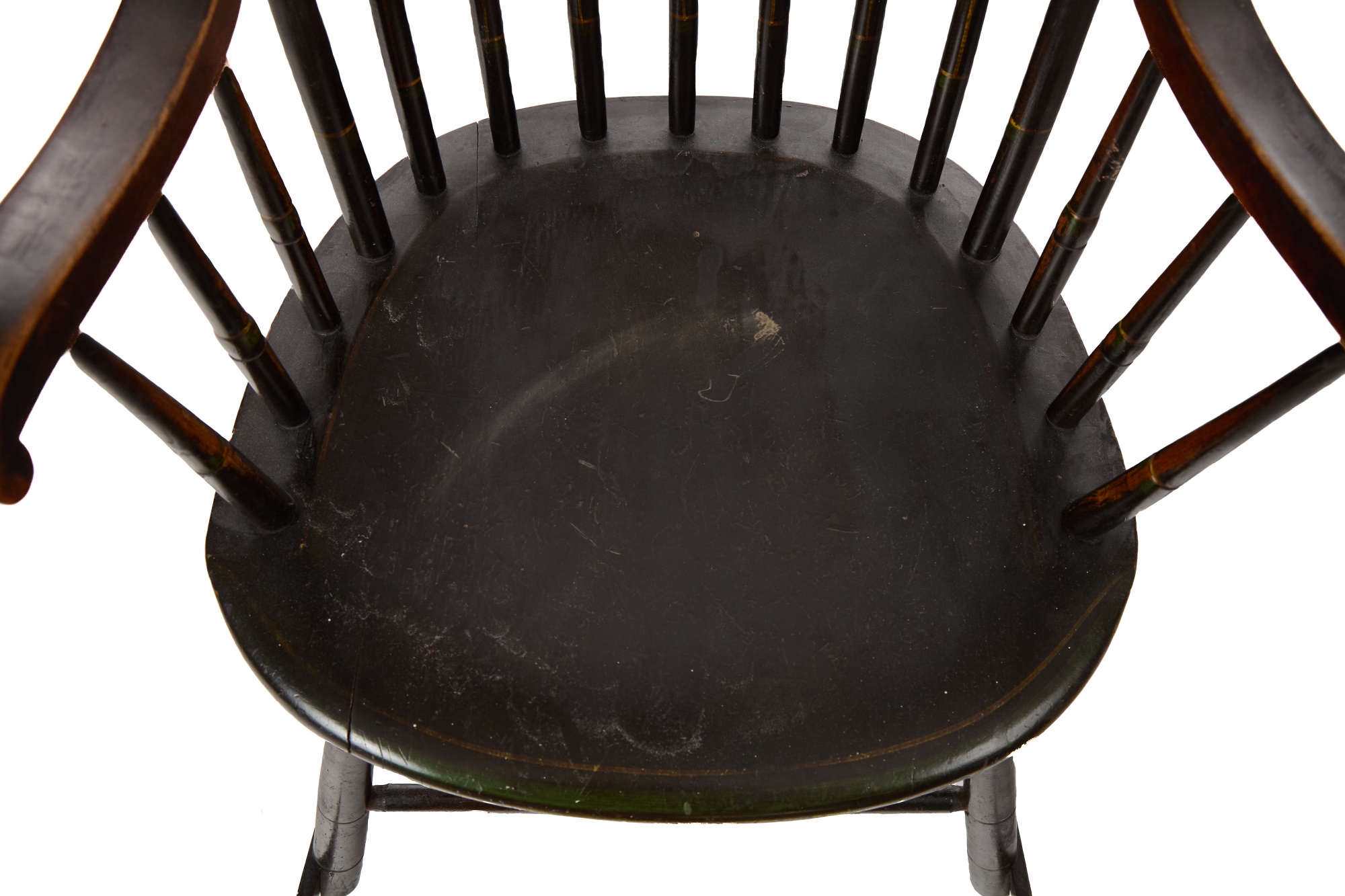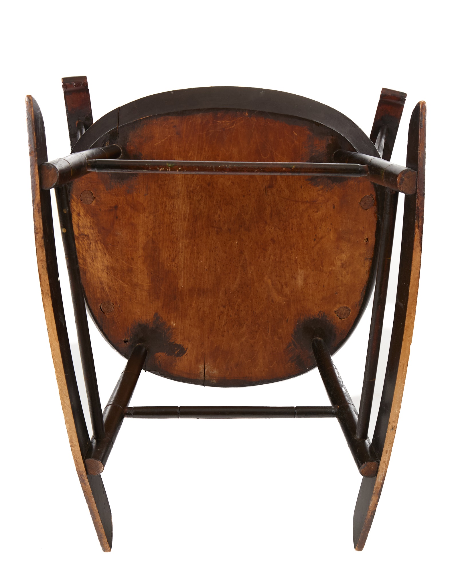 42 1/2 x 22 1/4 x 27 inches. Condition: Expected wear to surface. Remnants of pineapple stencil and gilt and green paint. Temp No 2072