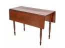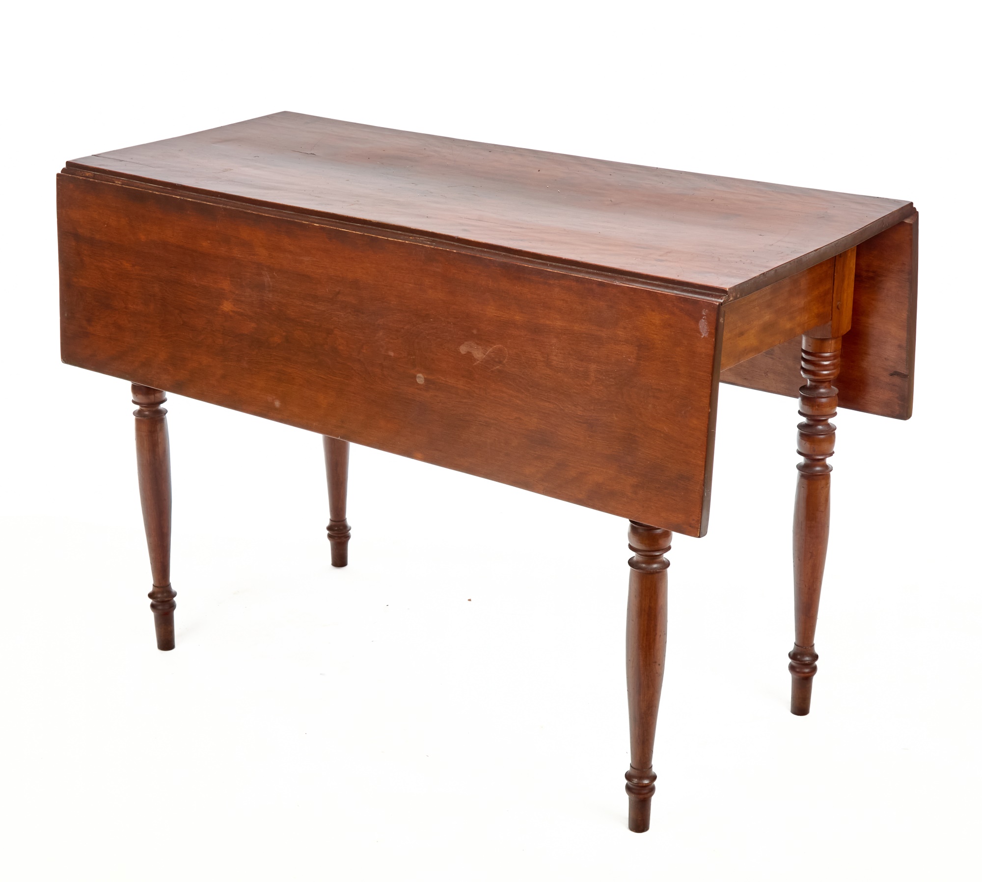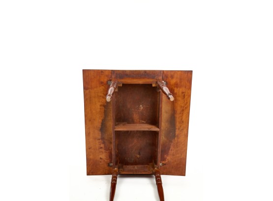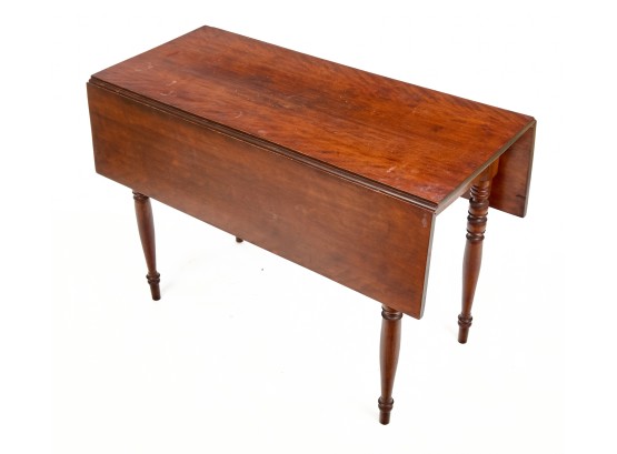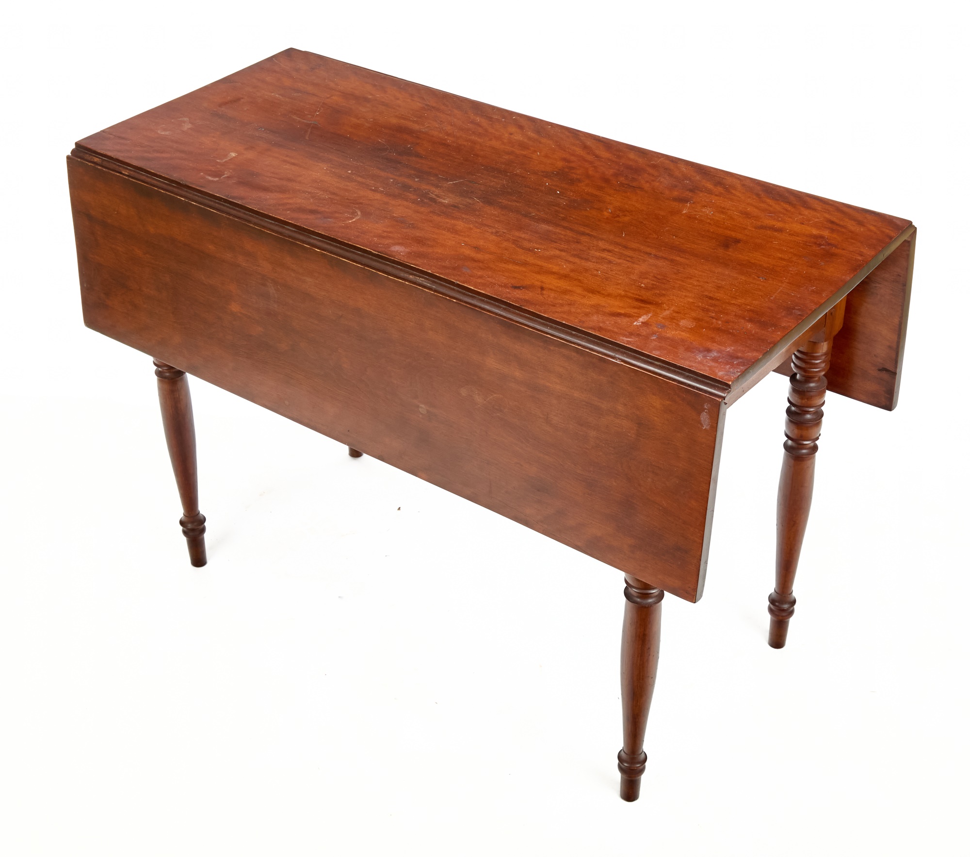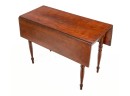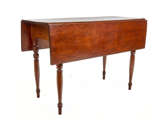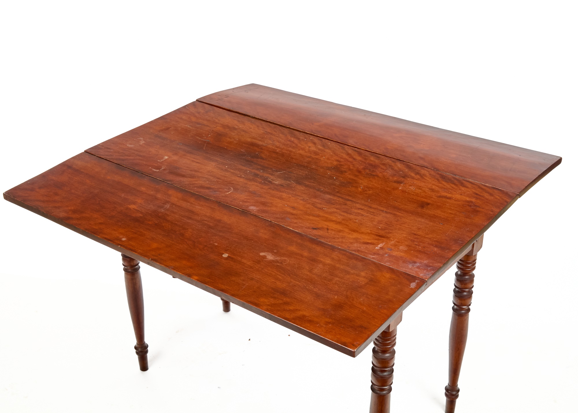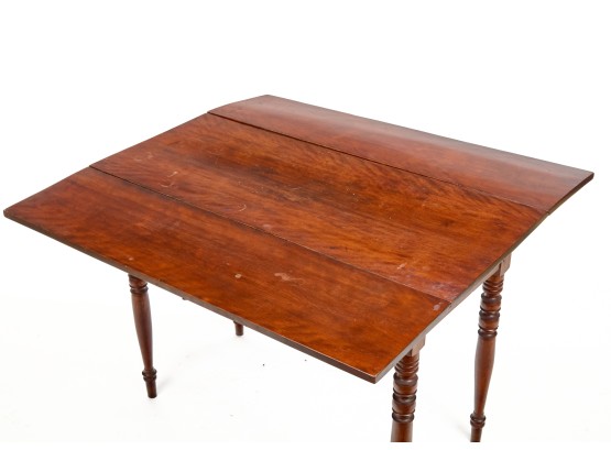 Nicely turned legs, pegged construction. 28 1/2 x 42 x 19 3/4 inches; 39 1/2 inches open. Condition: Minor surface inconsistency to top, (1) hinge should be replaced. Temp No 2599