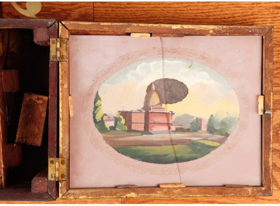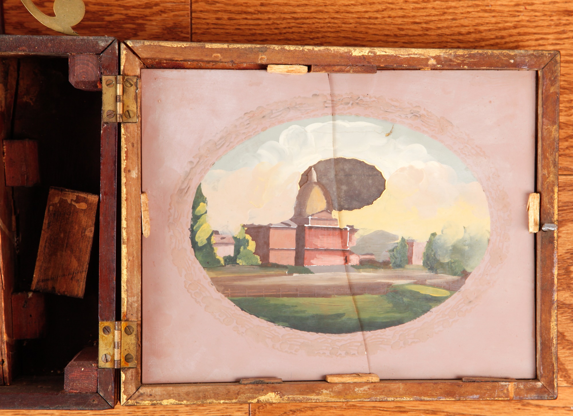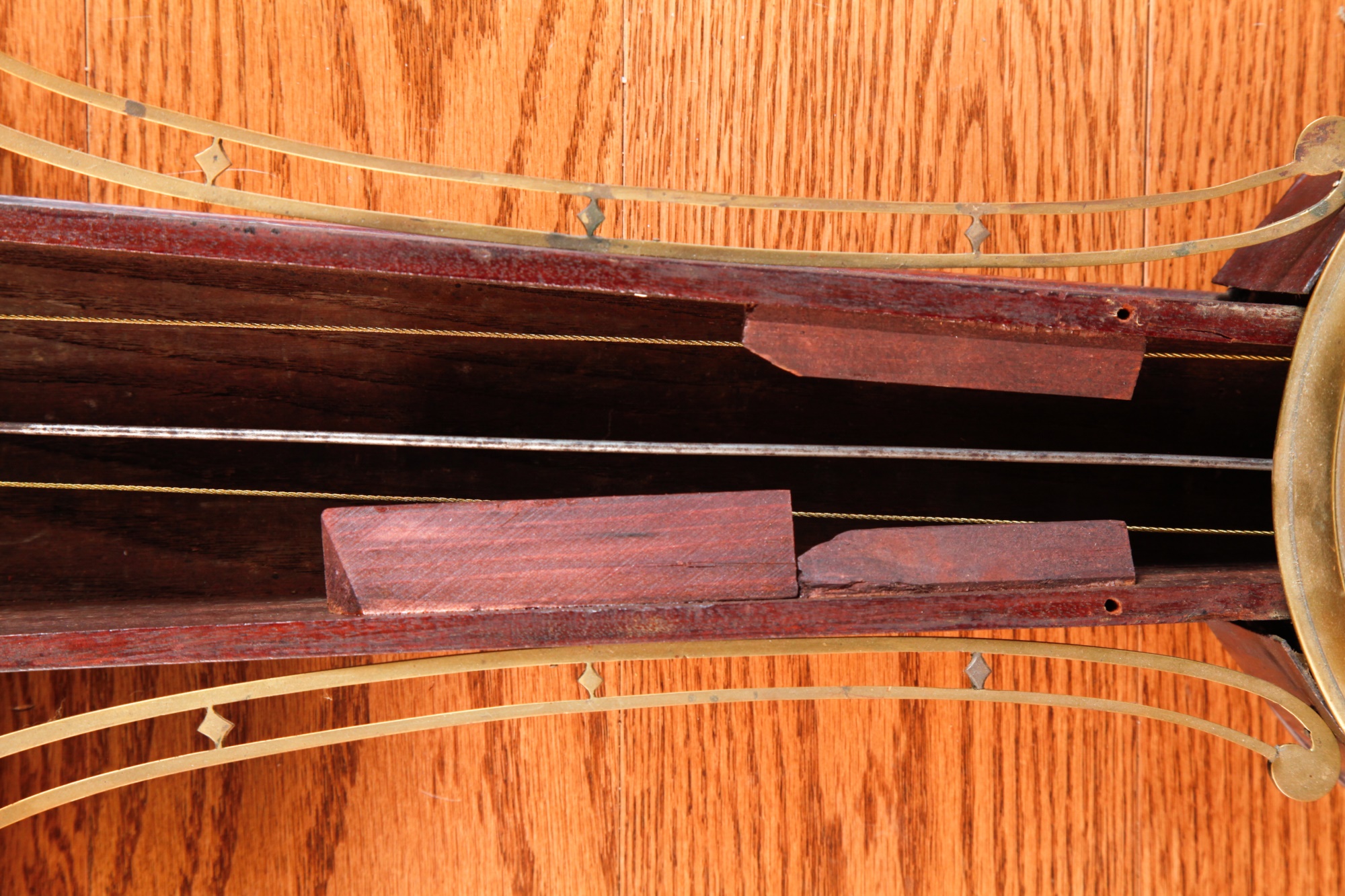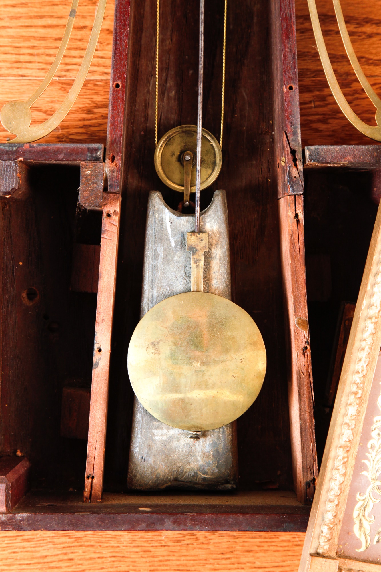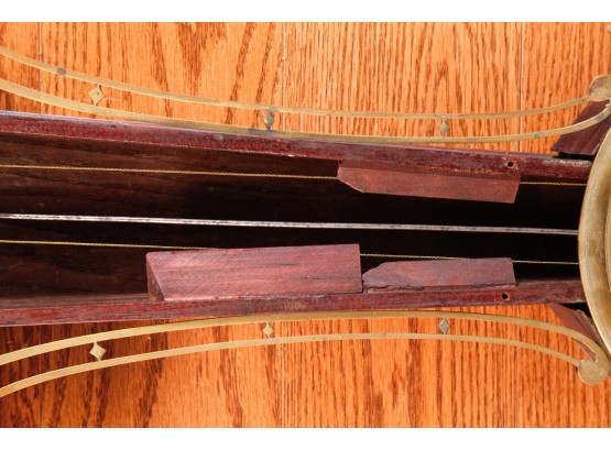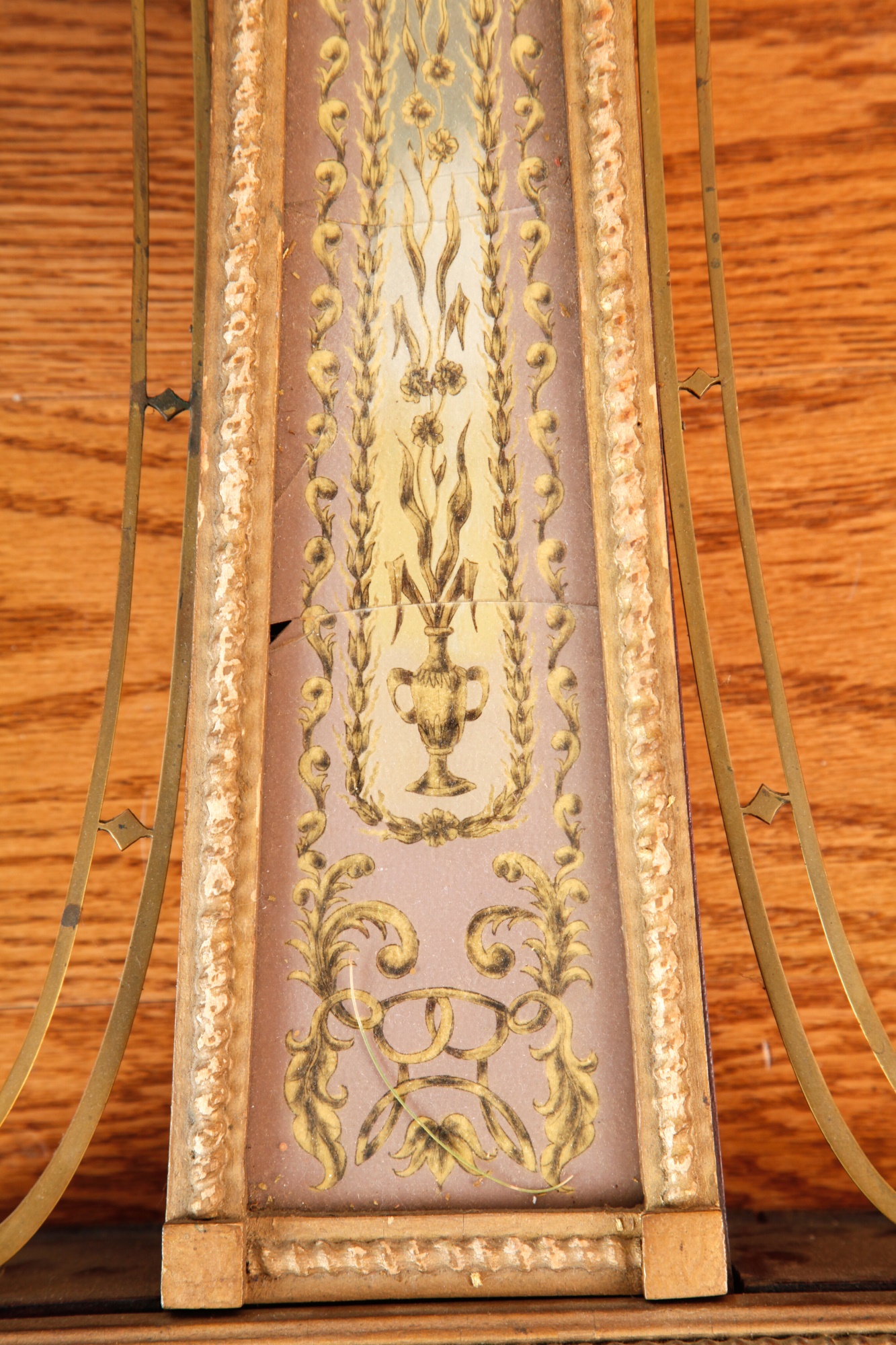 7 1/4 inch dial, reverse painted and eglomise throat and tablet with the Boston State House. 29 1/2 inches Condition: Surface grime, breaks to tablets, final absent Temp No 2346