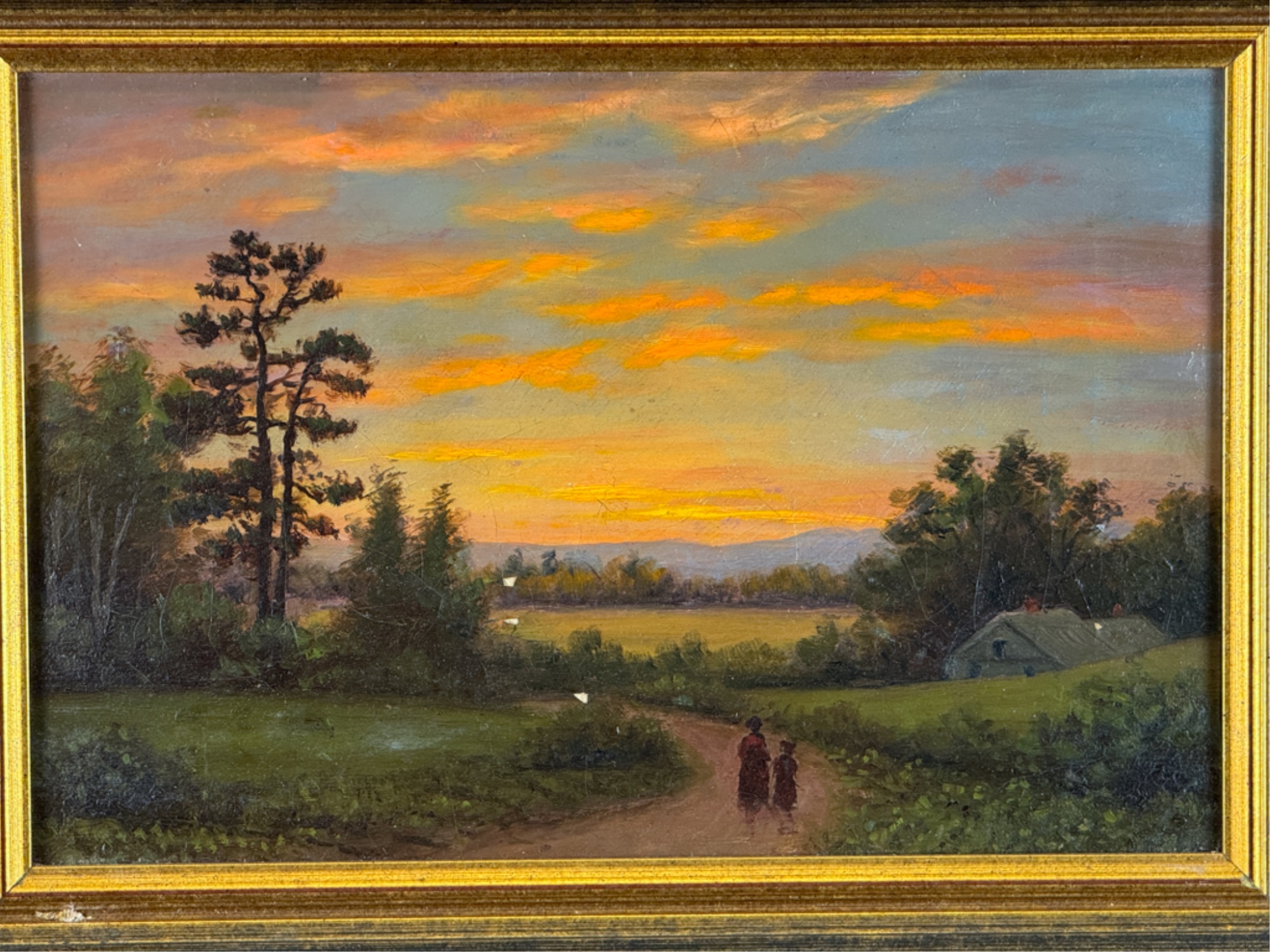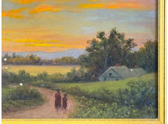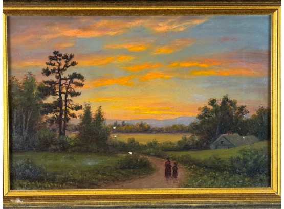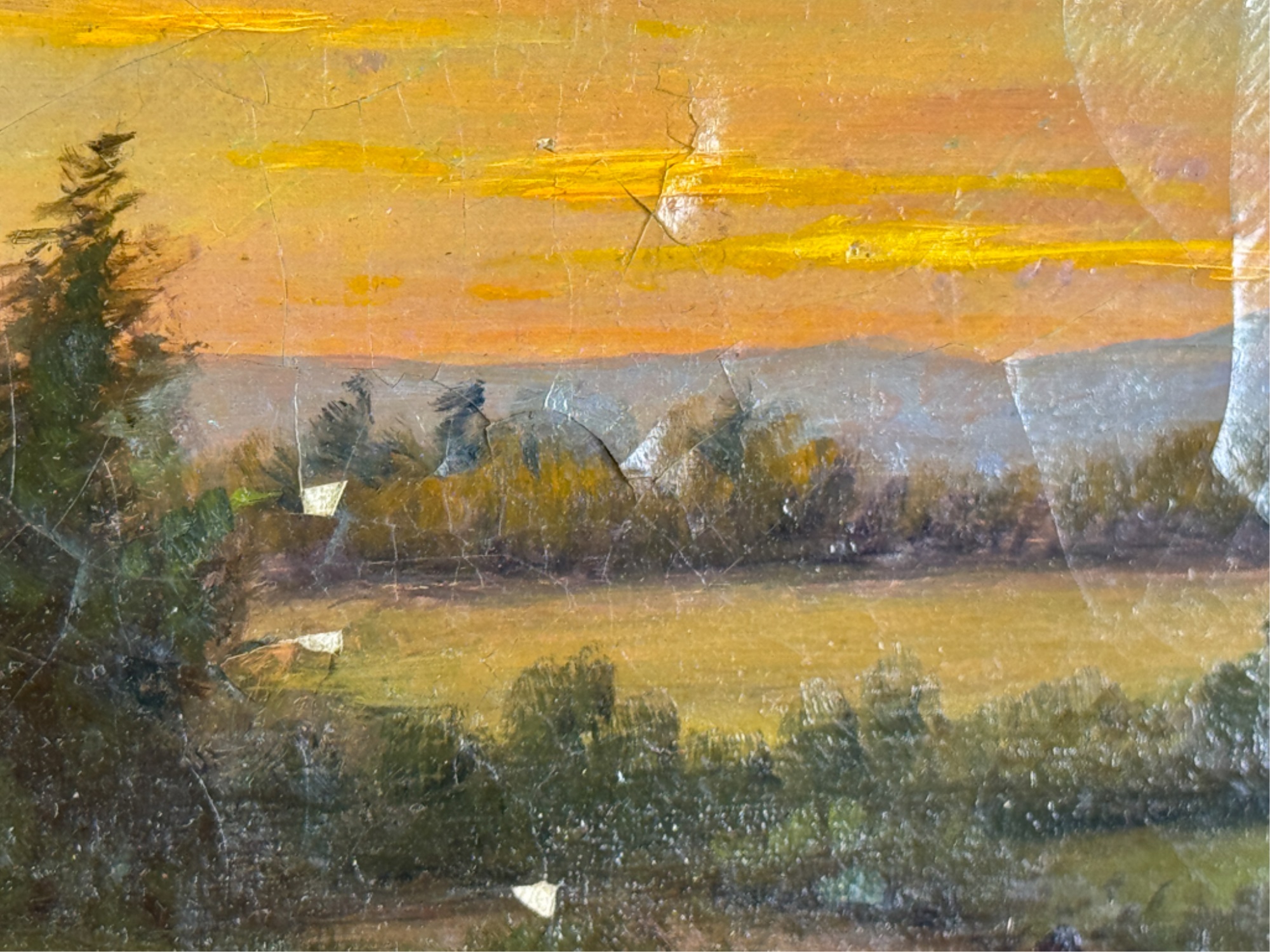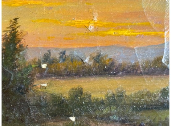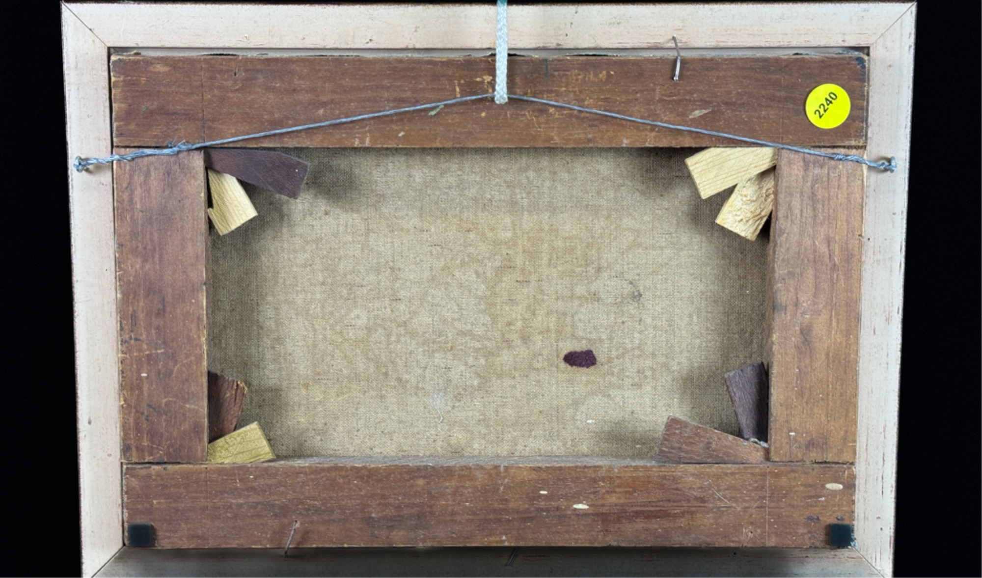 Unsigned. Framed. 10 1/2 x 14 3/4 inches. Condition: Craquelure, spots of loss.