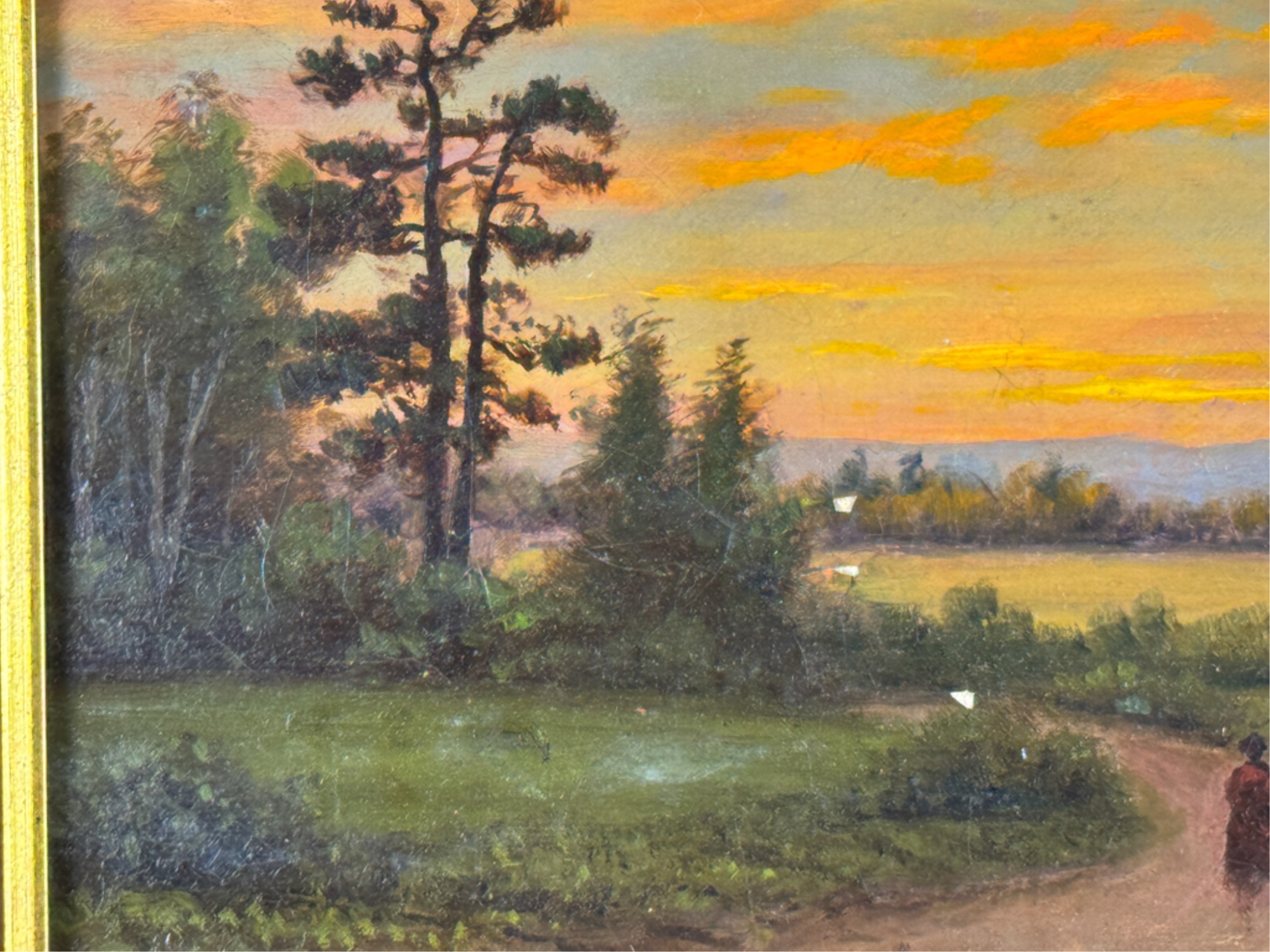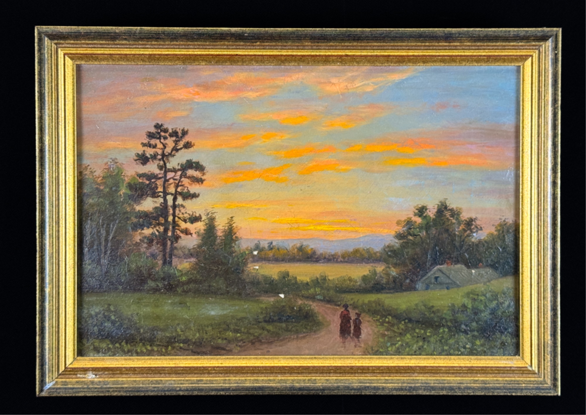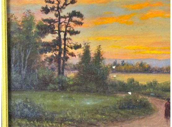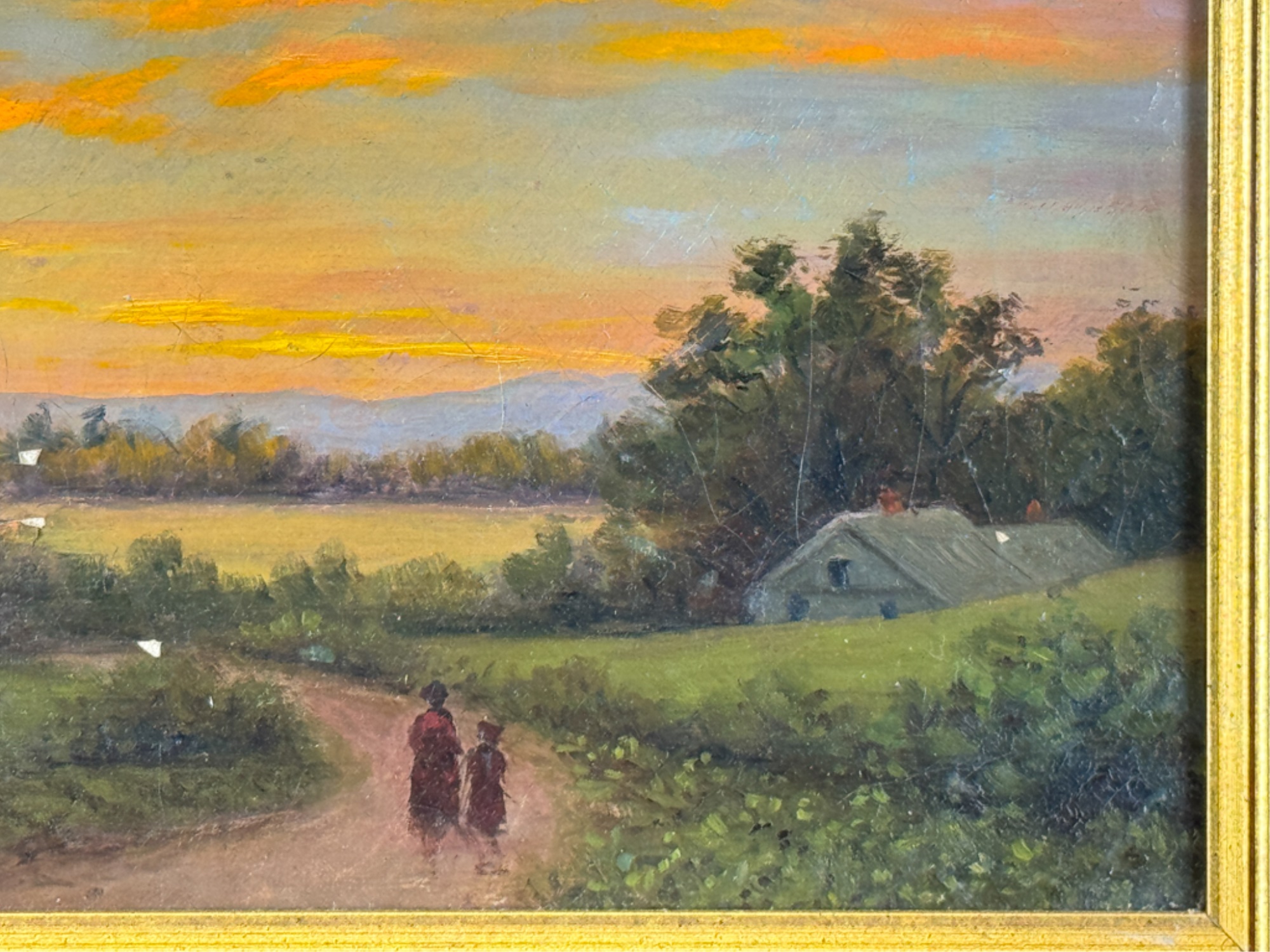 Unsigned. Framed. 10 1/2 x 14 3/4 inches. Condition: Craquelure, spots of loss.