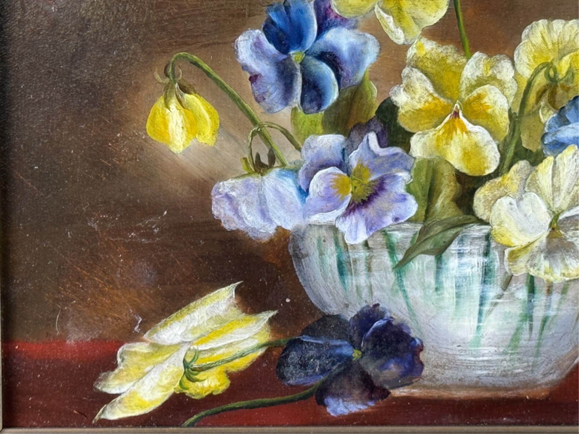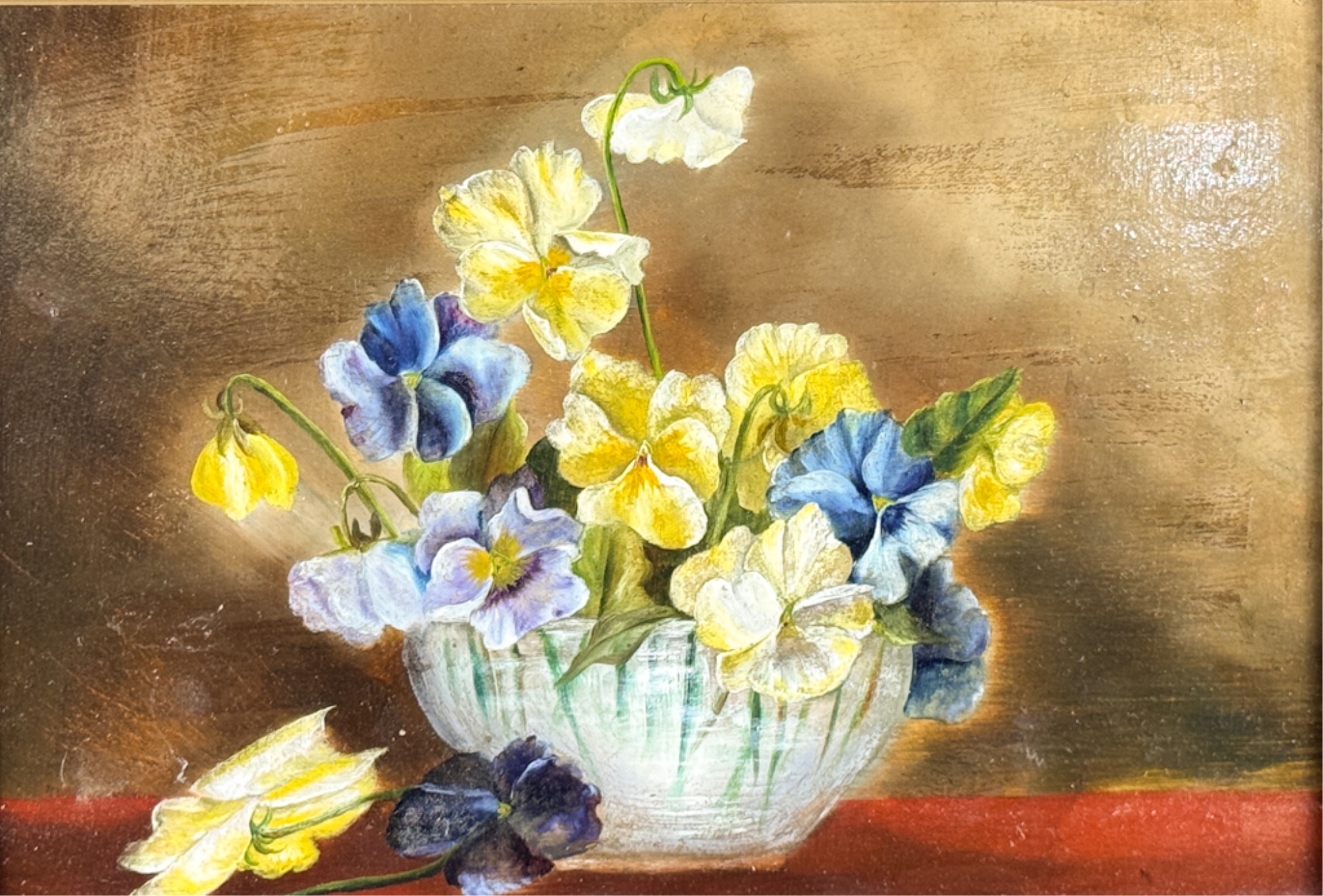 Canvas applied to artist board. Unsigned. Framed. 11 x 14 1/2 inches. Condition: Cleaned.