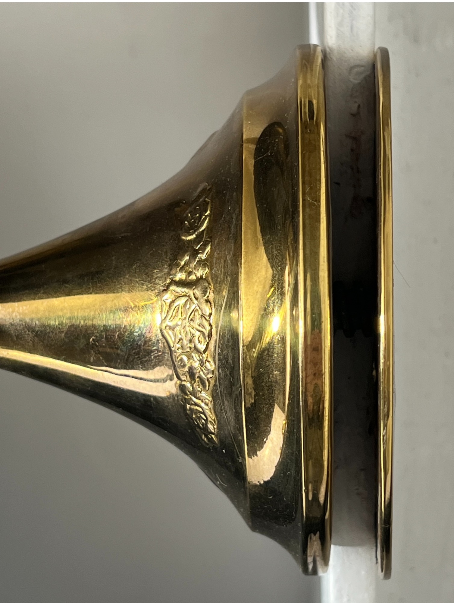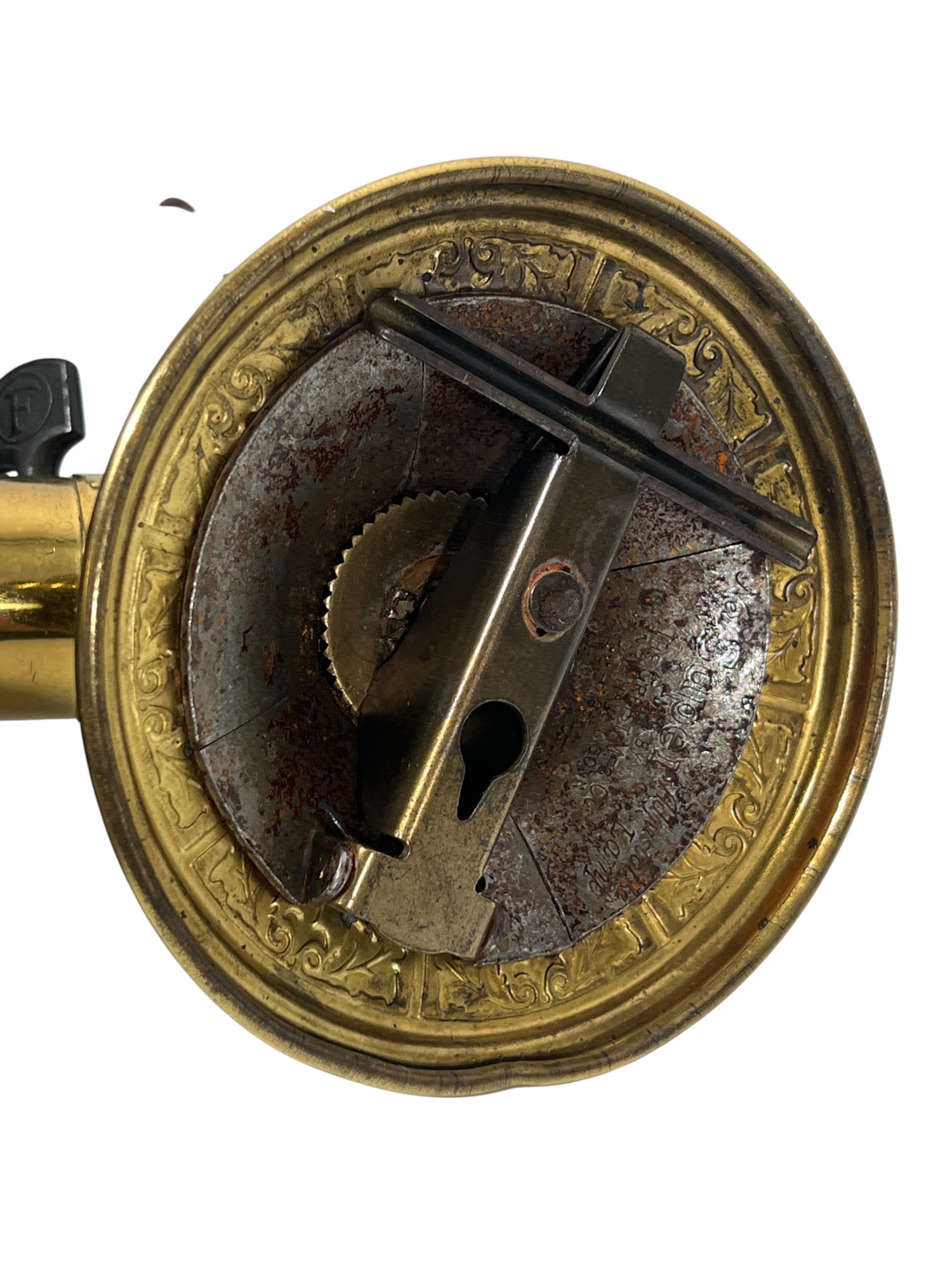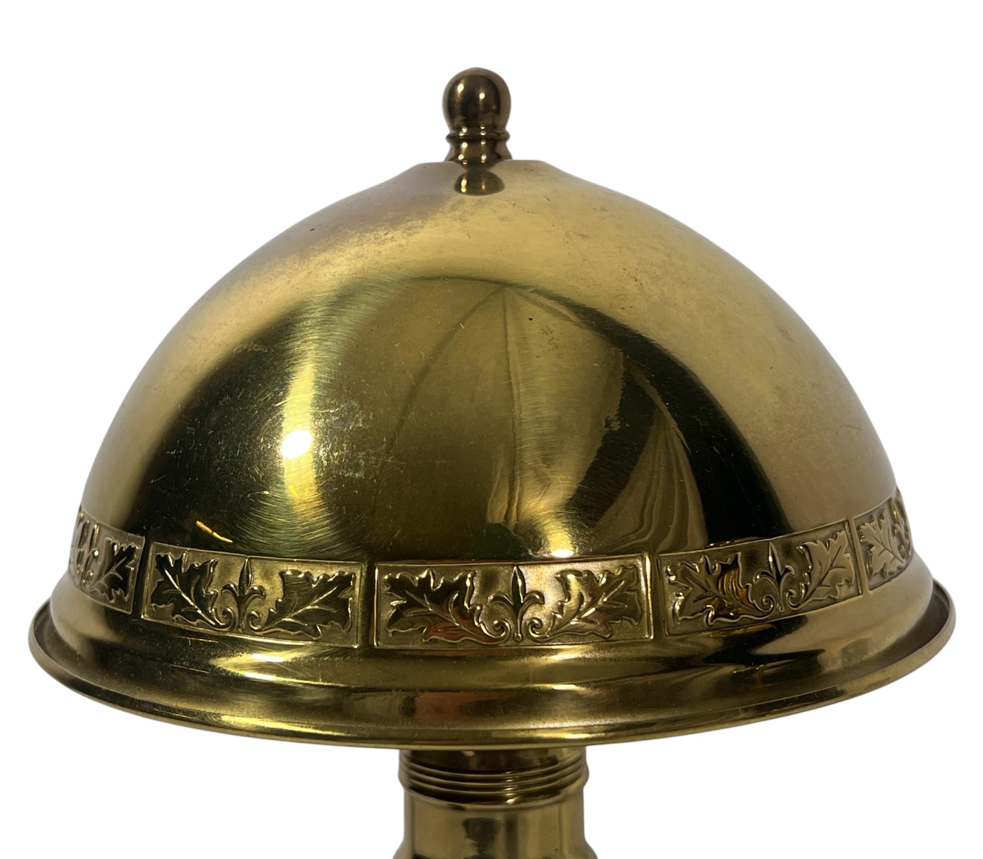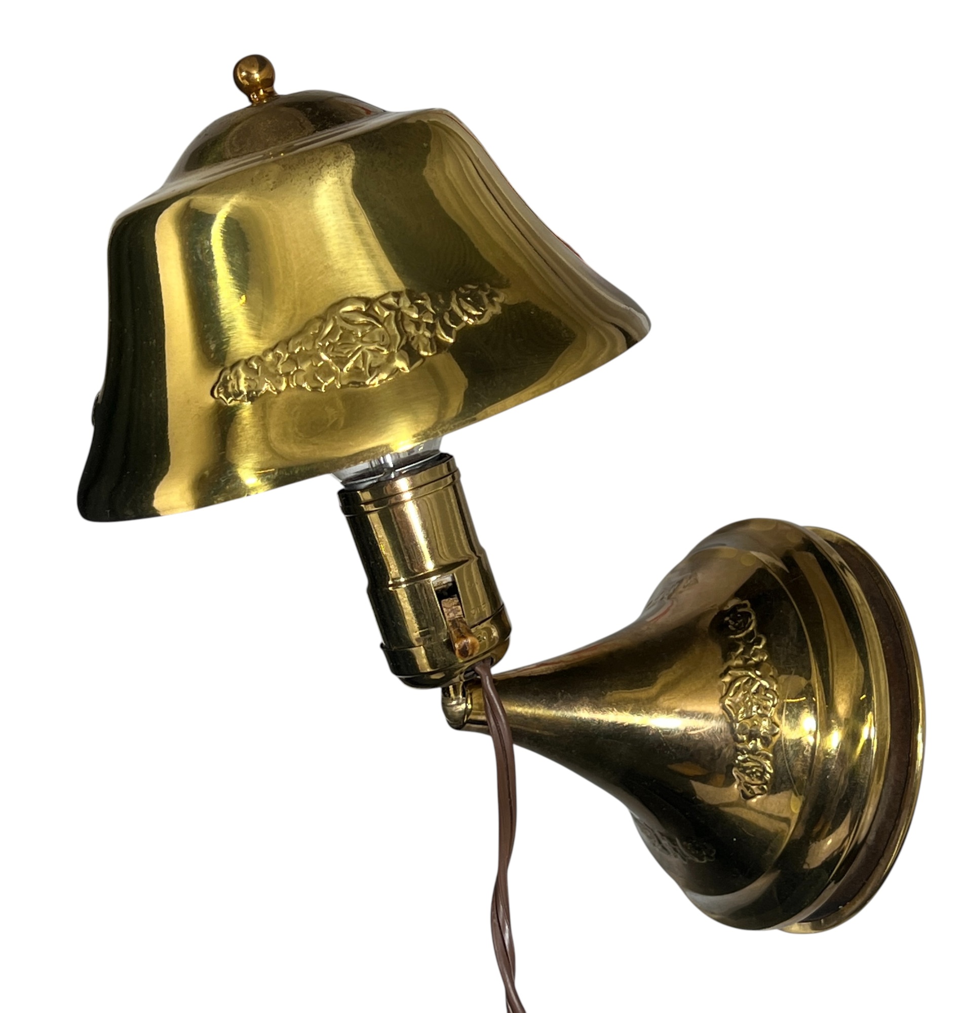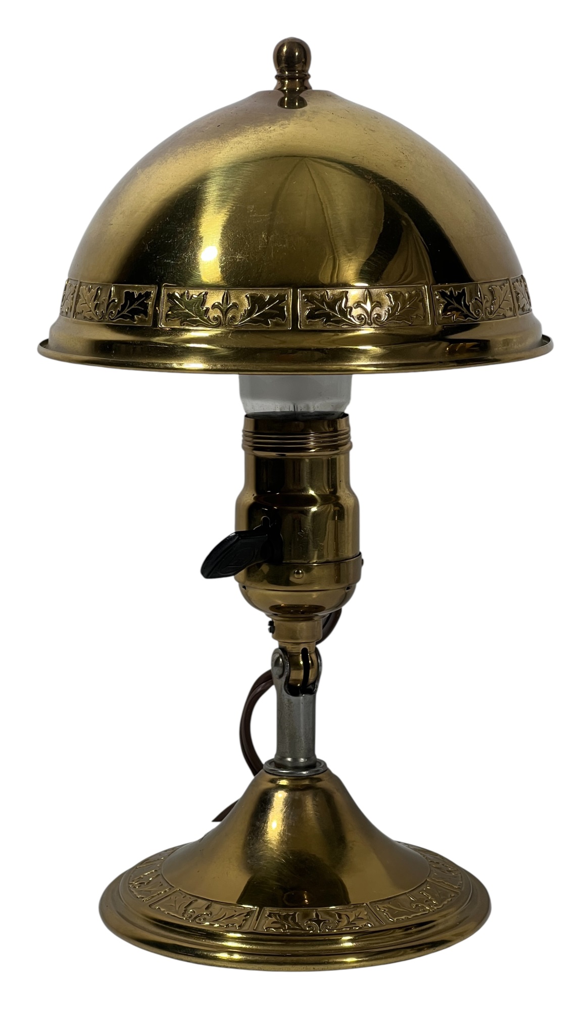 (2) 1920's brass table lamps with adjustable necks than can be clamped anywhere. (1) Buss Clamp-o-Set and (1) with adjustable neck. Nice floral motifs. 7 1/2 x 6 inches. Condition: Good. Untested.