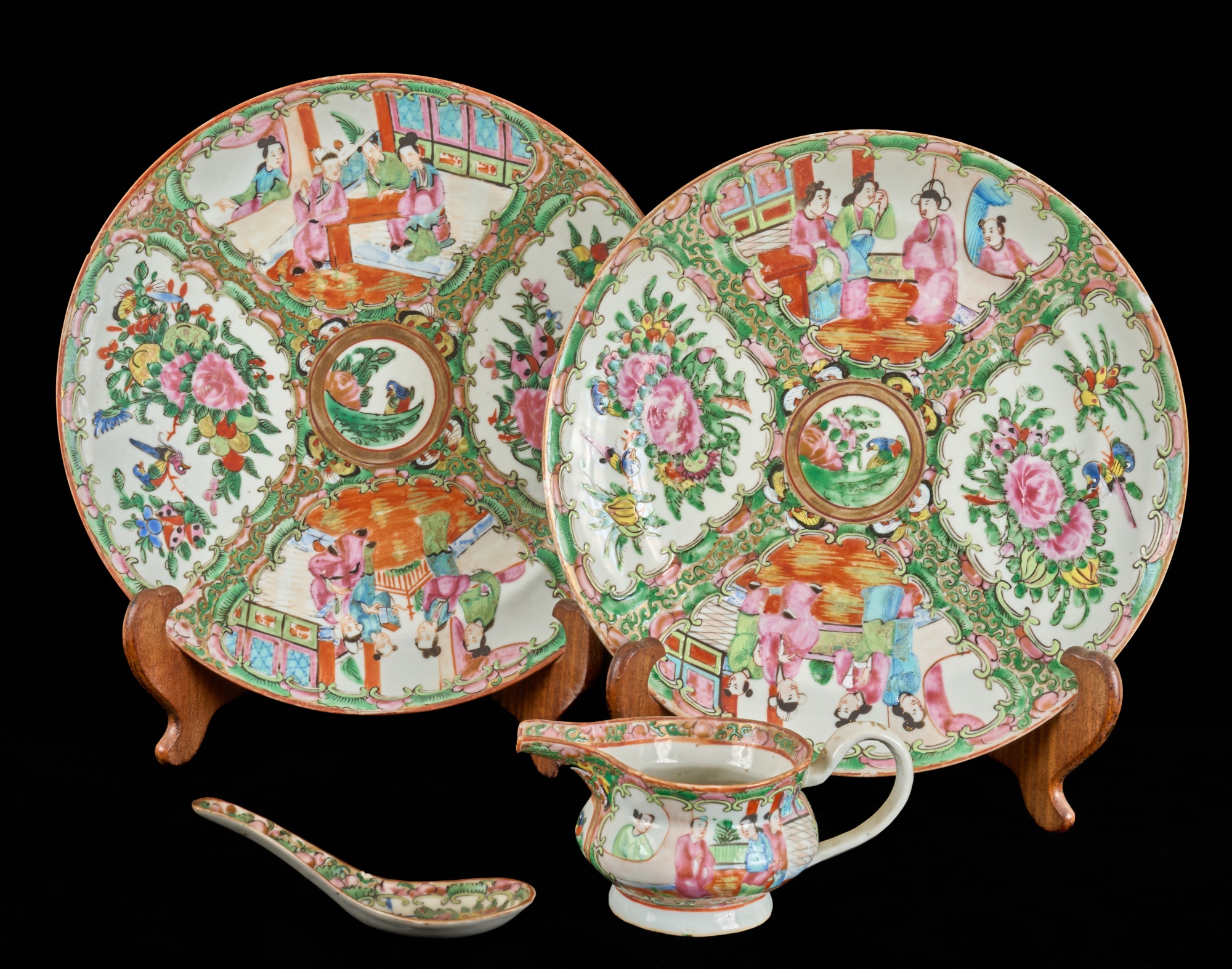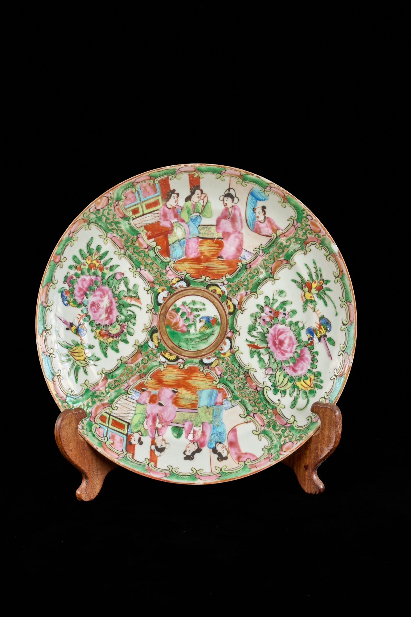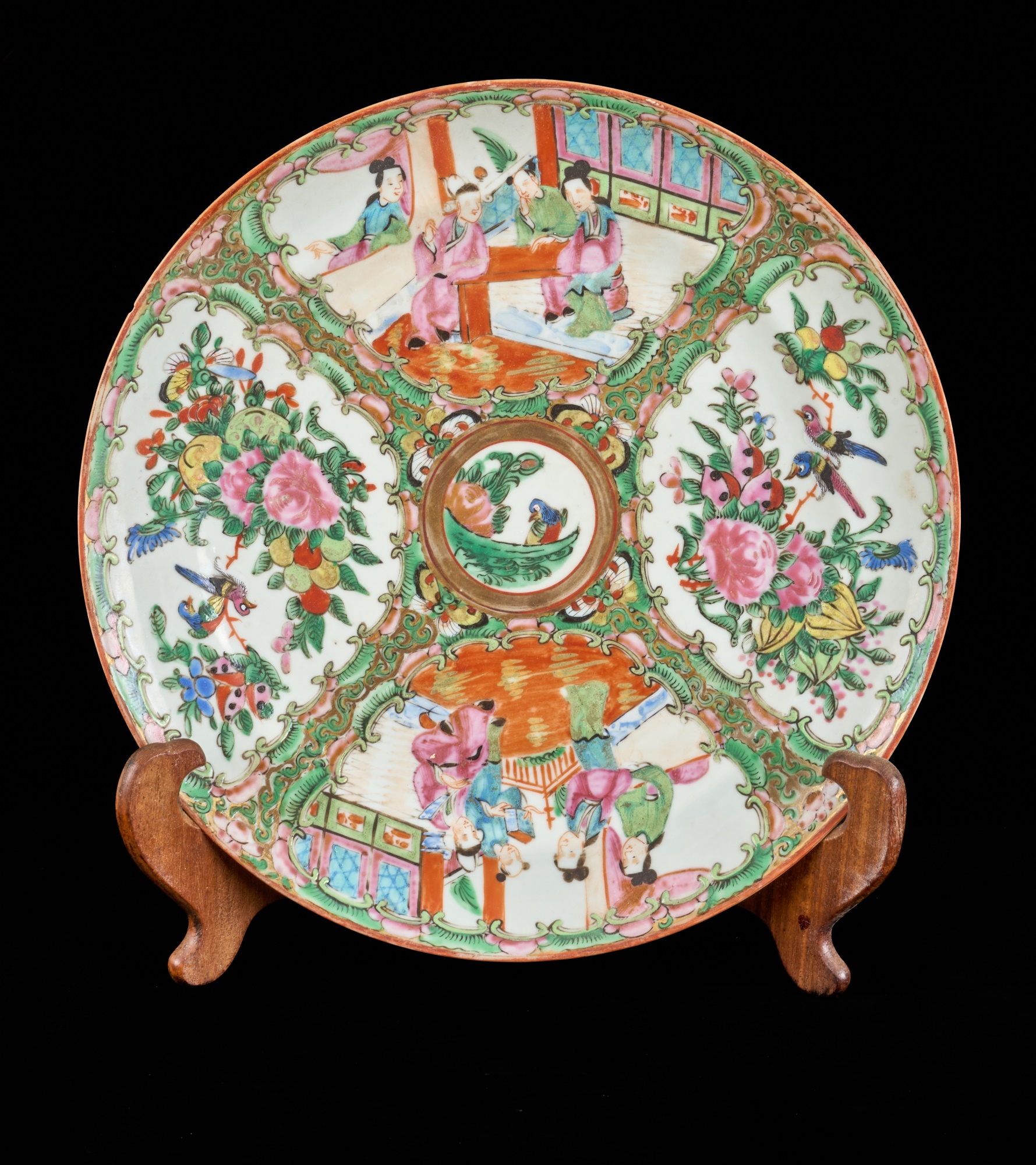 9.75 inches (each) Together with stands Condition: Good, (1) plate has rim chip