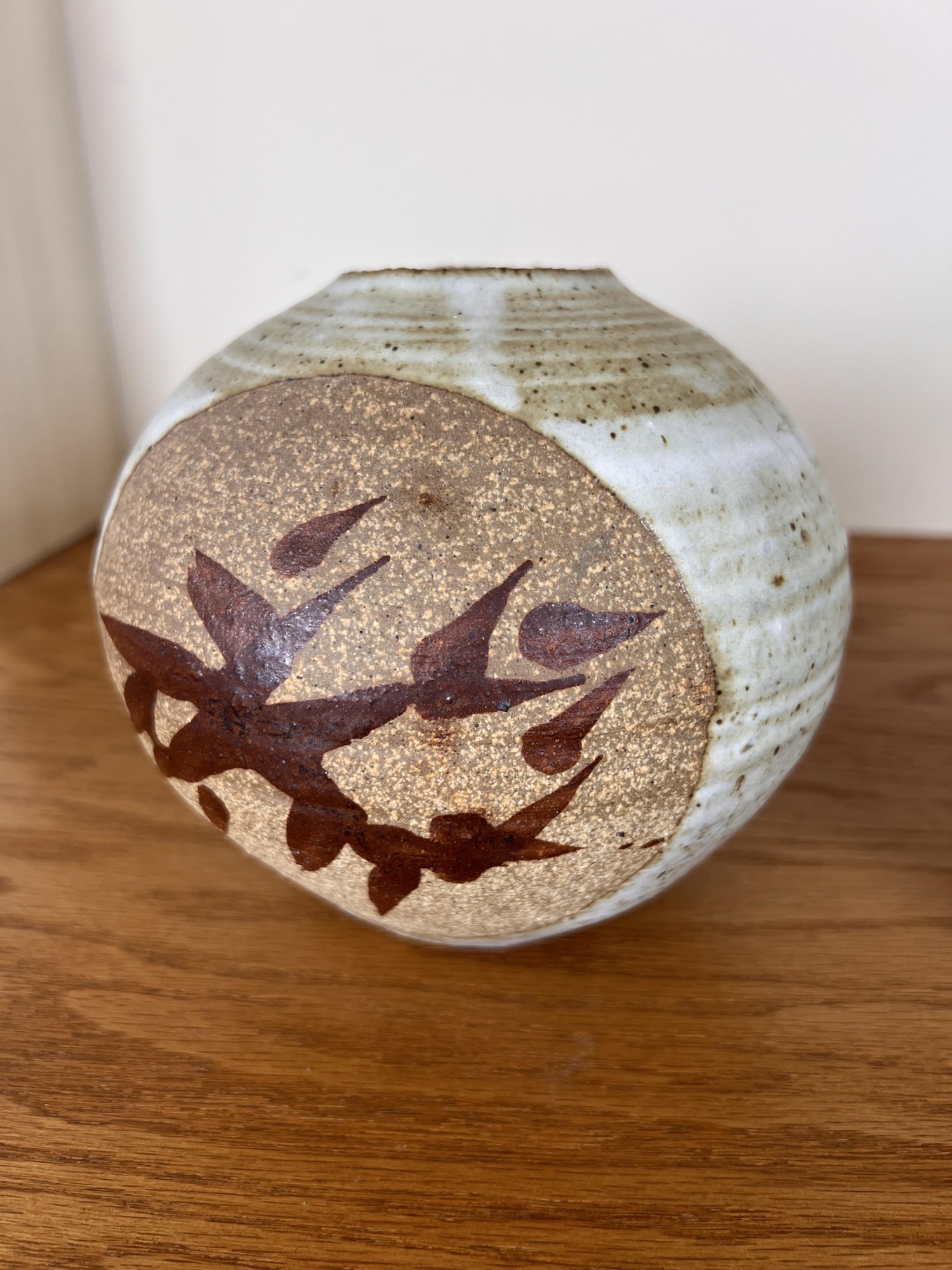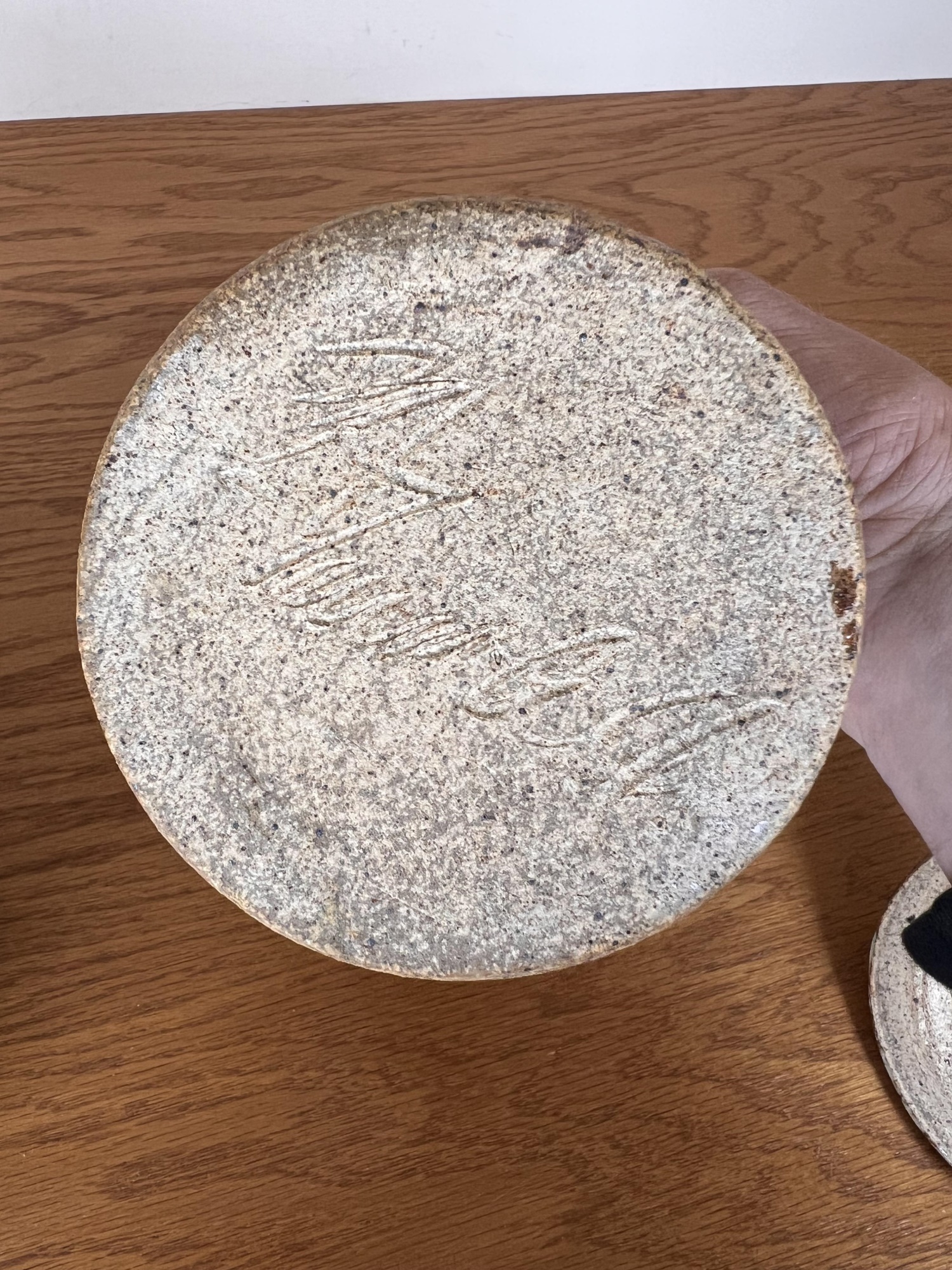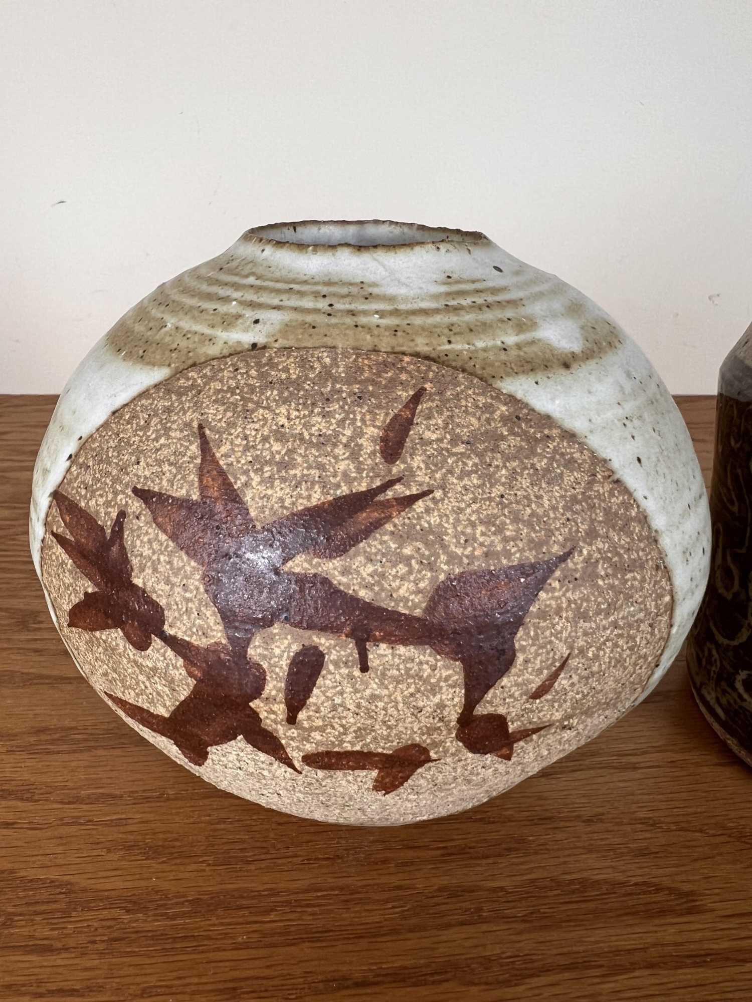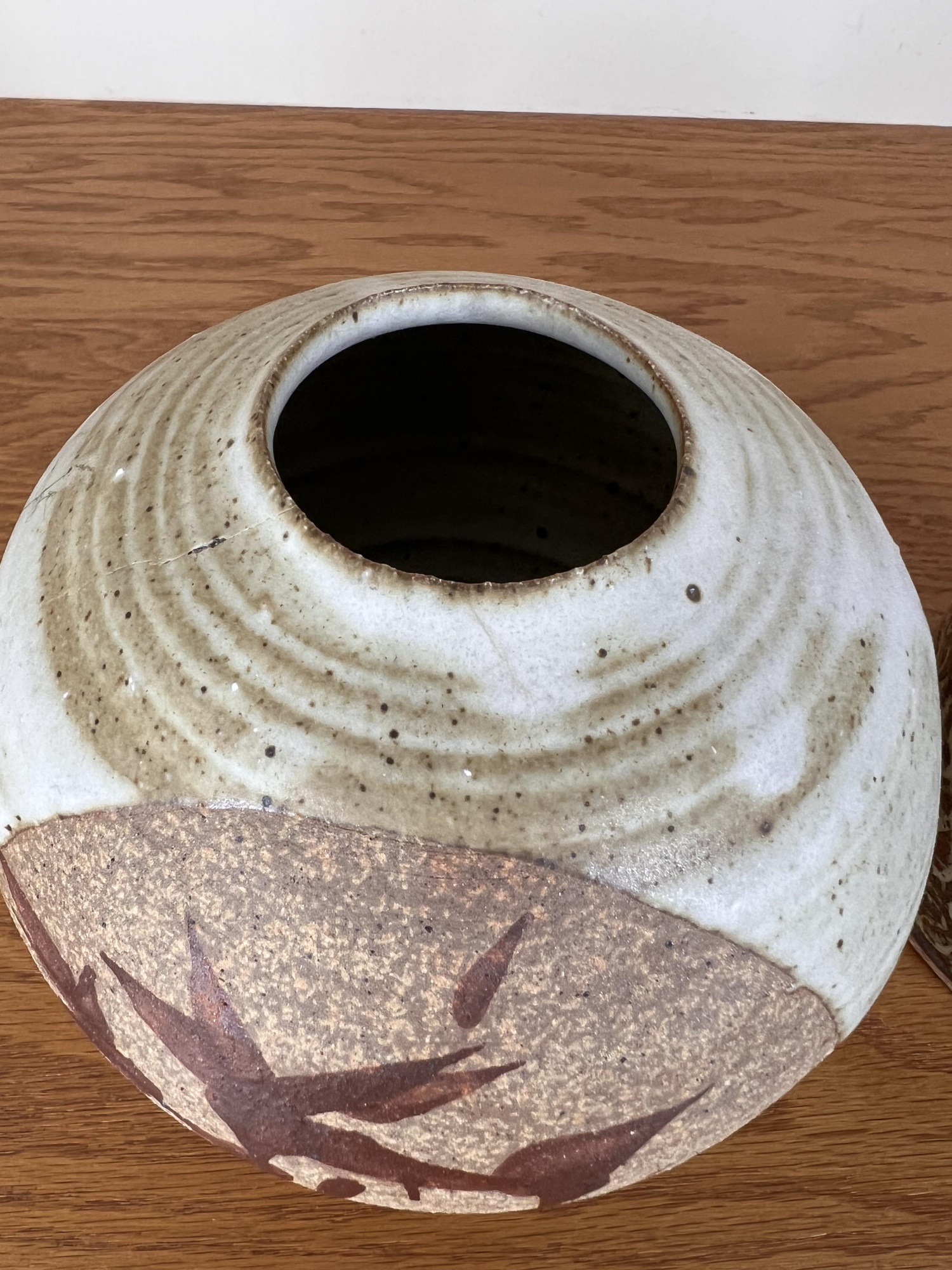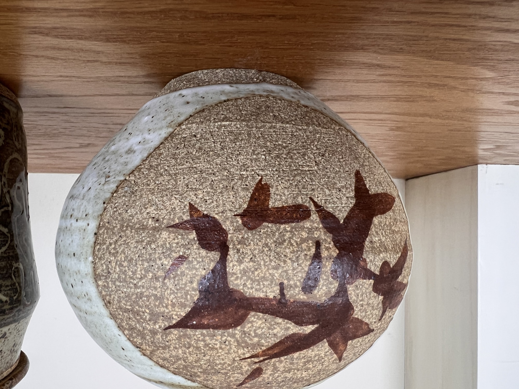 Including an Asian inspired glazed vase signed TeRik? And a covered jar with sgriffito decoration in glaze signed illeg. 5.5 and 6.6 inches Condition: Good