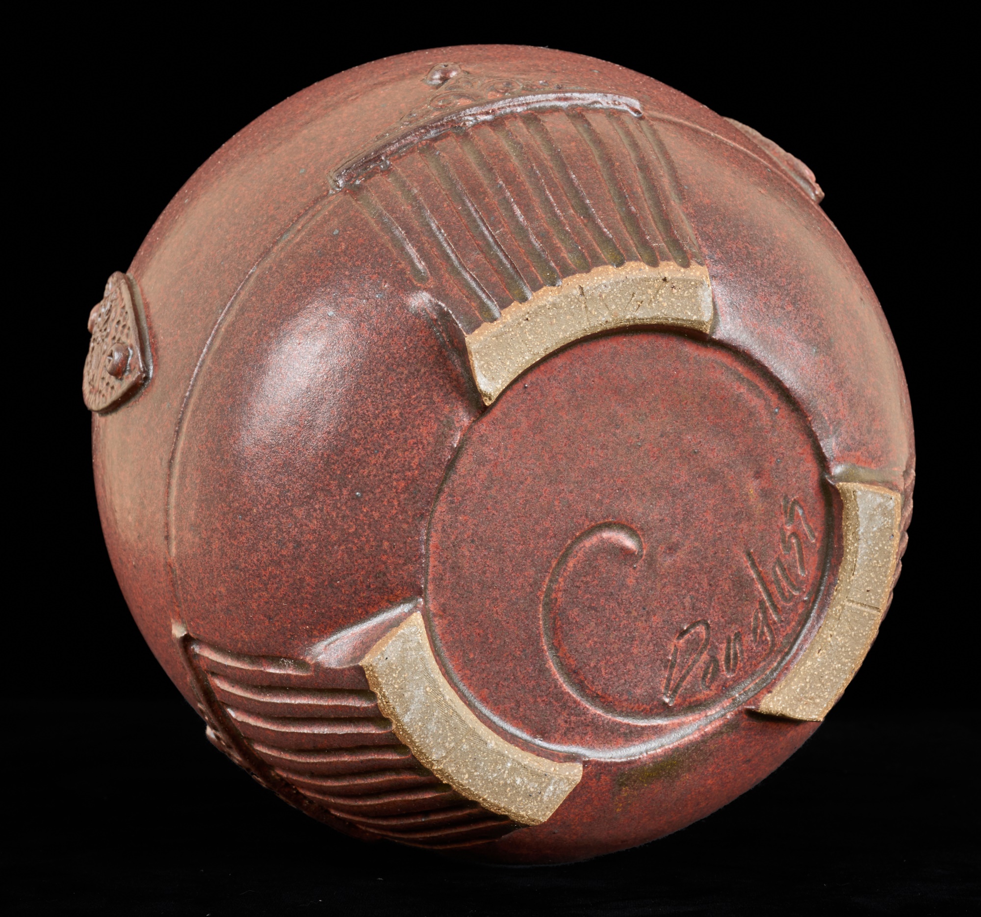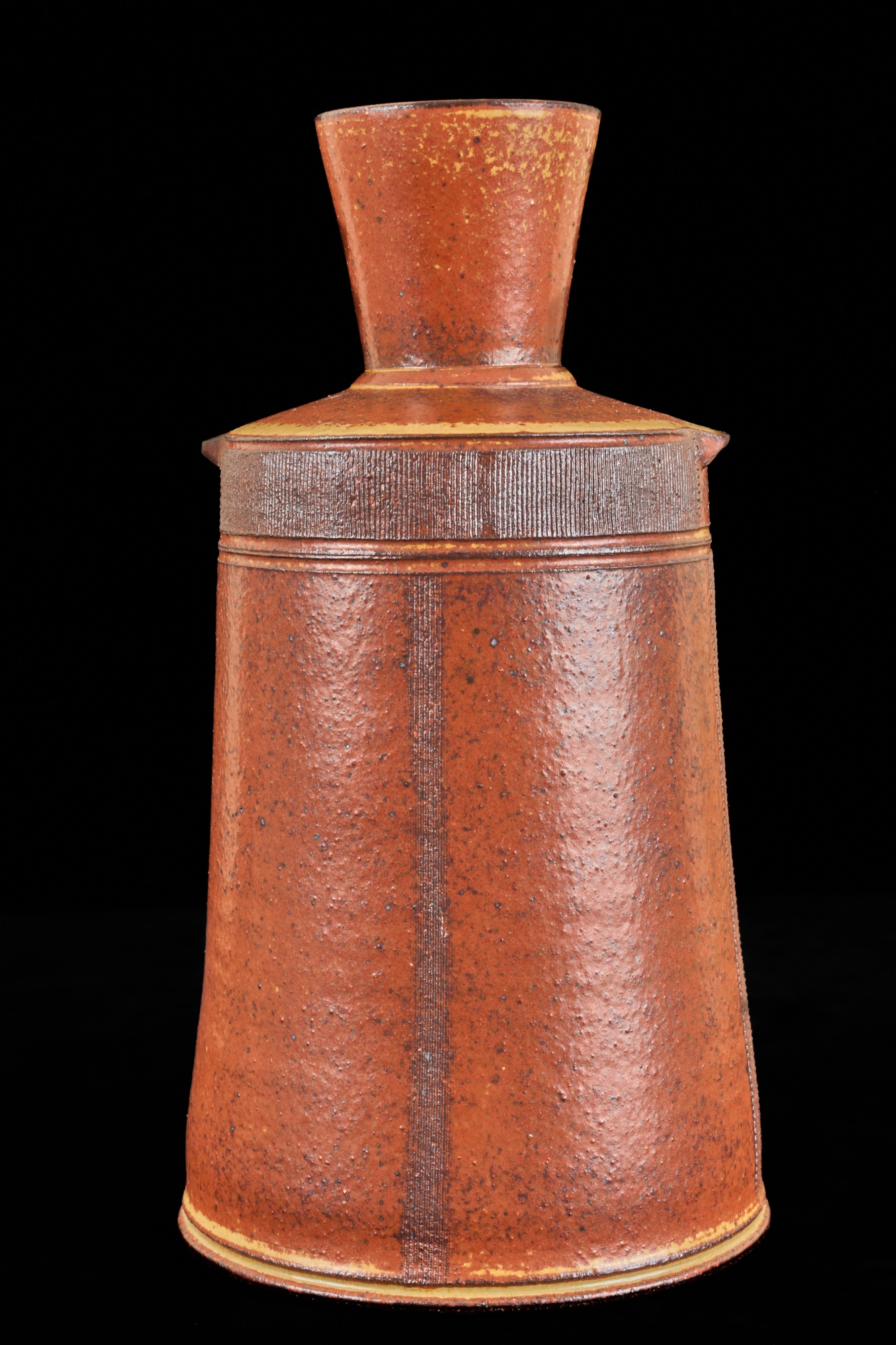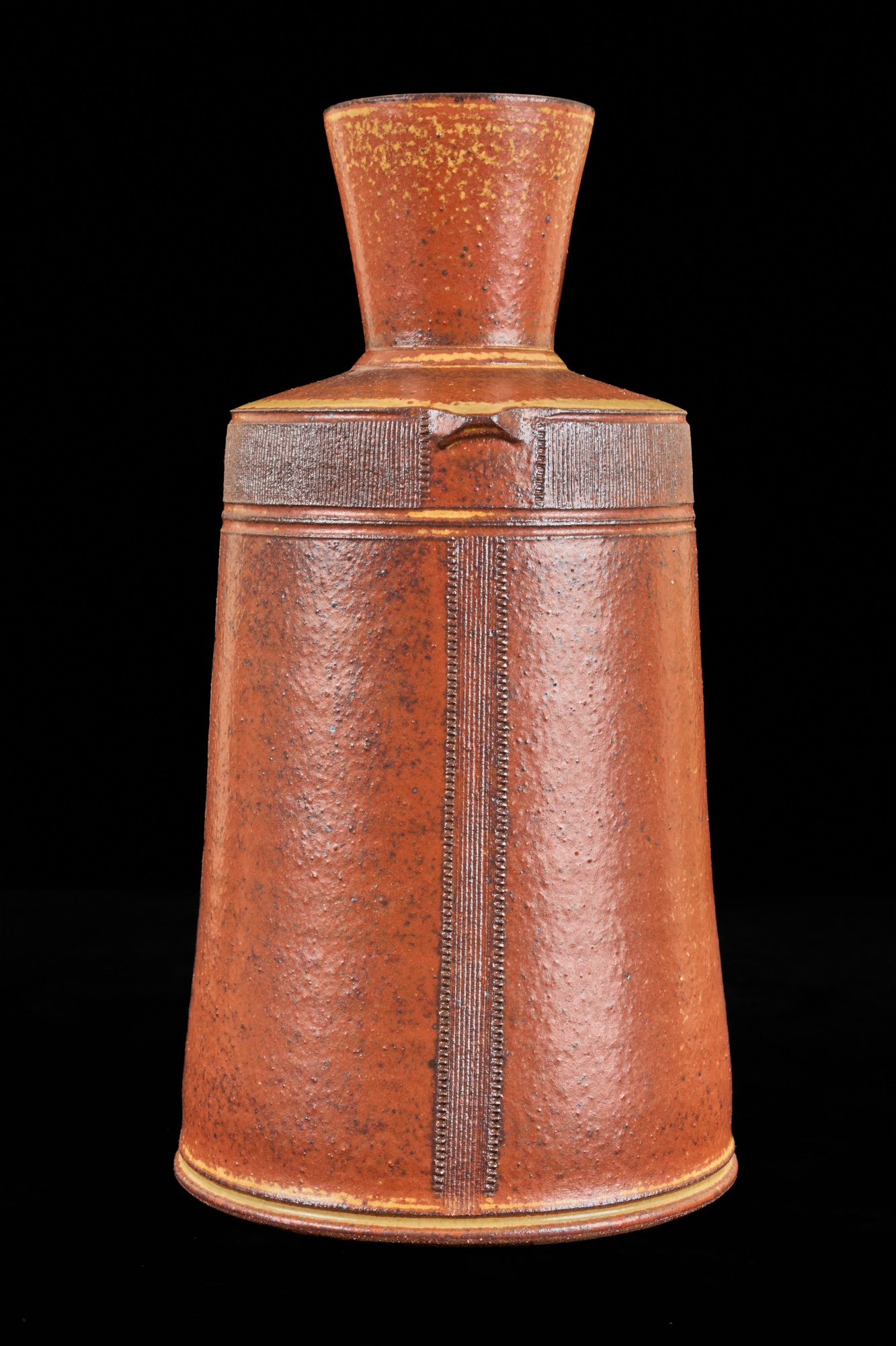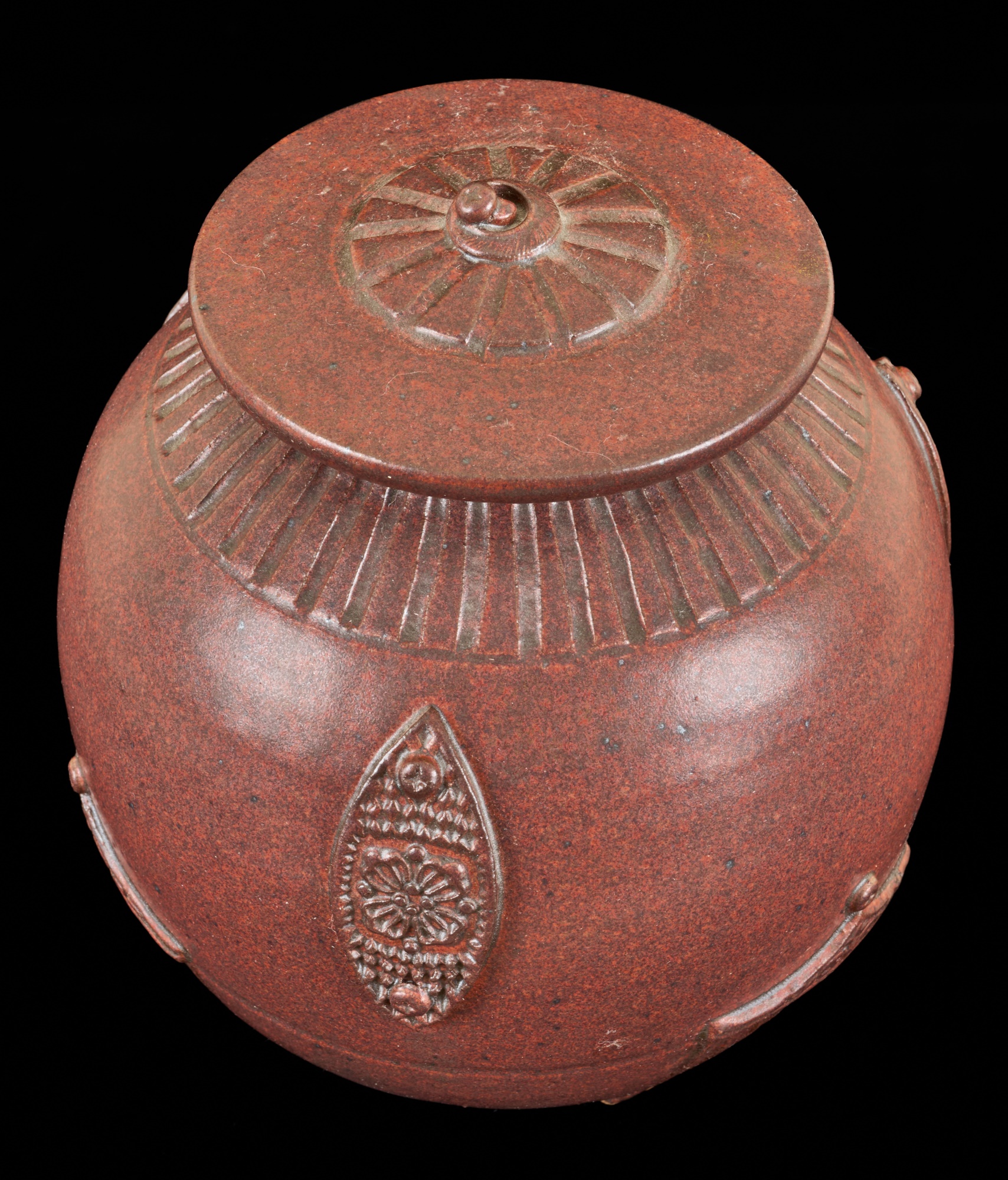 Covered earthenware jar by Susan Douglass, a second taller earthenware example is unsigned as well as the porcelain jar with fan finial. 6 , 7.5 and 8 inches Condition: Good