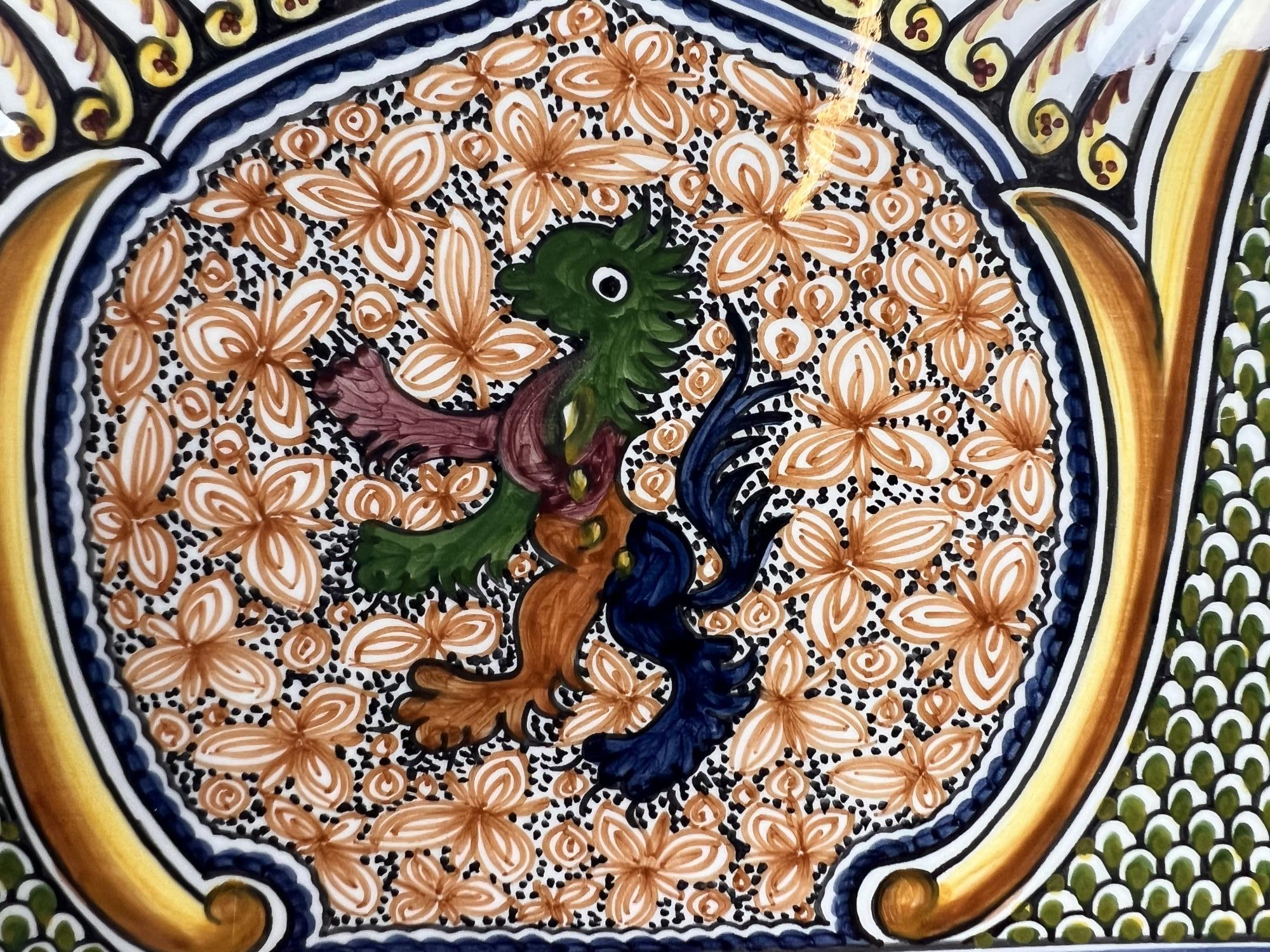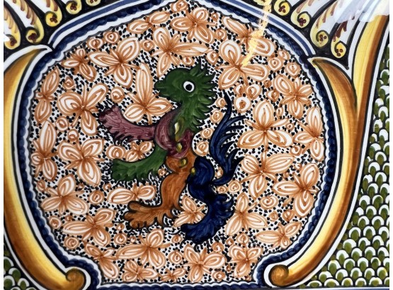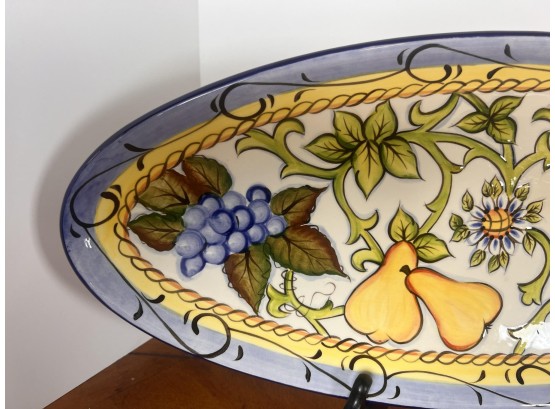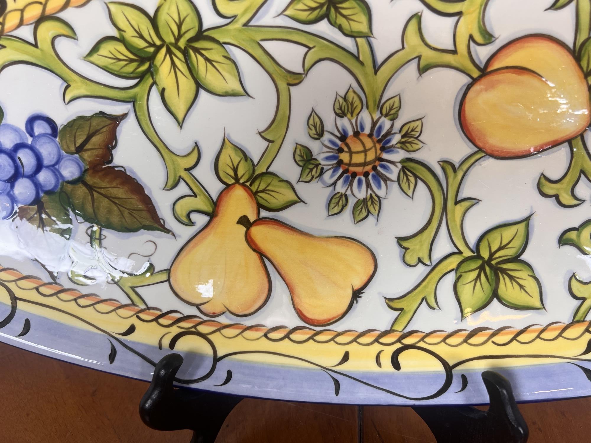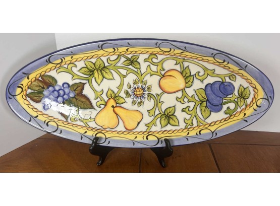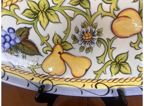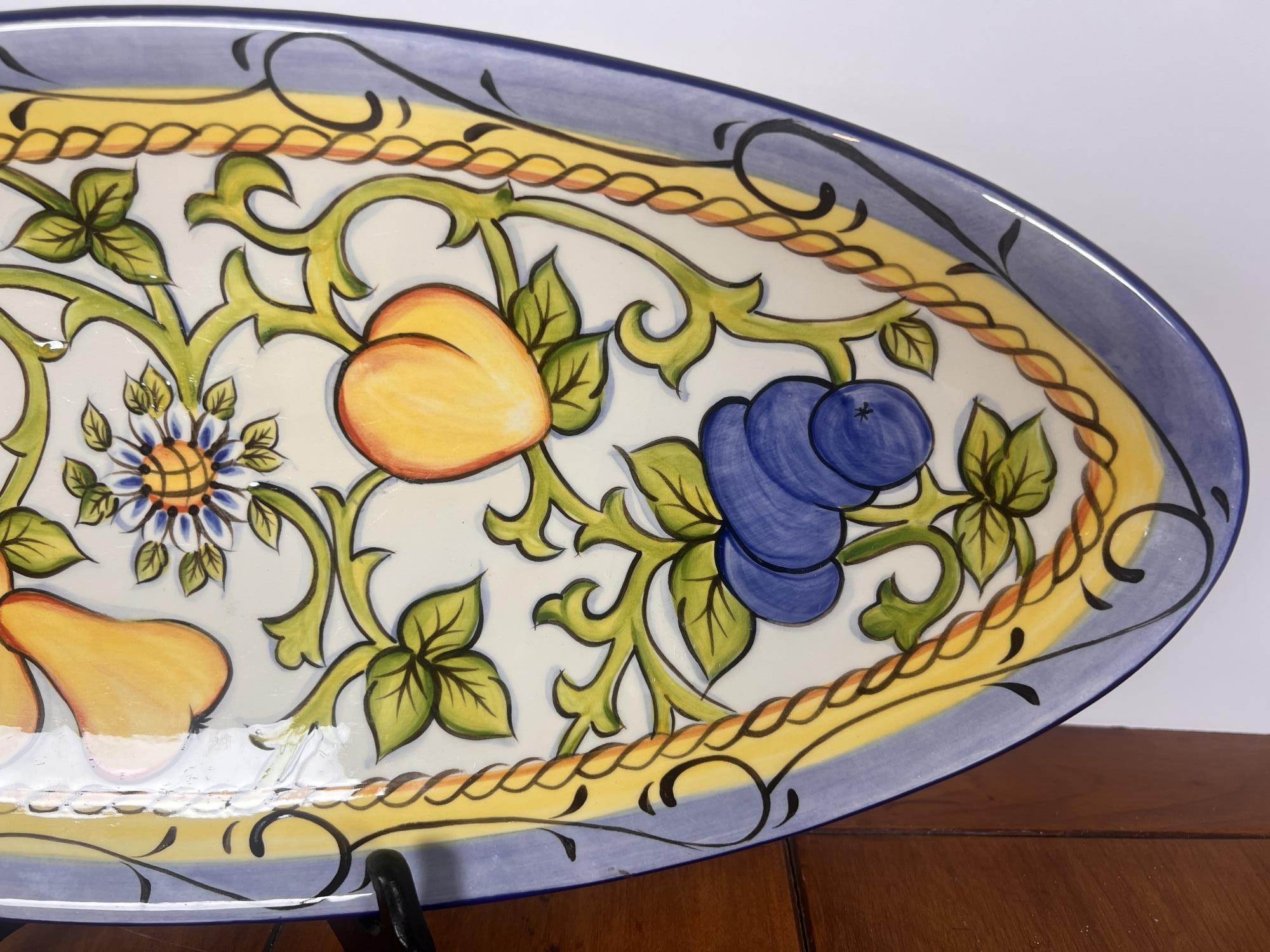 Platter signed and hand painted by Alex at Tea Thyme, personalized for David M. Brian. Porcelain trivet from Portugal signed "Luis". Platter is 21" long Condition: Good Temp No 6447