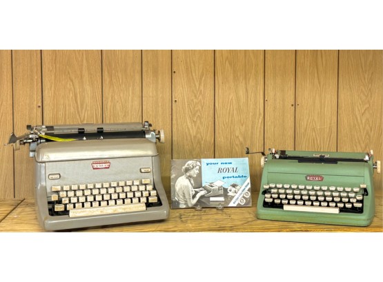 "Quite De Luxe" and "F.P.". Largest measures 8 x 17 x 17 inches. Condition: Good. Carriage return moves crisply. Some keys stick, may need cleaning/oil. Temp No 6a