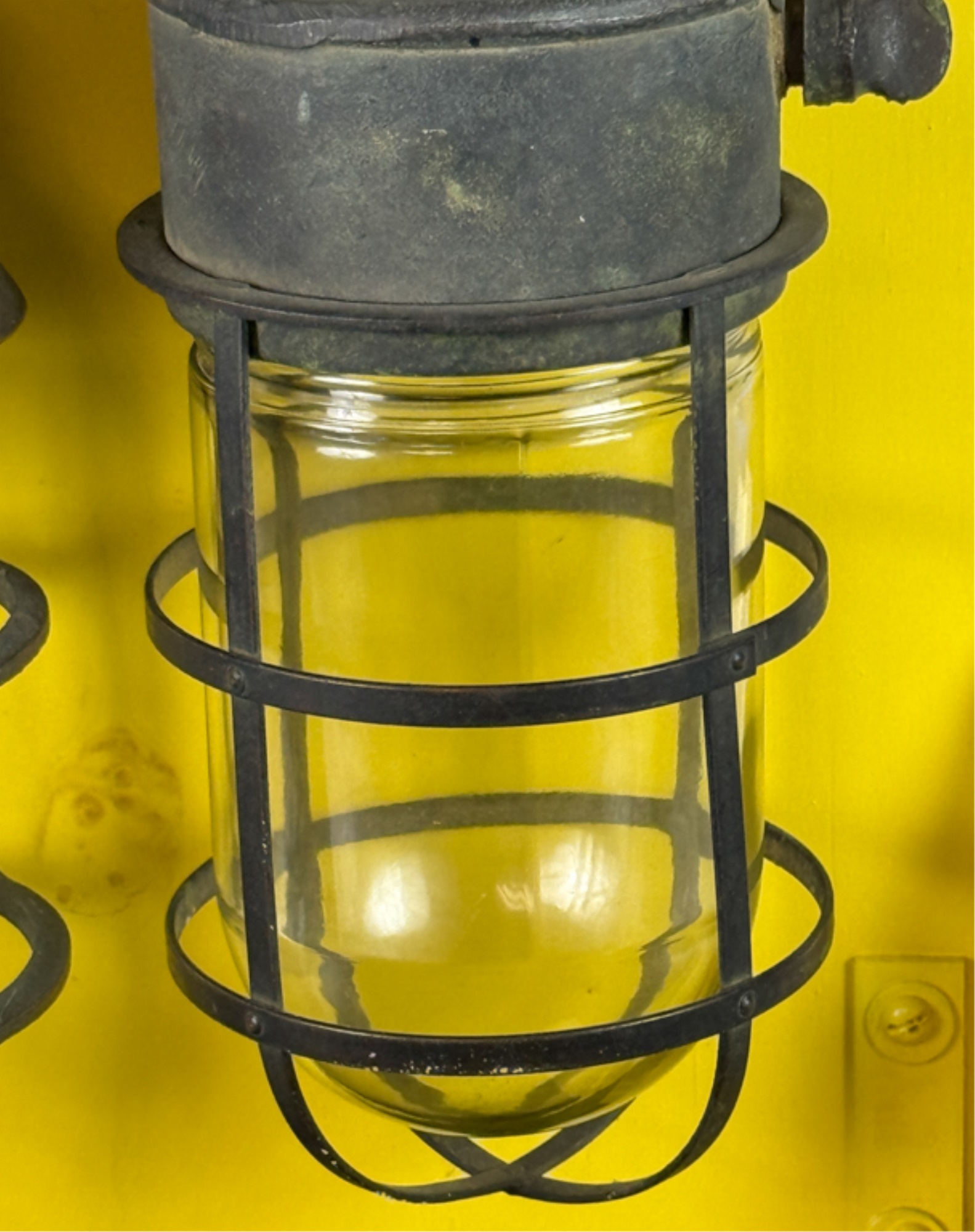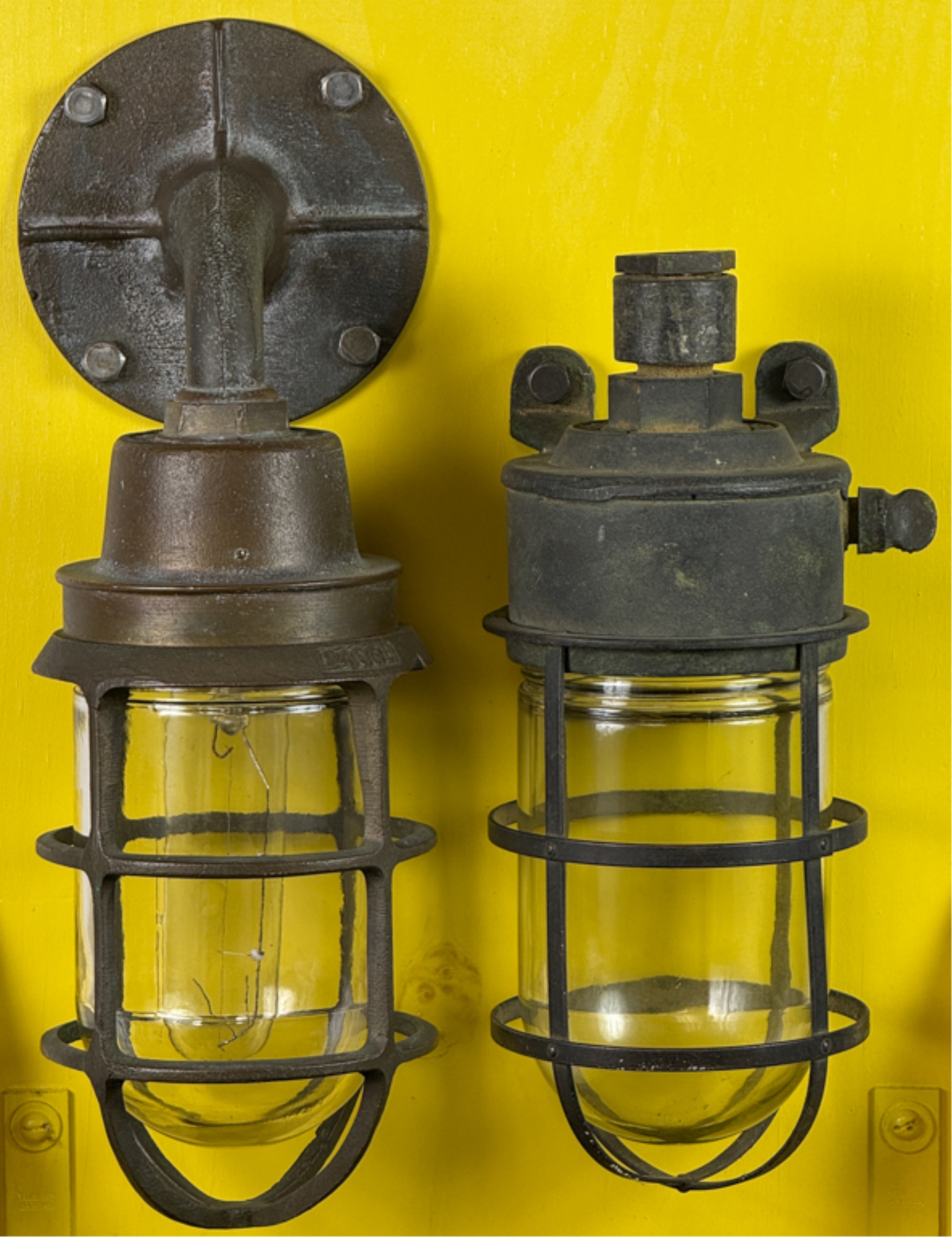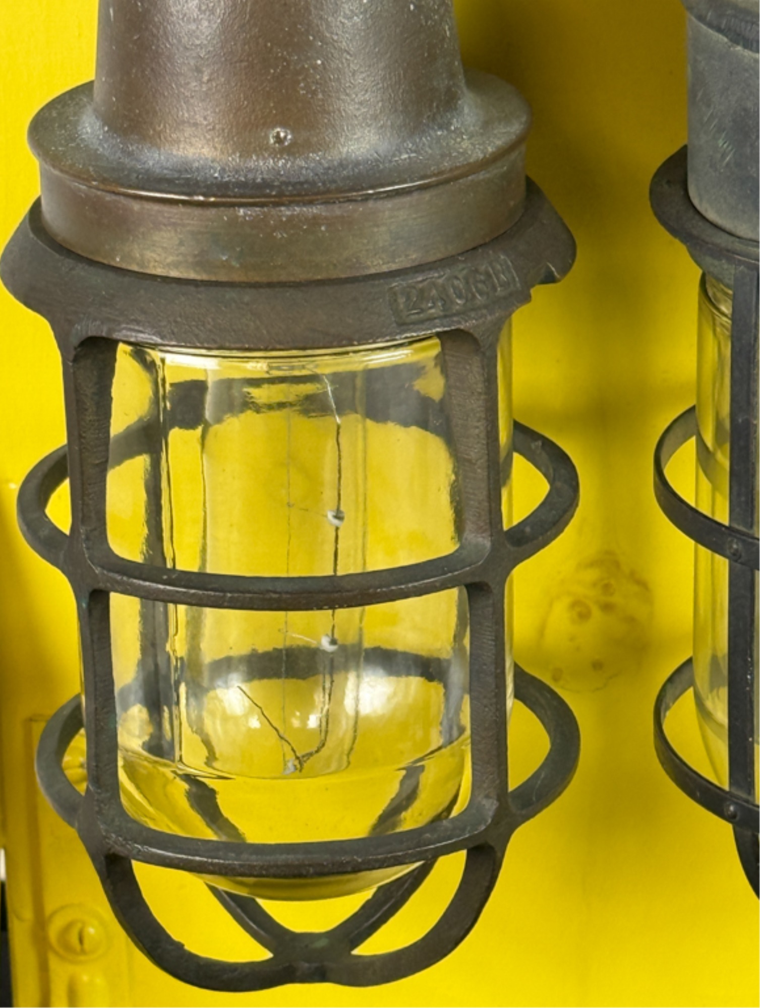 Bulkhead light and sconce. Tallest measures 14 inches. Russell and Stoll of New York. Condition: Good. Temp No 48a