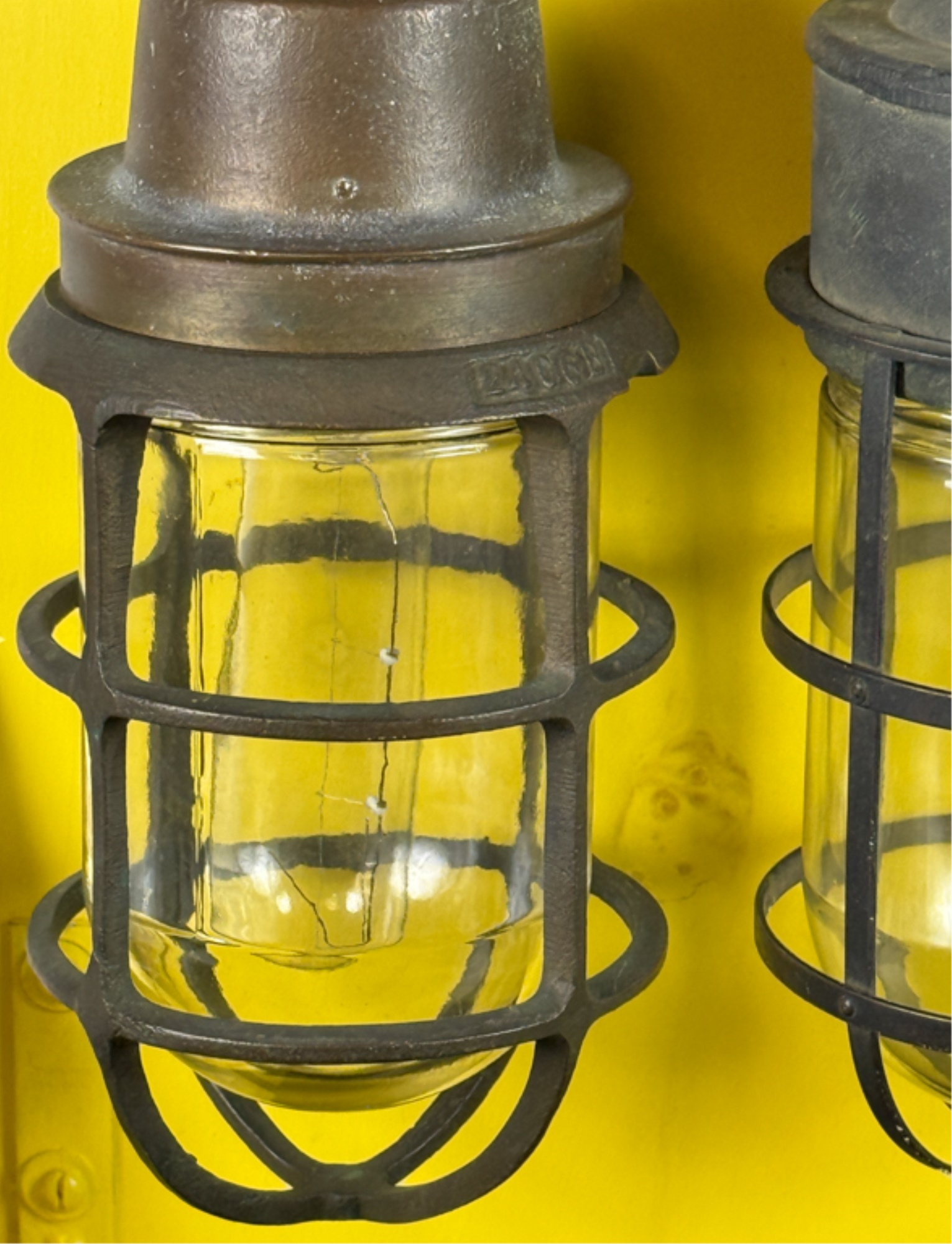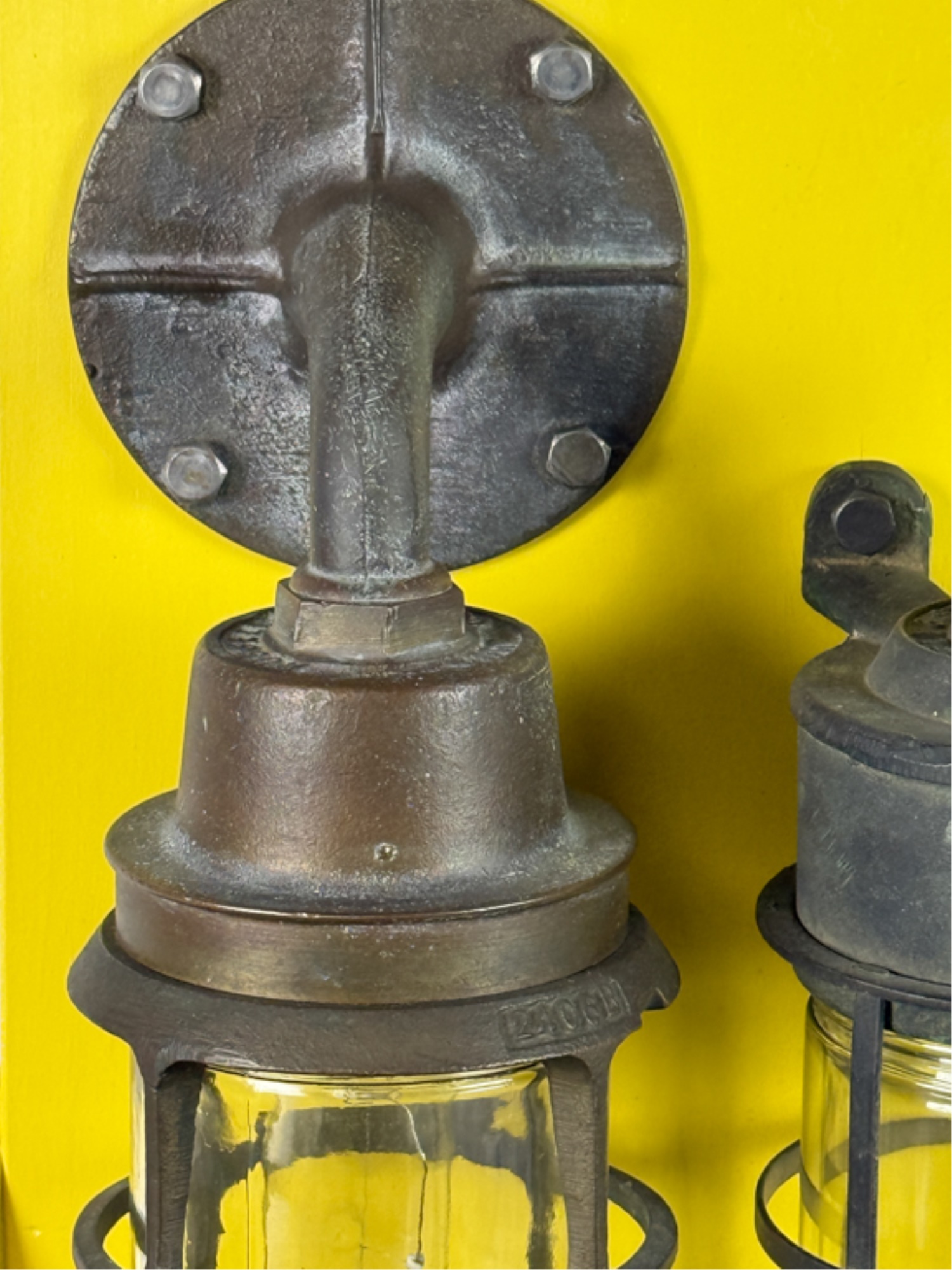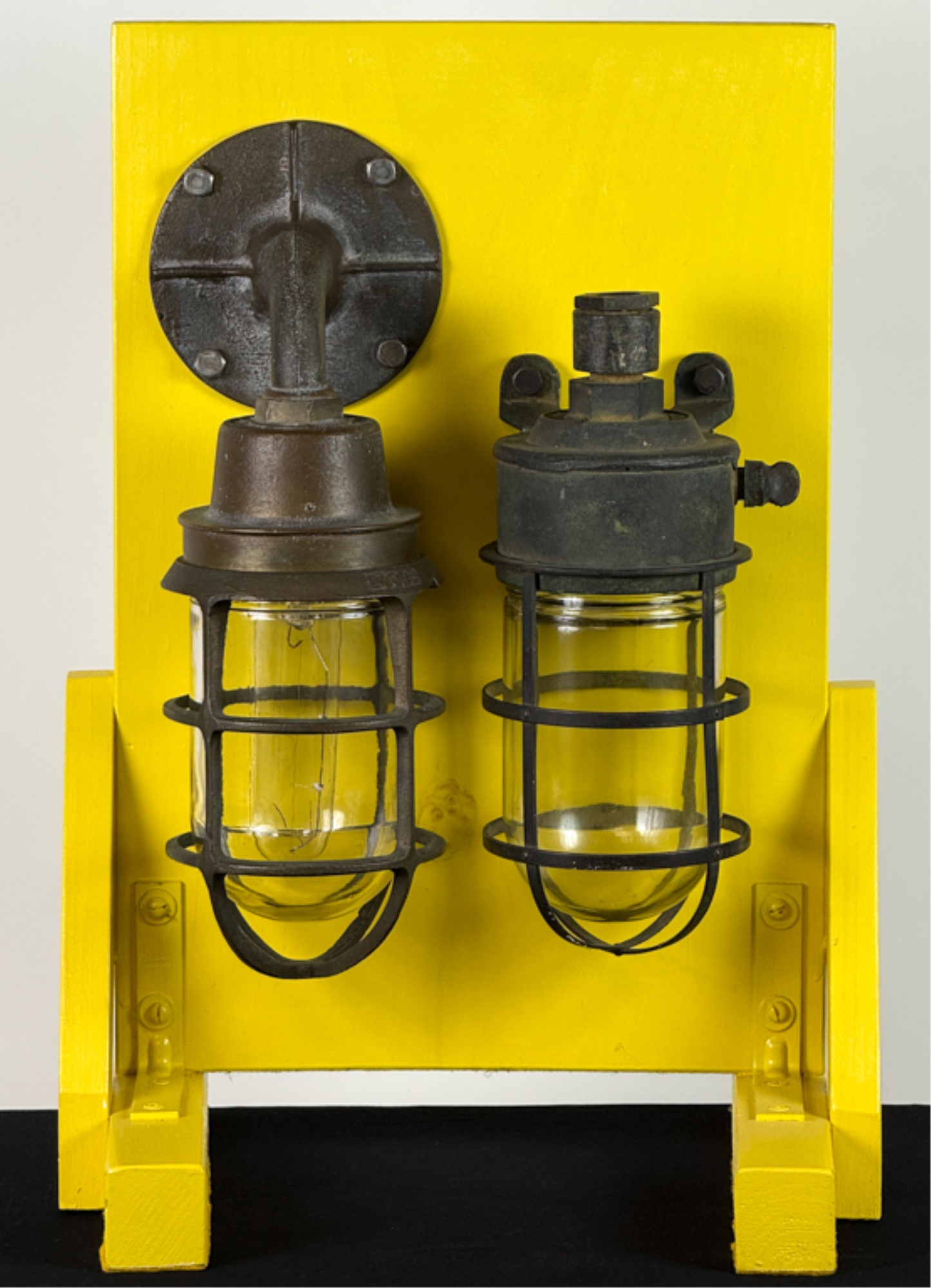 Bulkhead light and sconce. Tallest measures 14 inches. Russell and Stoll of New York. Condition: Good. Temp No 48a
