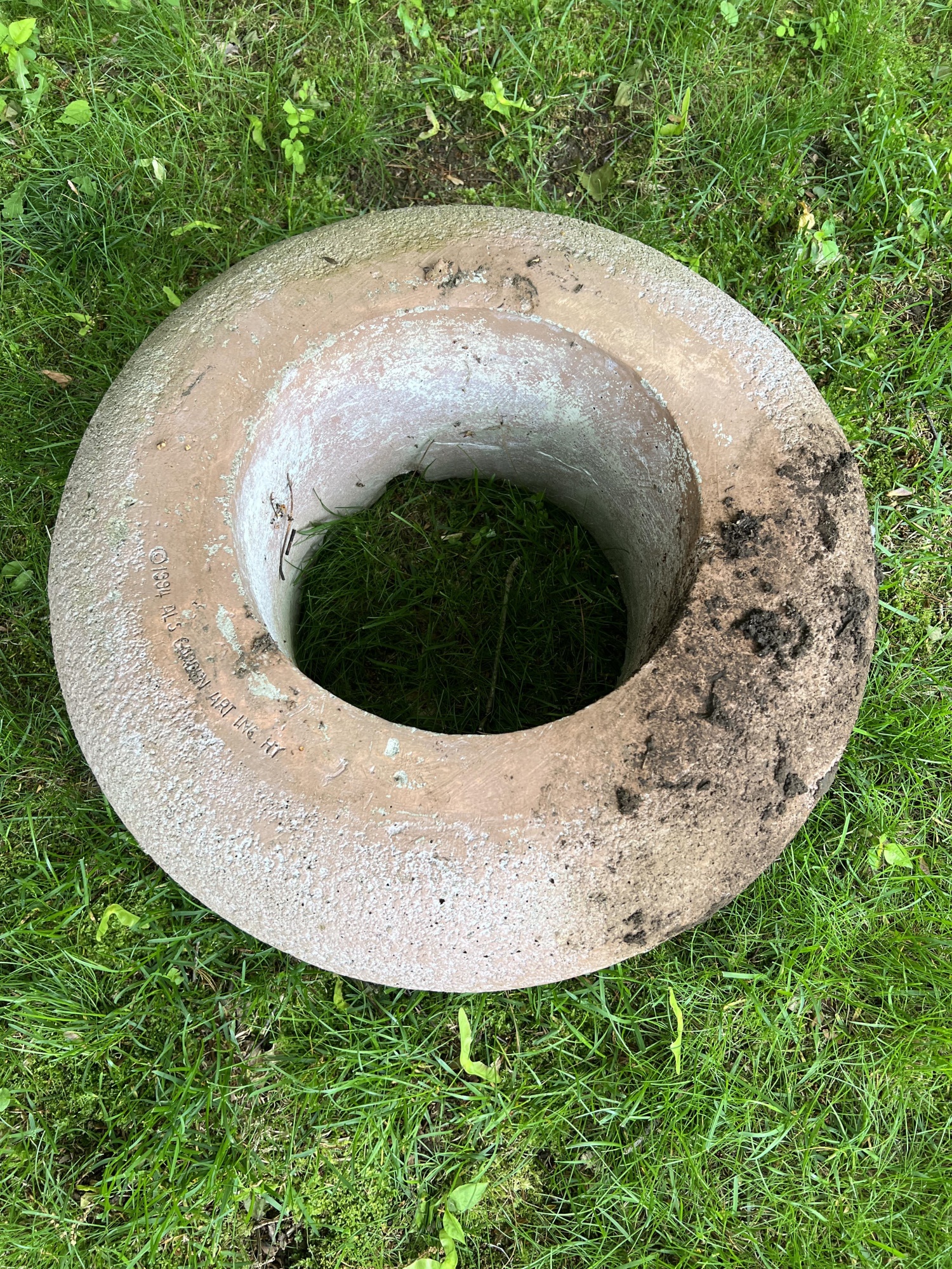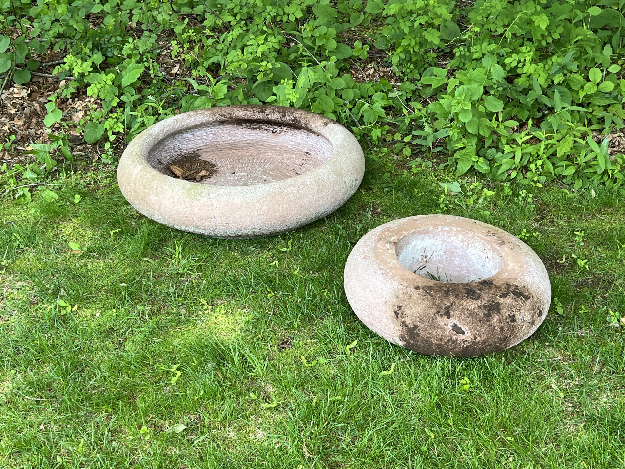 ALS Garden Art Inc NY. 9 x 32 inches and 8 x 20 inches. N.B. Winning bidders are responsible for removing this lot from the property Condition: Weathered, base has a non-displaced crack.