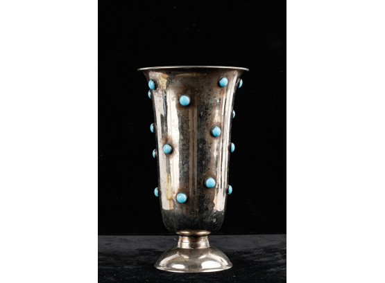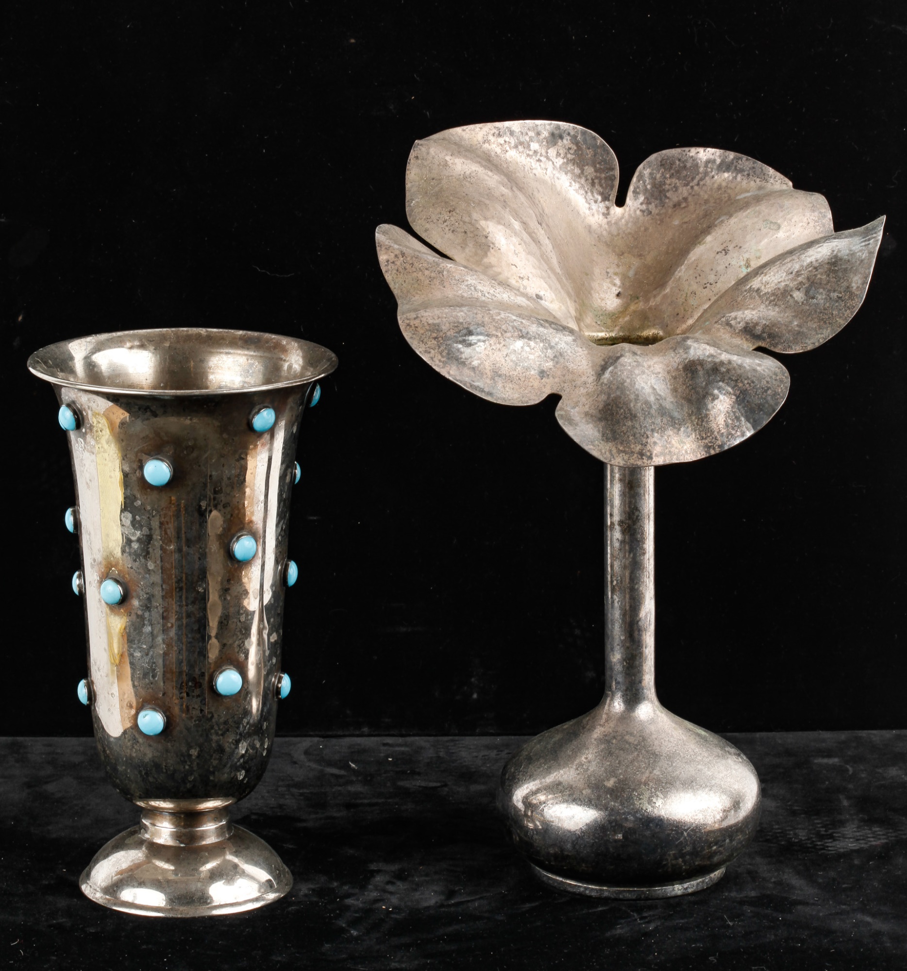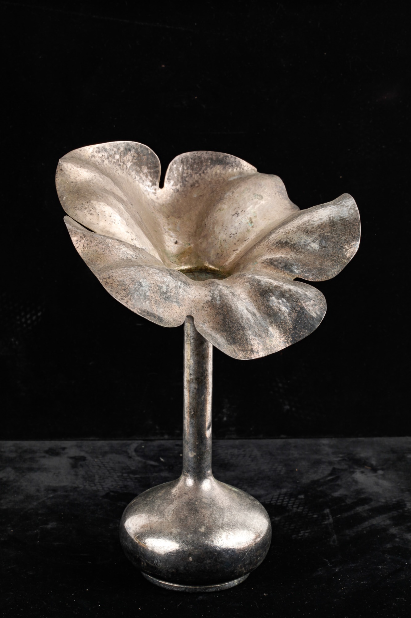 Floral form made in Brazil. 13" H, blue inset 9 1/2" H