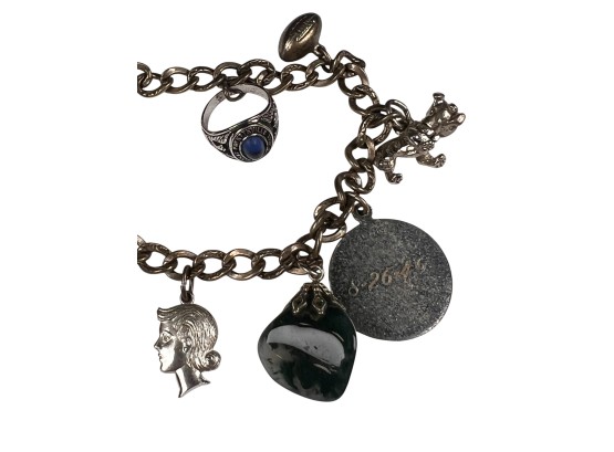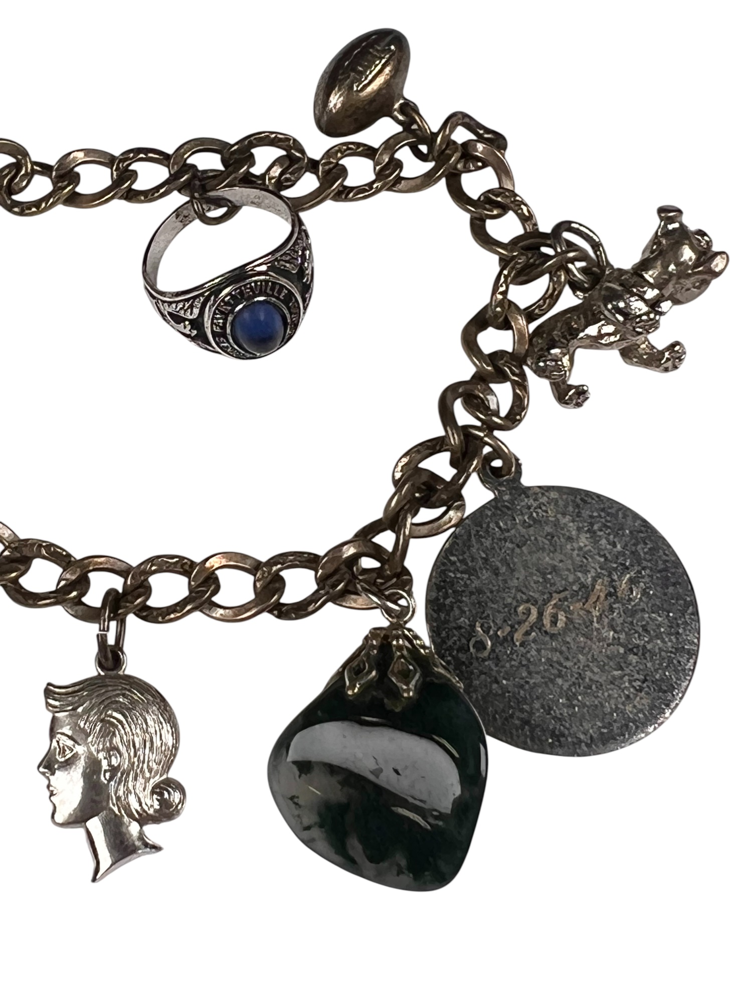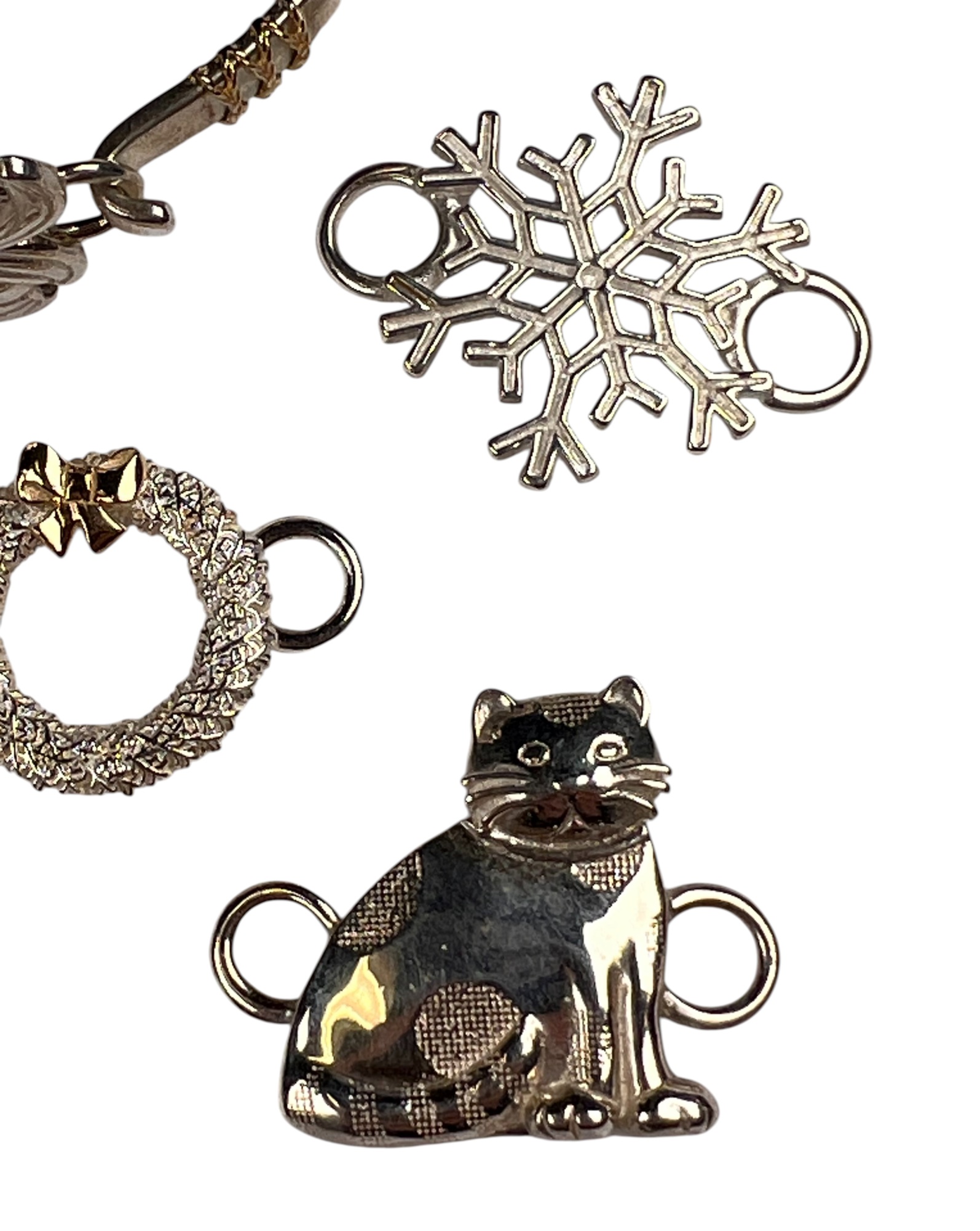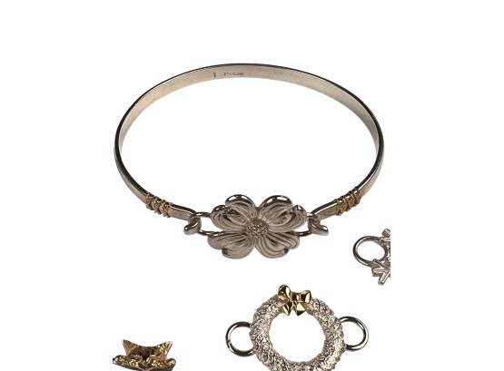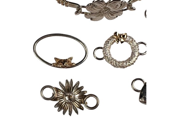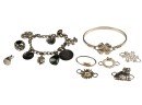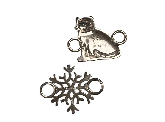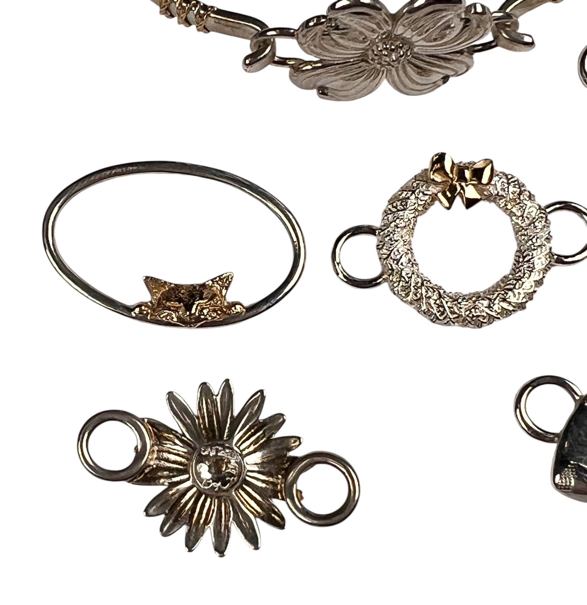 Sterling silver charm bracelet with sterling charms along with another sterling silver bracelet with optional clasps. All marked sterling. 2.06 OZT overall Condition: Good, used