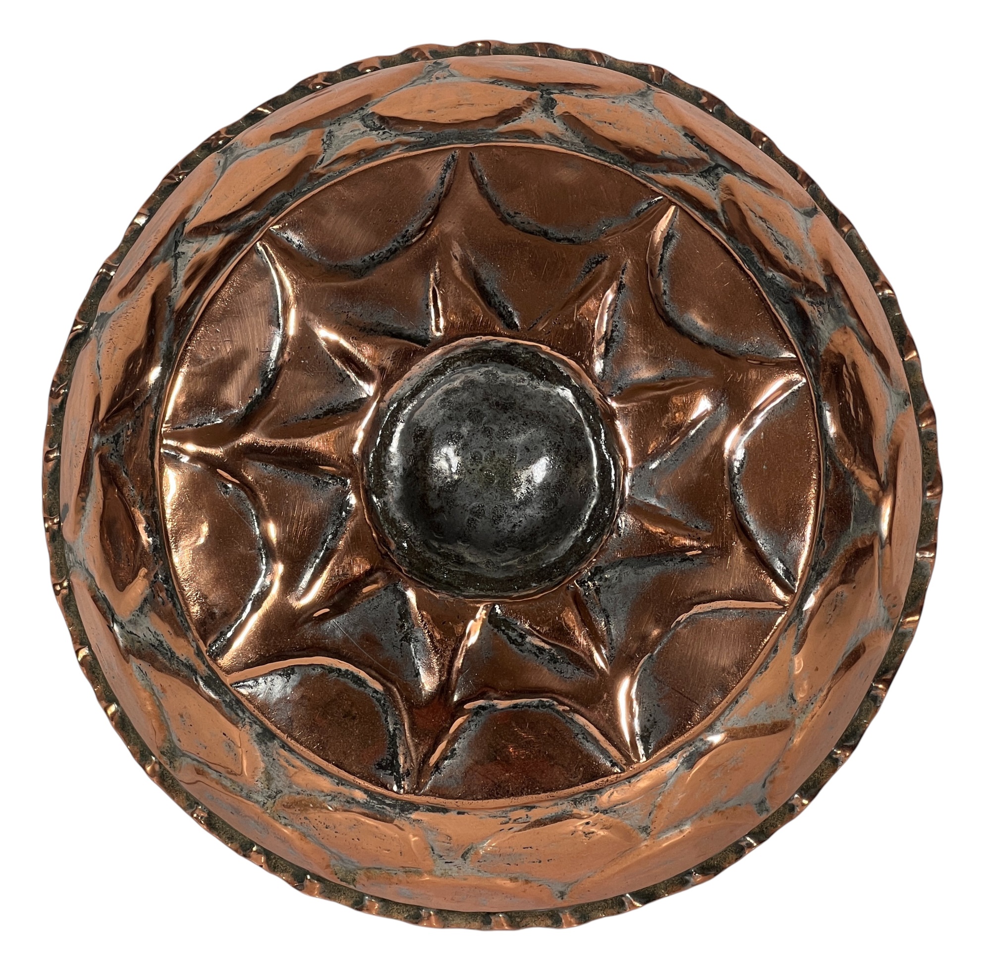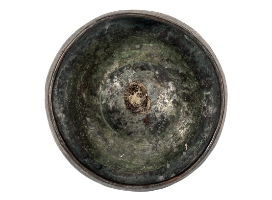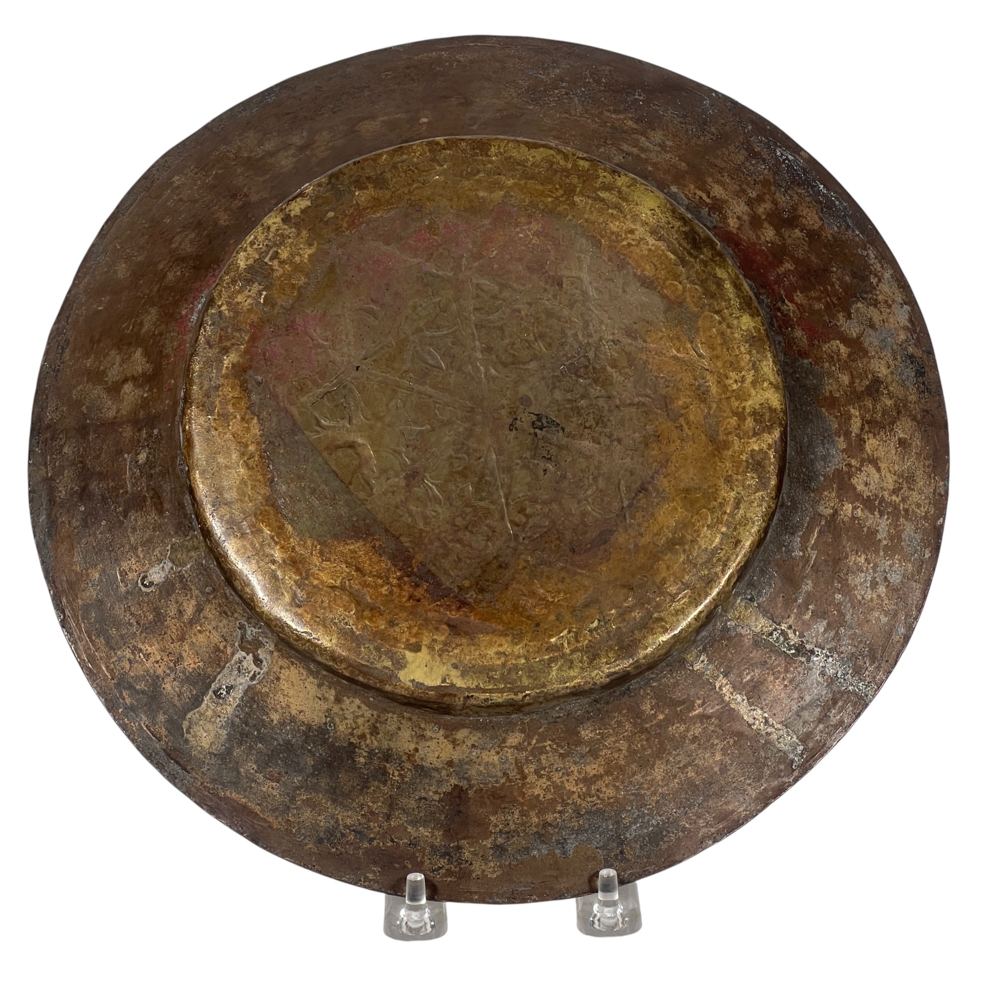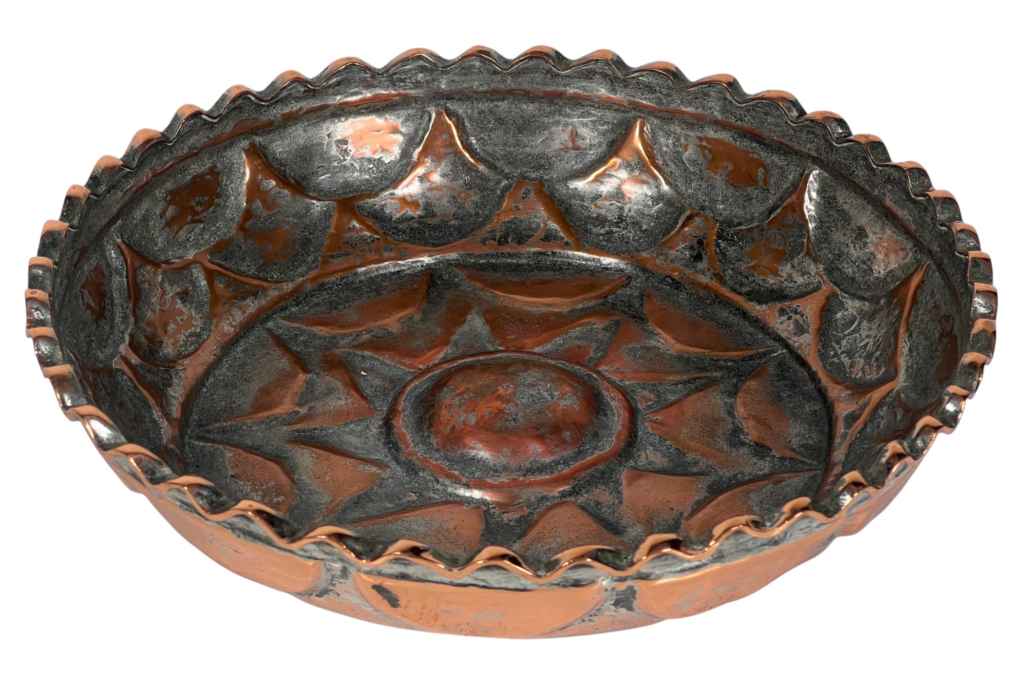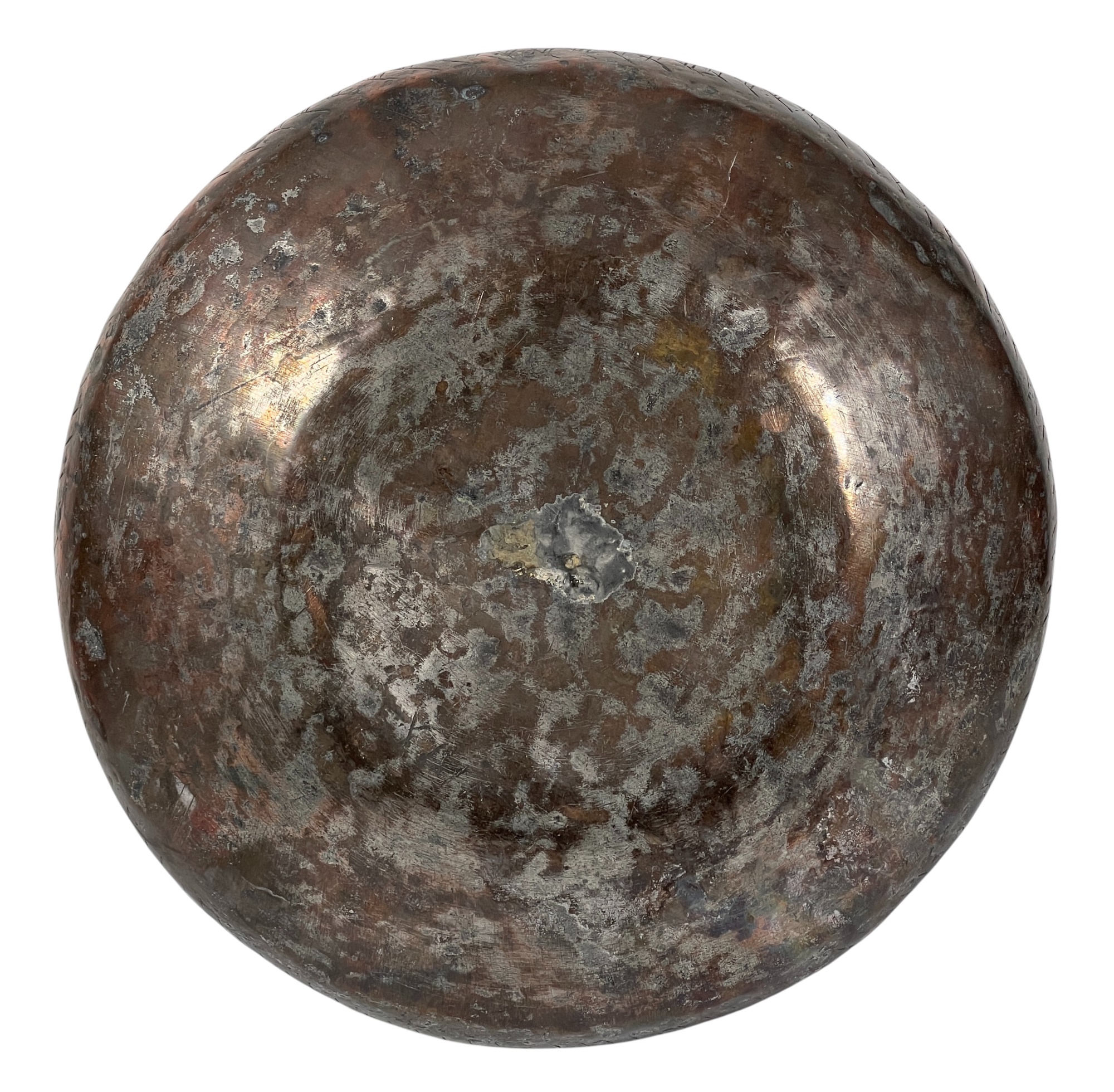 (1) geometric engraved bowl marked Syria, tray with nice geometric floral engravings. 4 1/4 x 8 inches. Condition: Good. Temp No 8862
