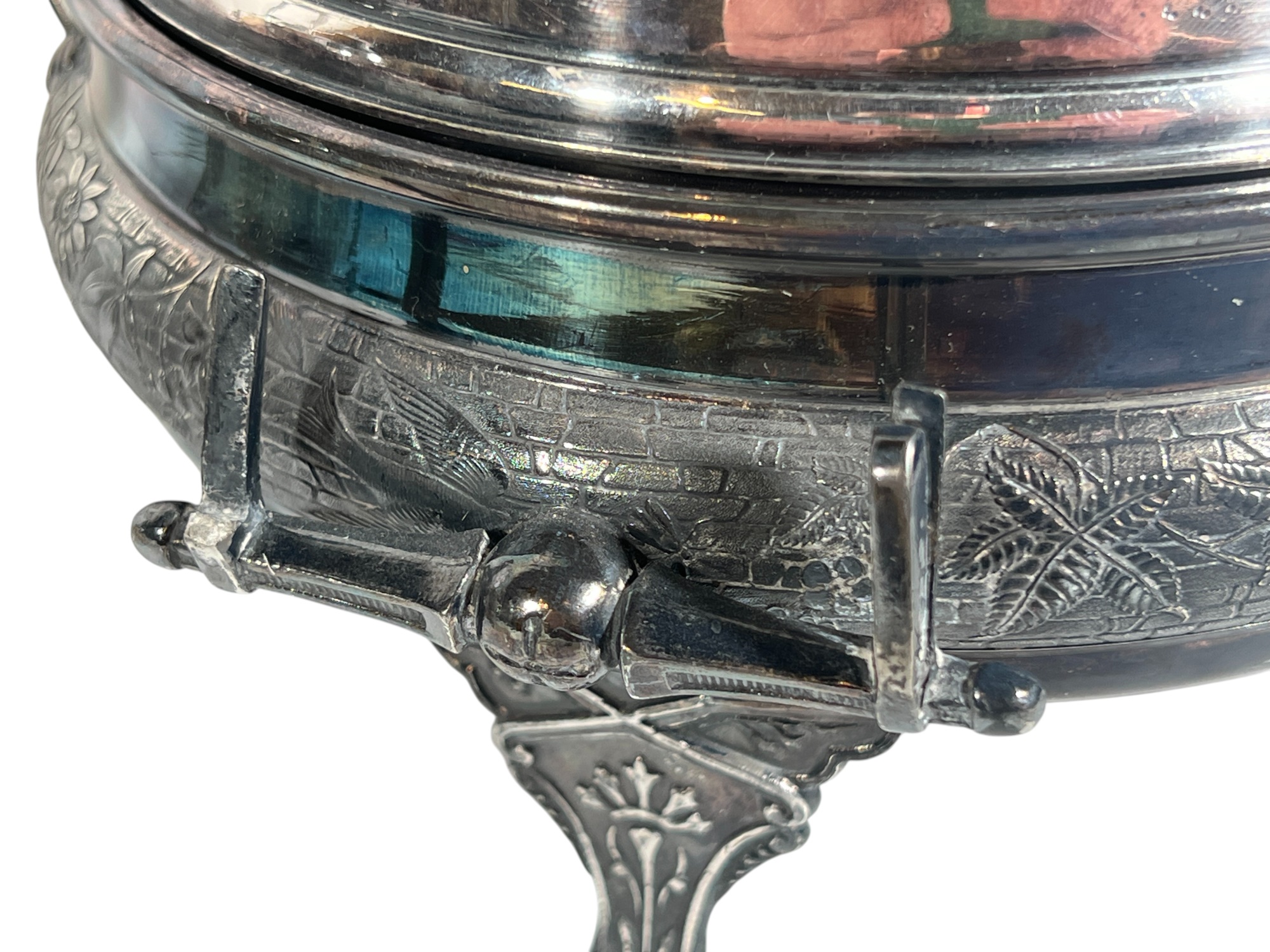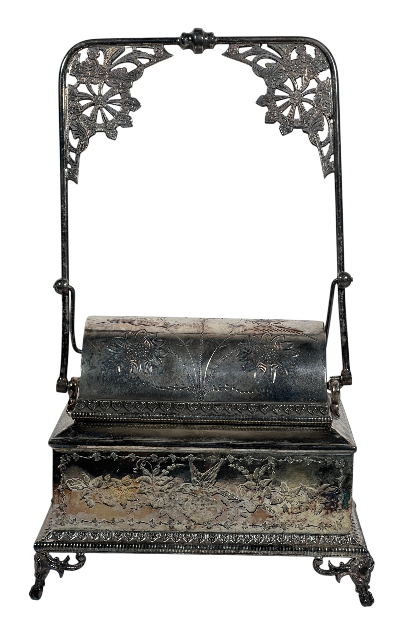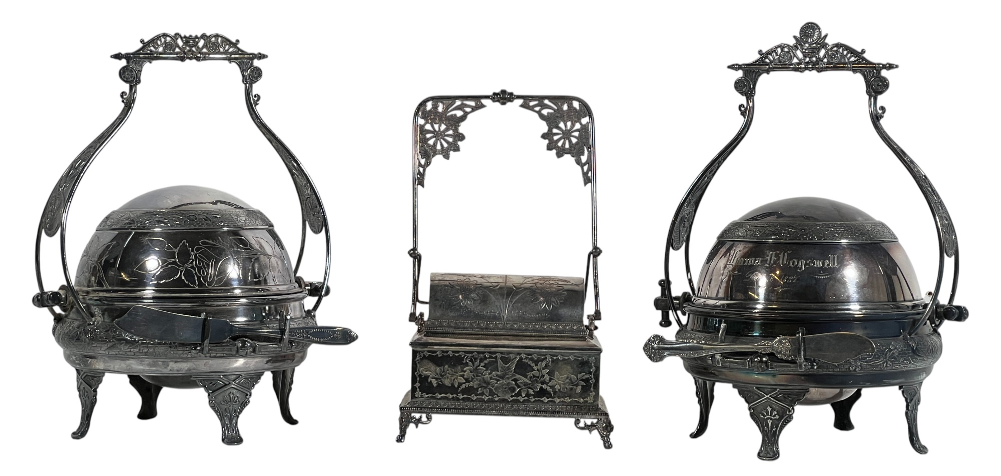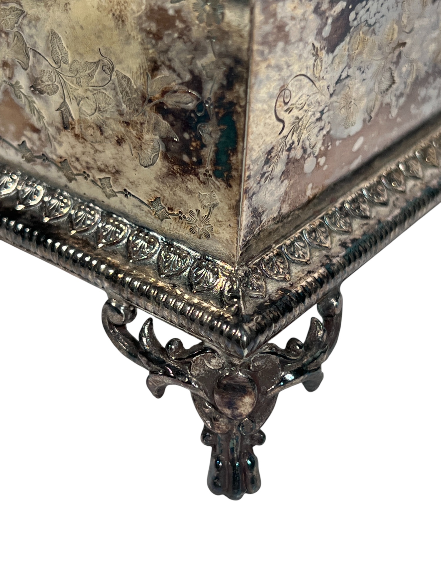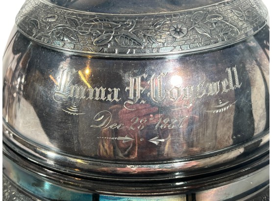 (2) beautifully detailed Victorian silver plate covered butter dishes & (1) jewelry box. 12 x 9 inches. Condition: Liner absent from jewelry box. Temp No 8561