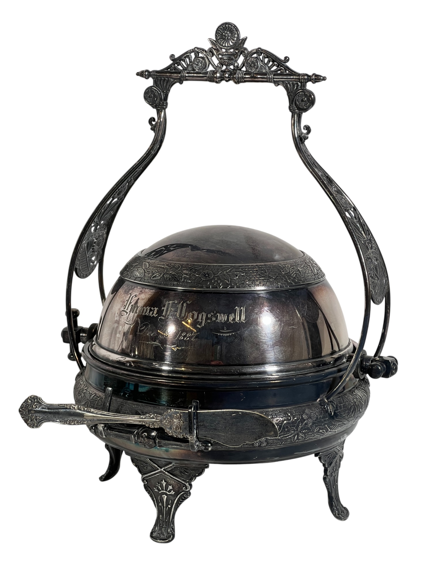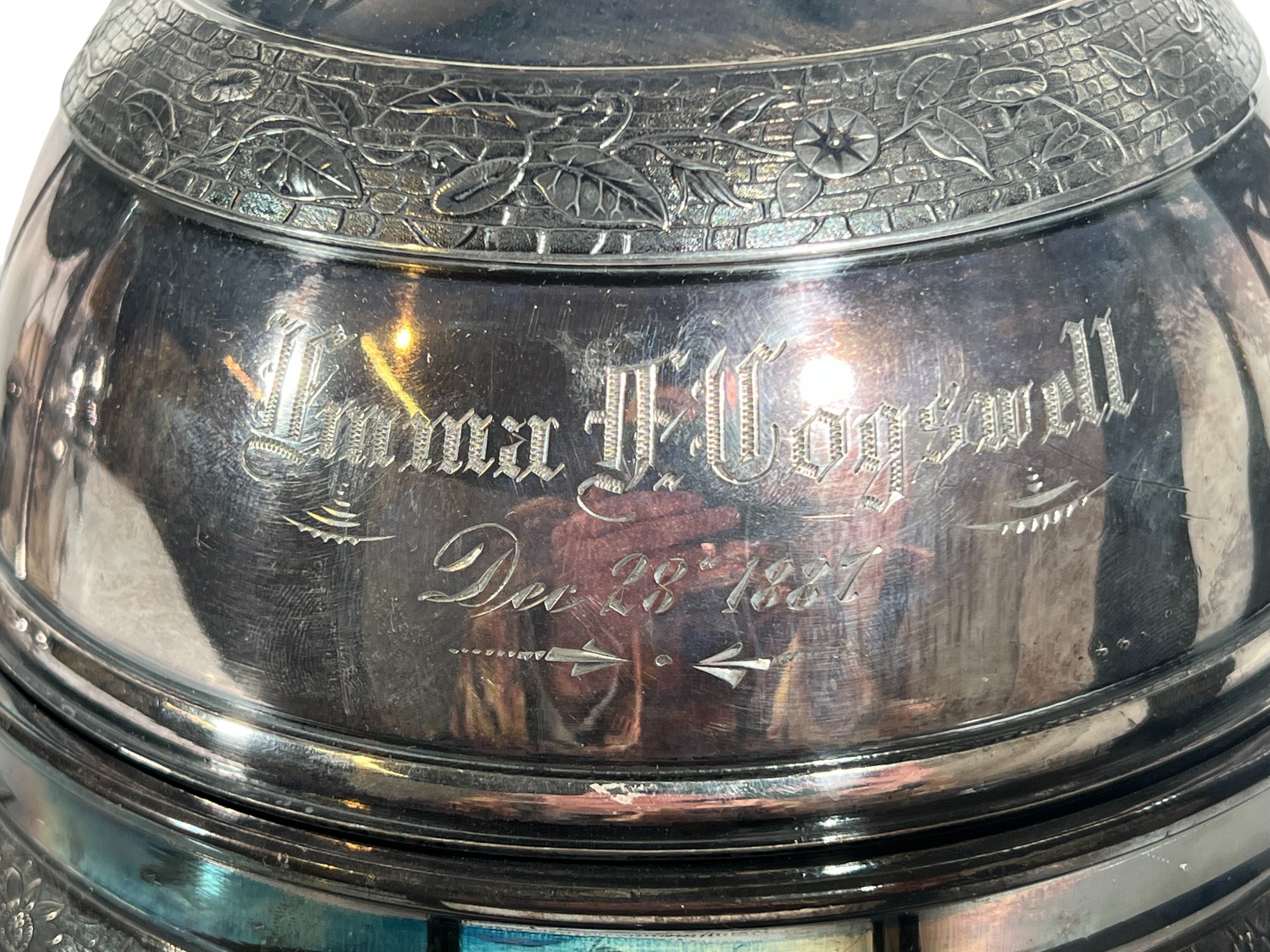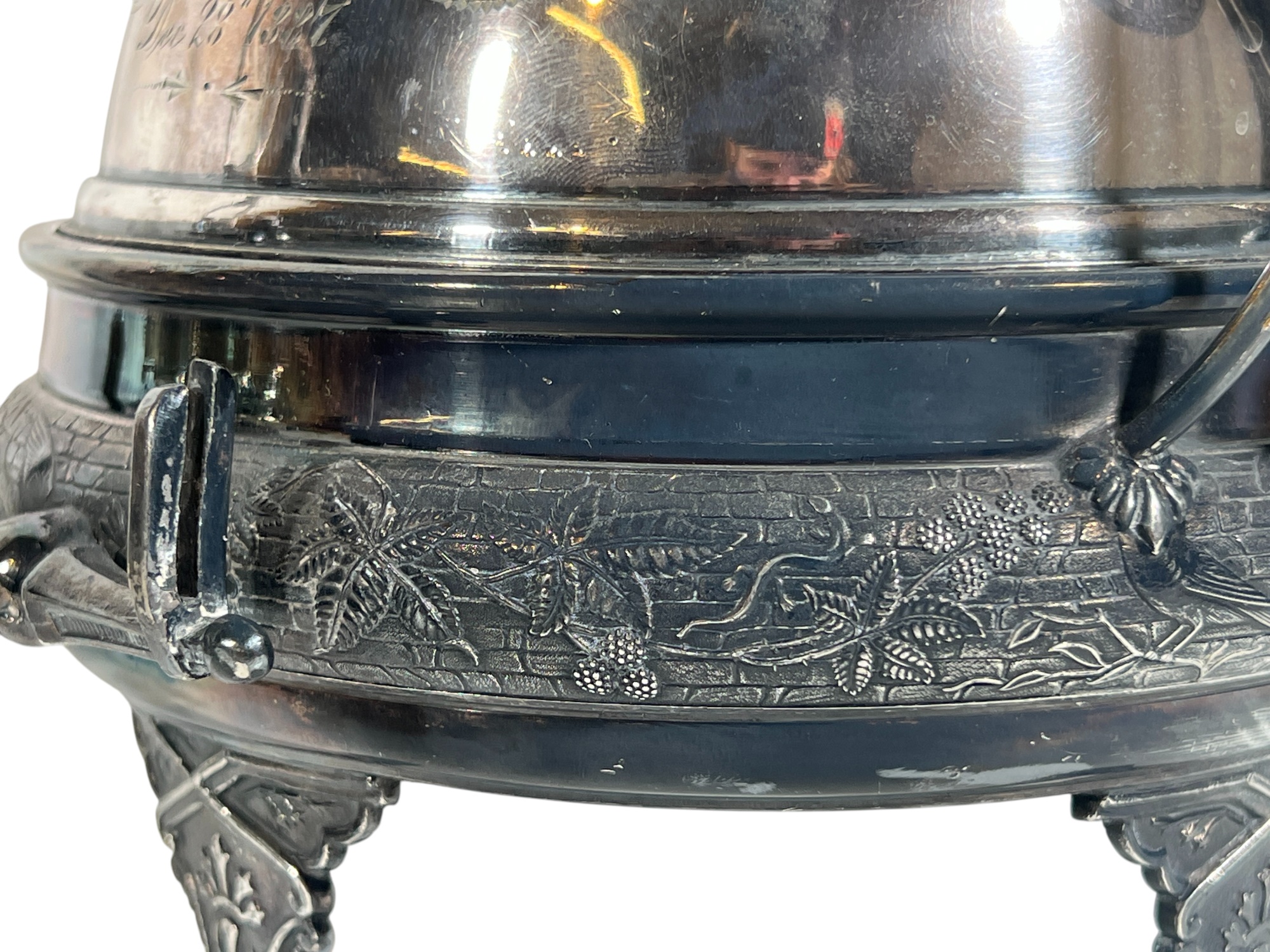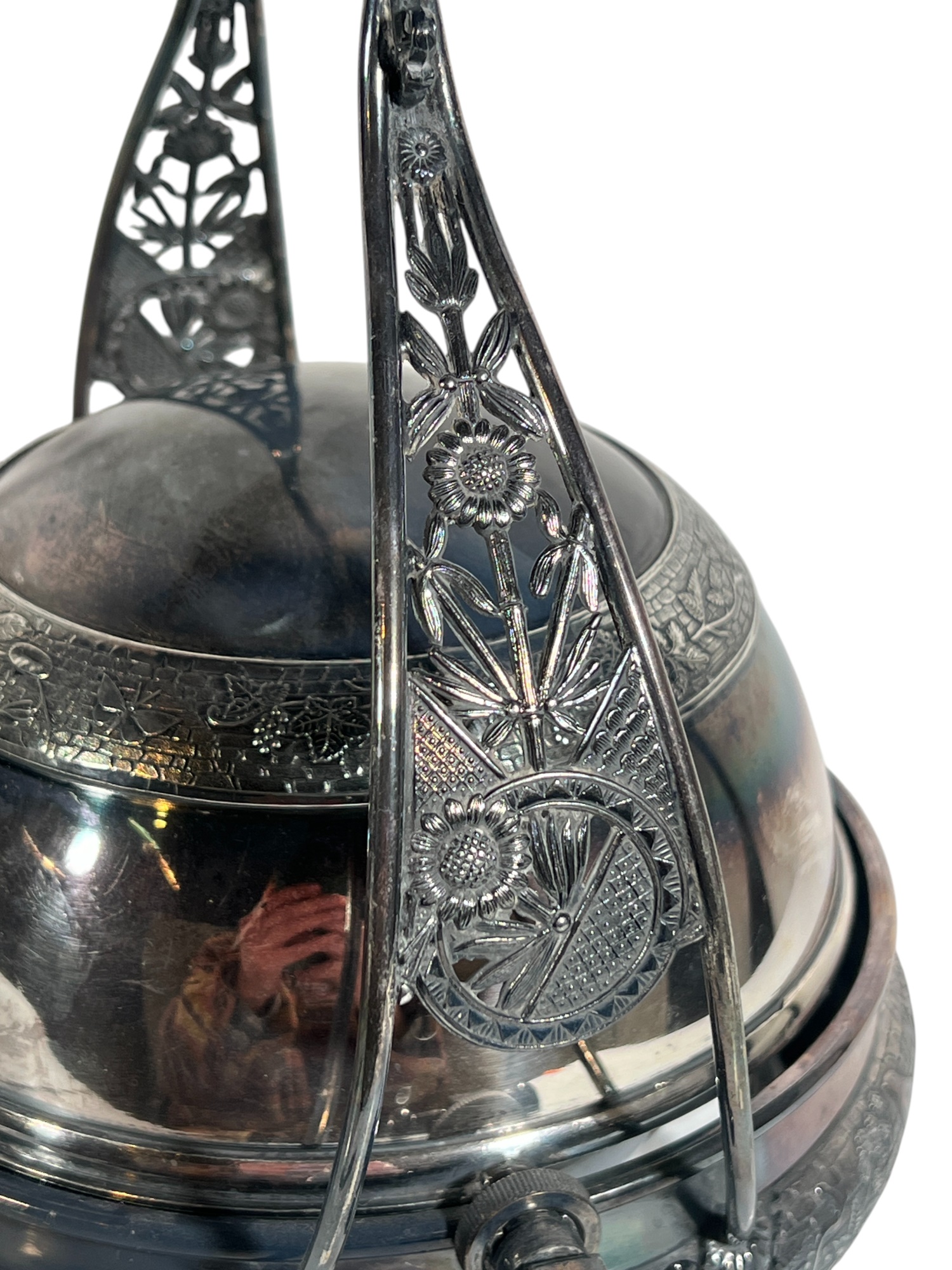 (2) beautifully detailed Victorian silver plate covered butter dishes & (1) jewelry box. 12 x 9 inches. Condition: Liner absent from jewelry box. Temp No 8561