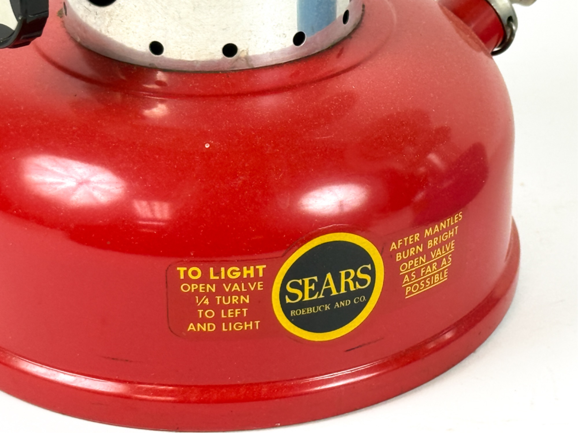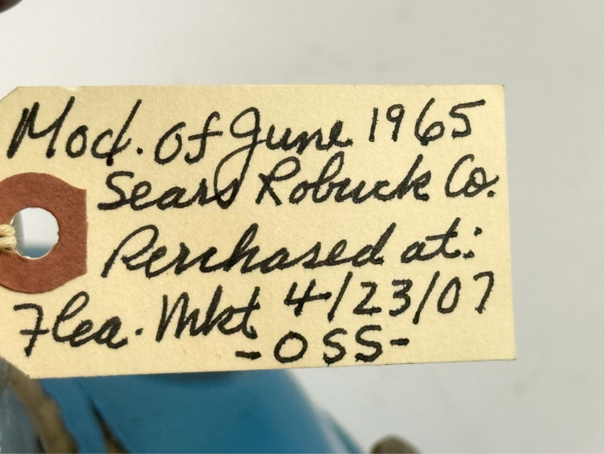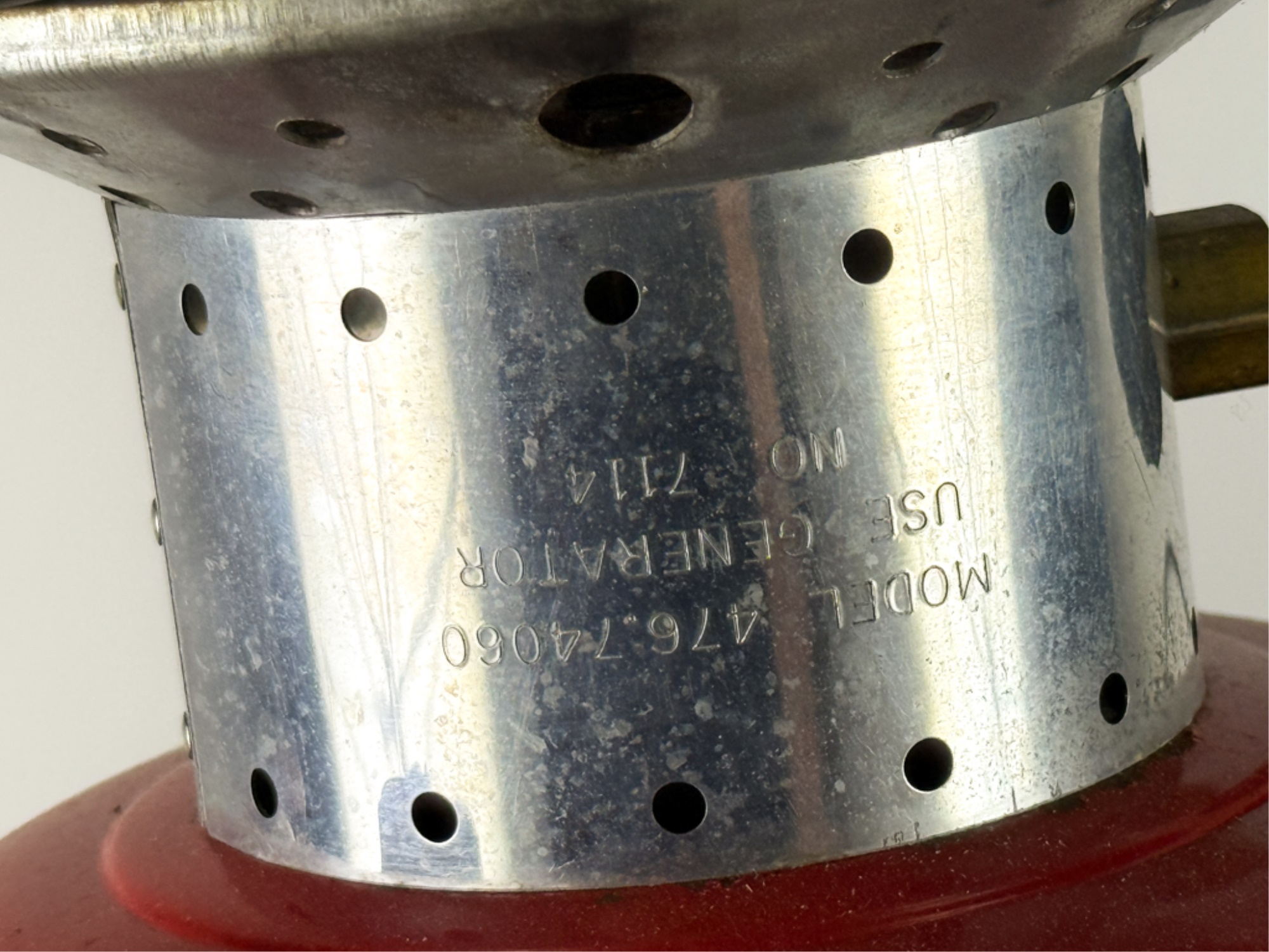 In red and blue paint. 18 inches including handle. Condition: Some paint loss. Untested, maintained, & stored in a dry, enclosed shed. Temp No 4074