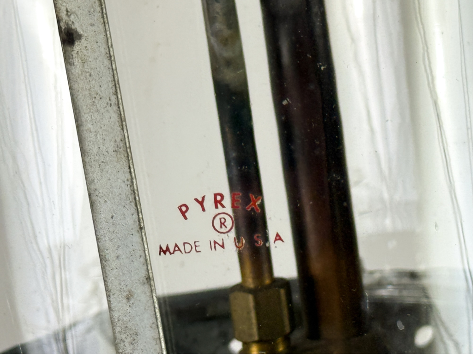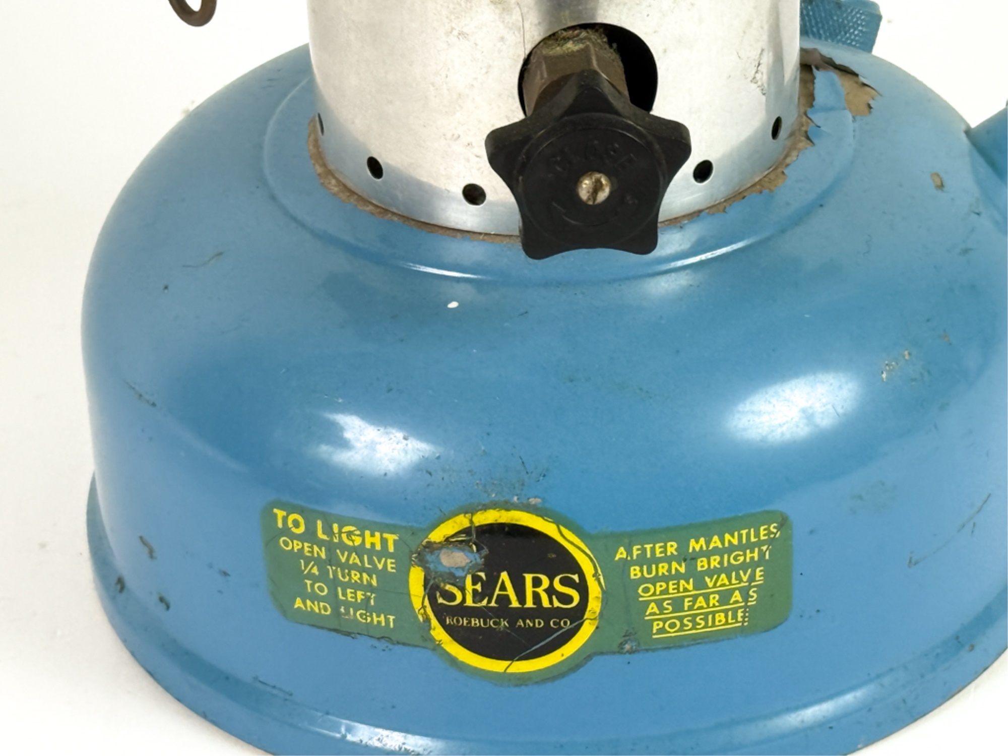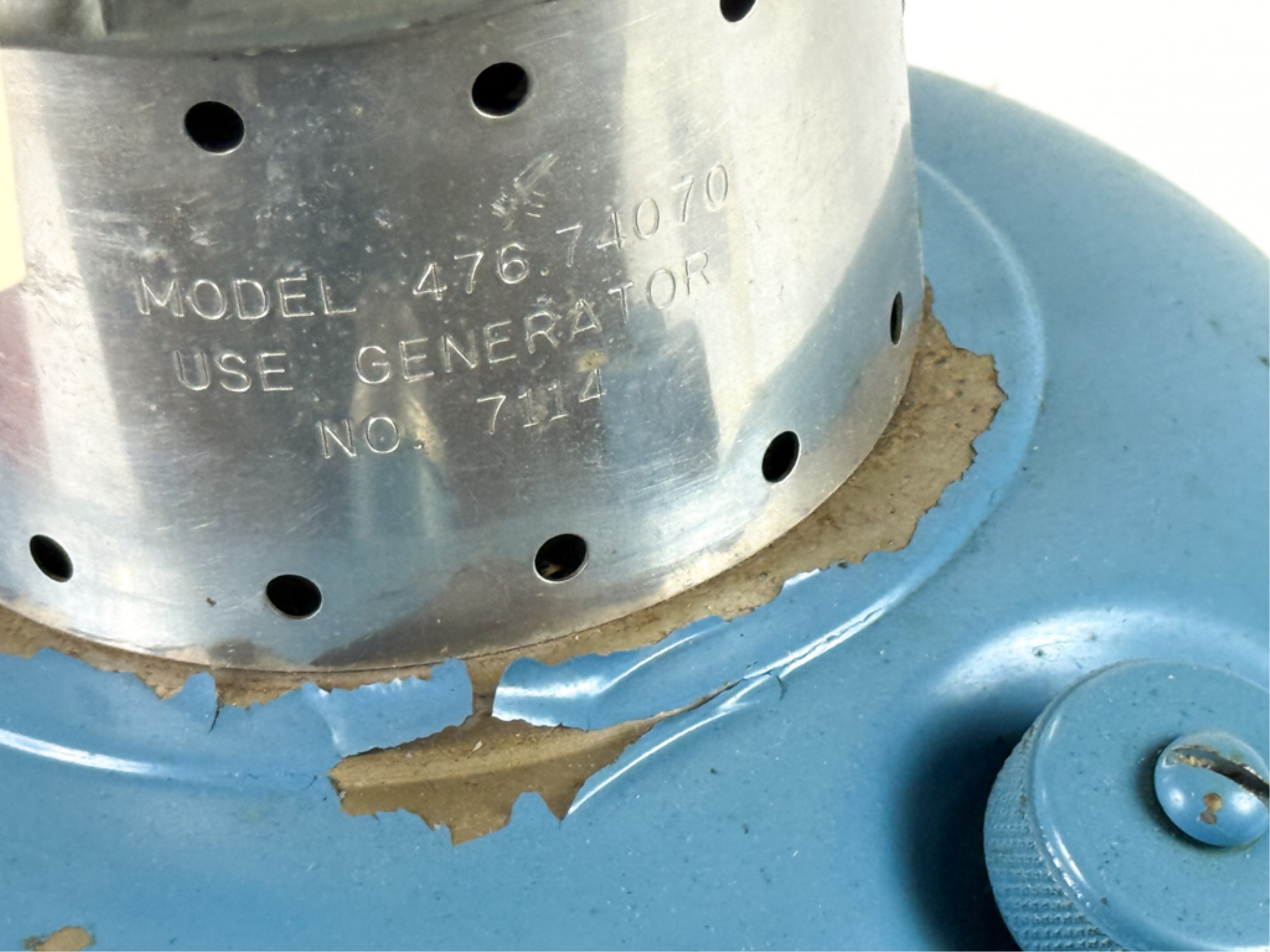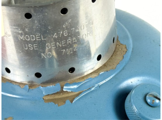 In red and blue paint. 18 inches including handle. Condition: Some paint loss. Untested, maintained, & stored in a dry, enclosed shed. Temp No 4074