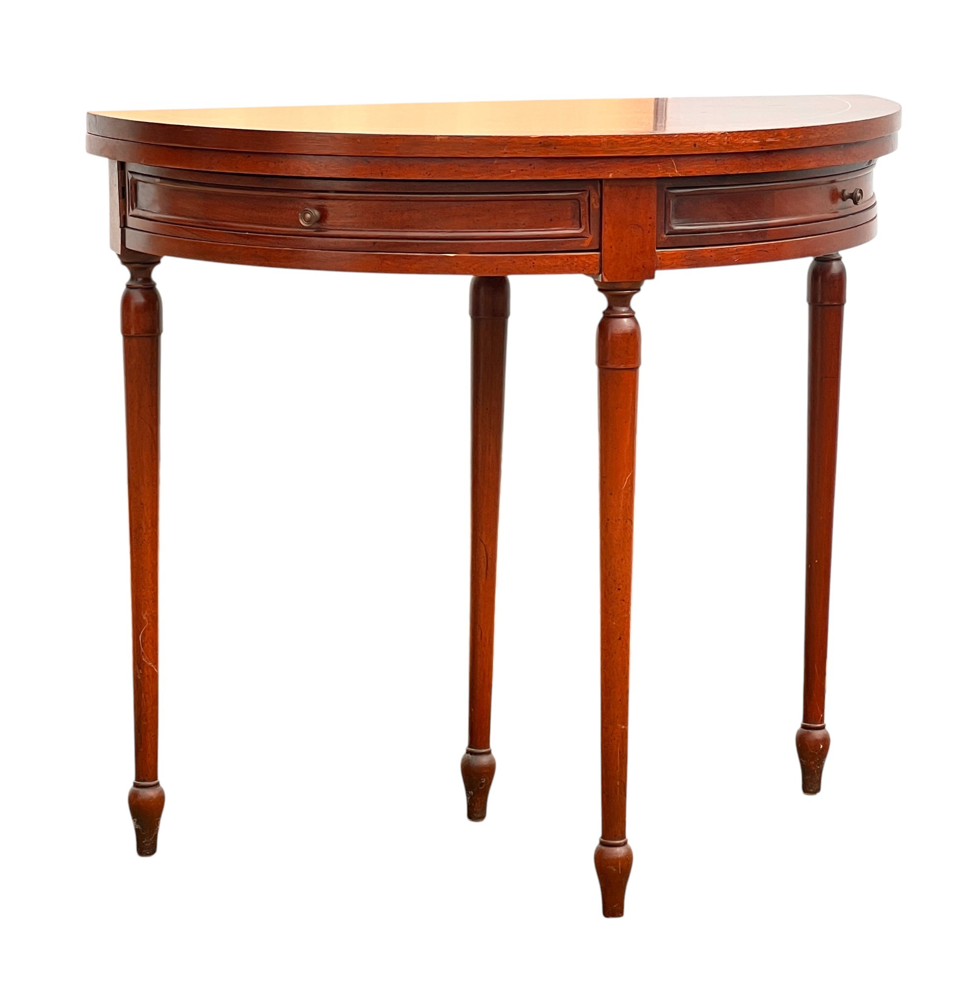 (2) Quarter round molded drawers. 28.5 x 31.75 x 13.75 inches (closed)