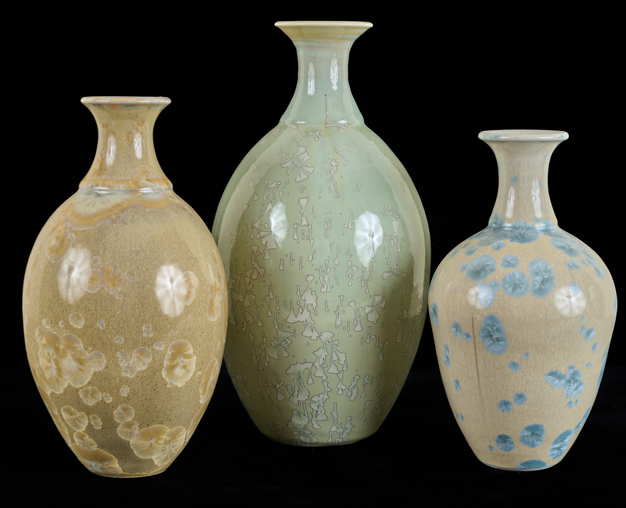 Glazed porcelain. Signed in cipher and numbered by the same artist. 8, 9 and 10.5 inches Condition: Good