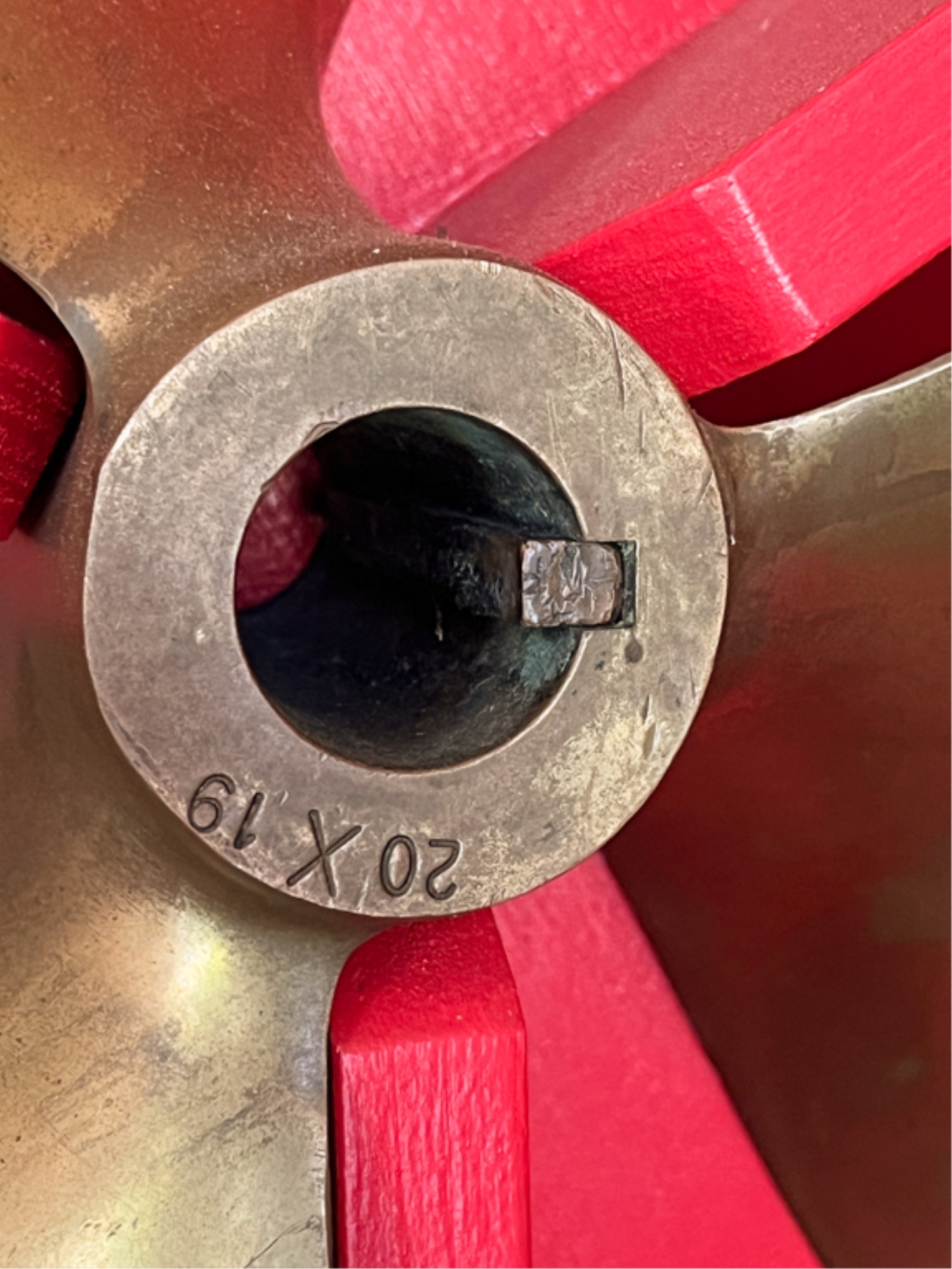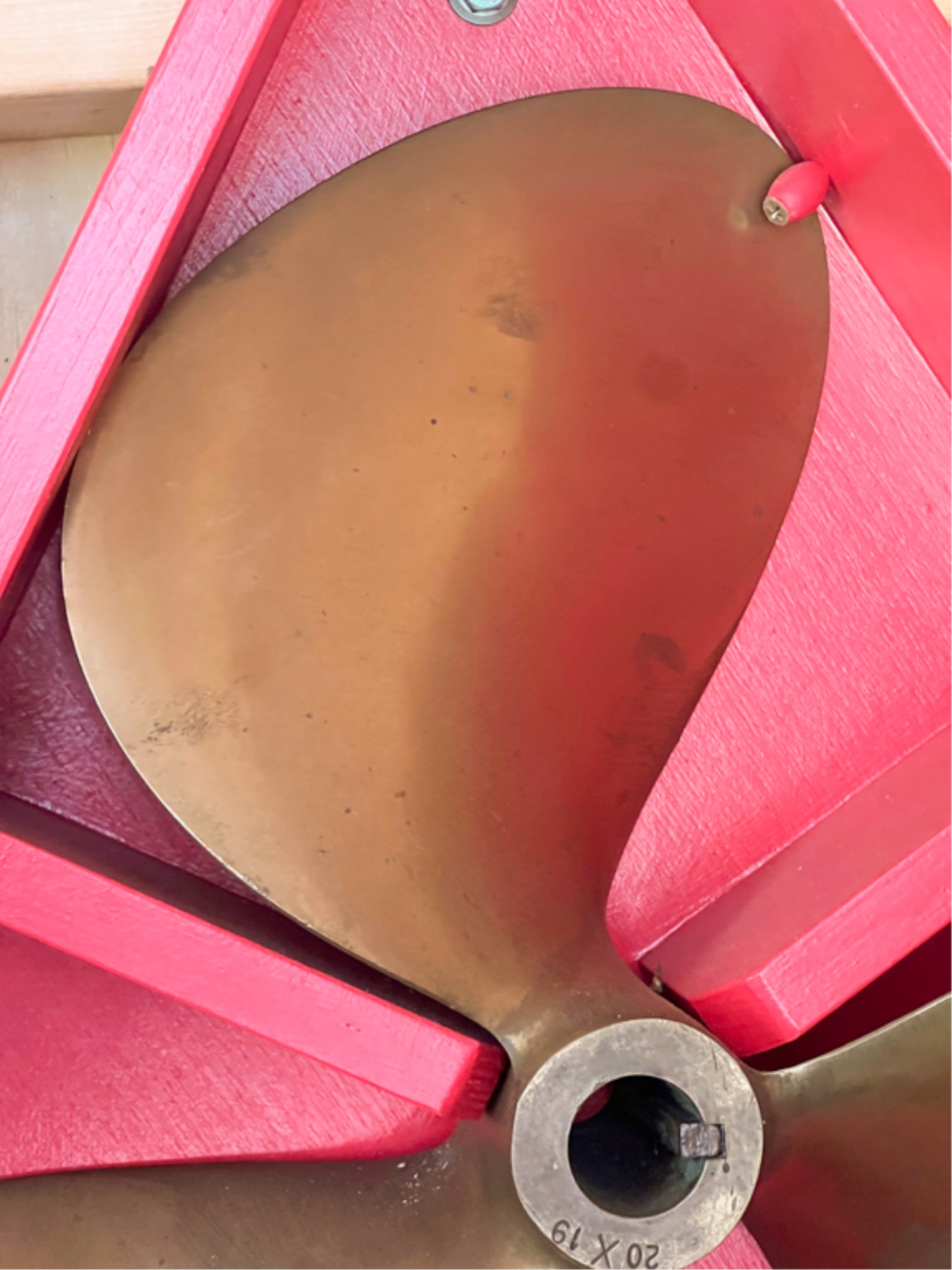 Marked 20 x 19, housed in a custom made case. Propellor measures 17 x 18 inches. Condition: Expected wear from use. Temp No 4153