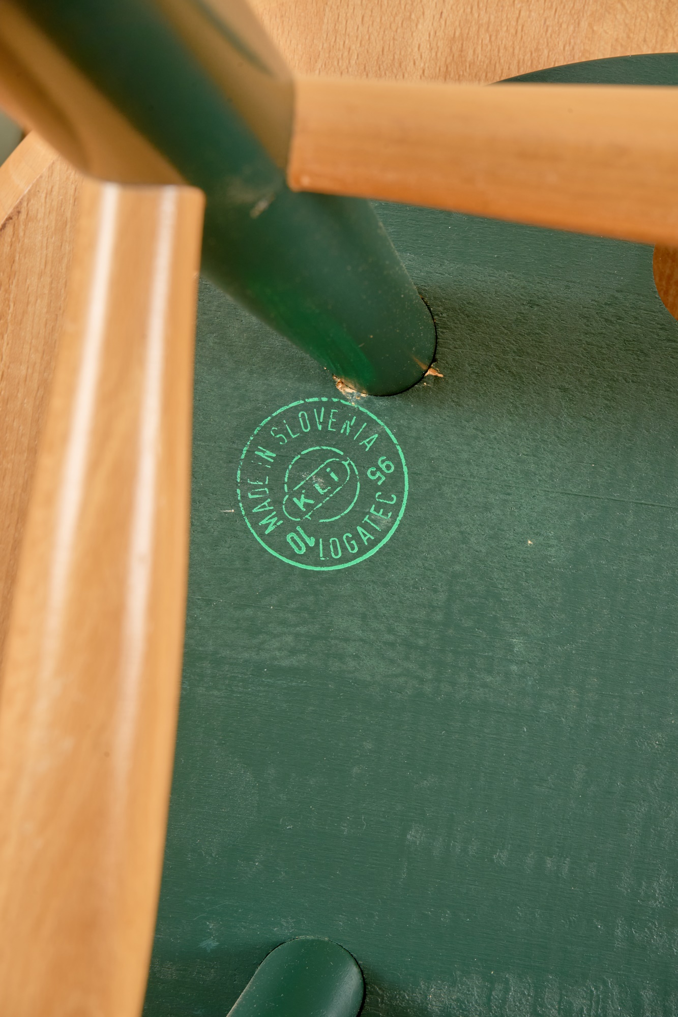 Solid hardwood, Made in Slovenia 44 inches. 29.5 x 17 x 16 inches (height of seat) Condition: Good