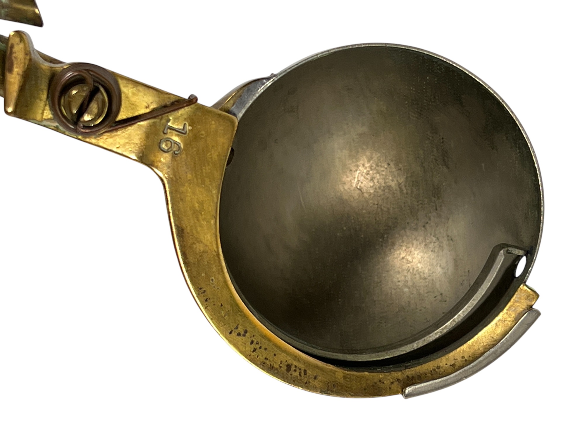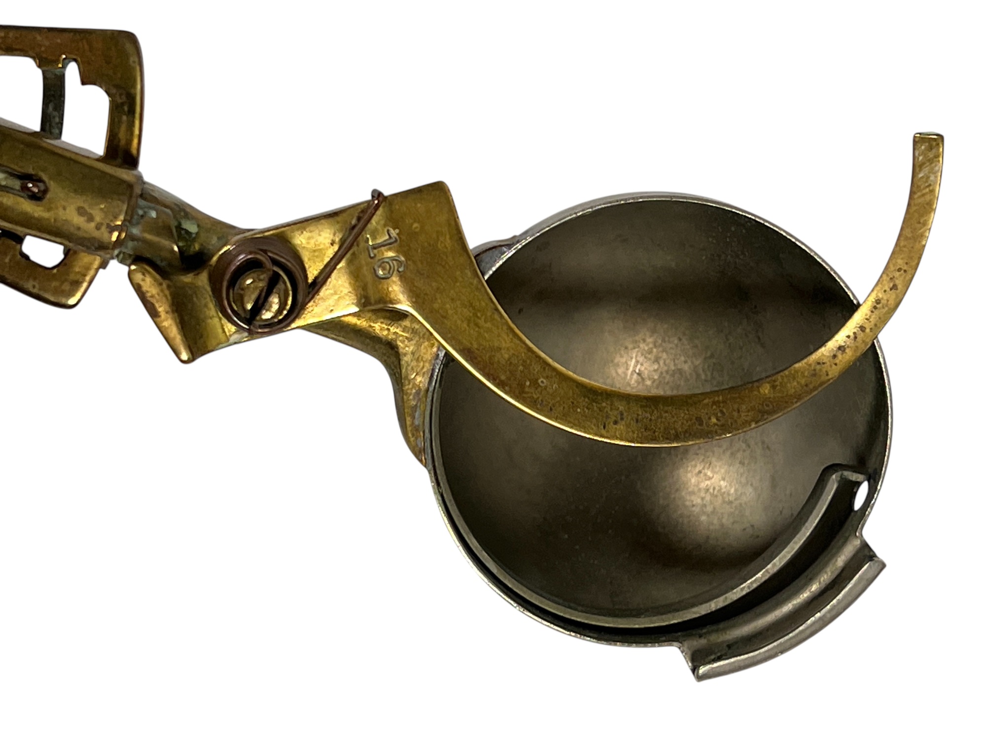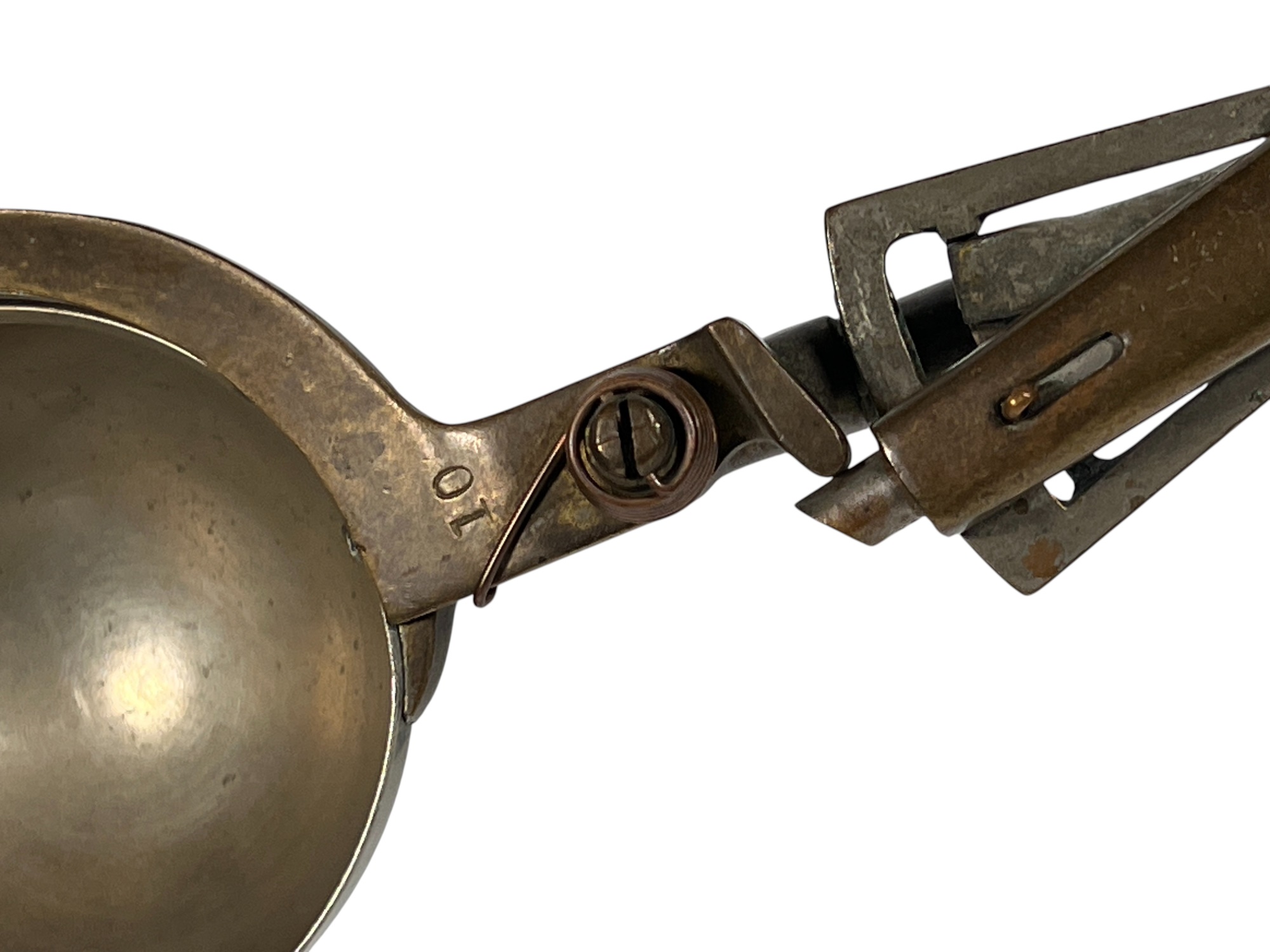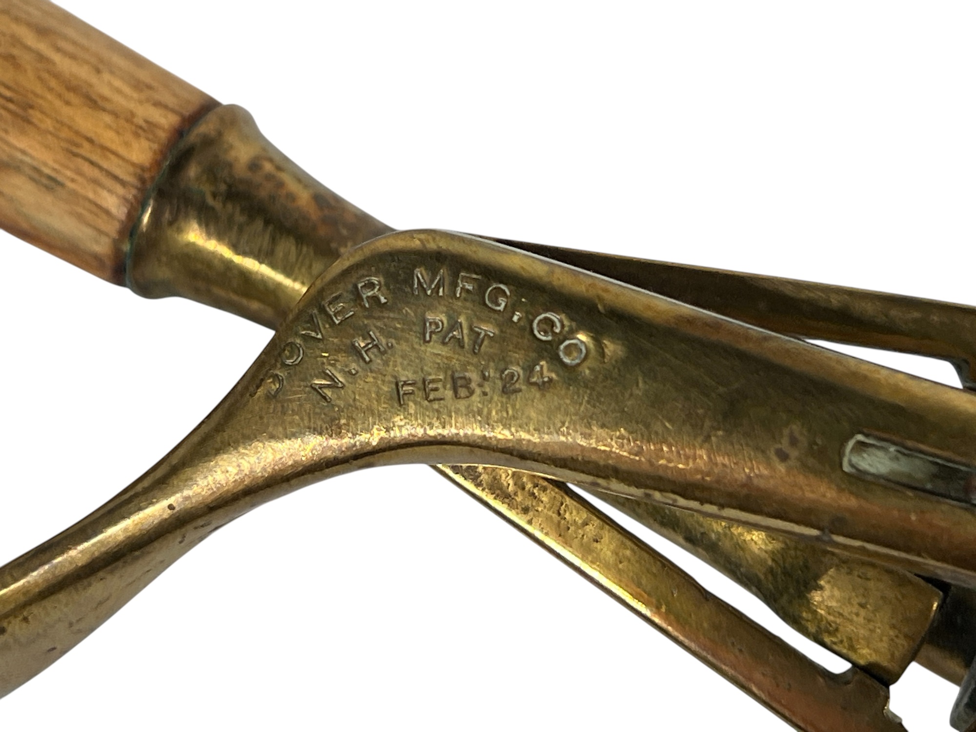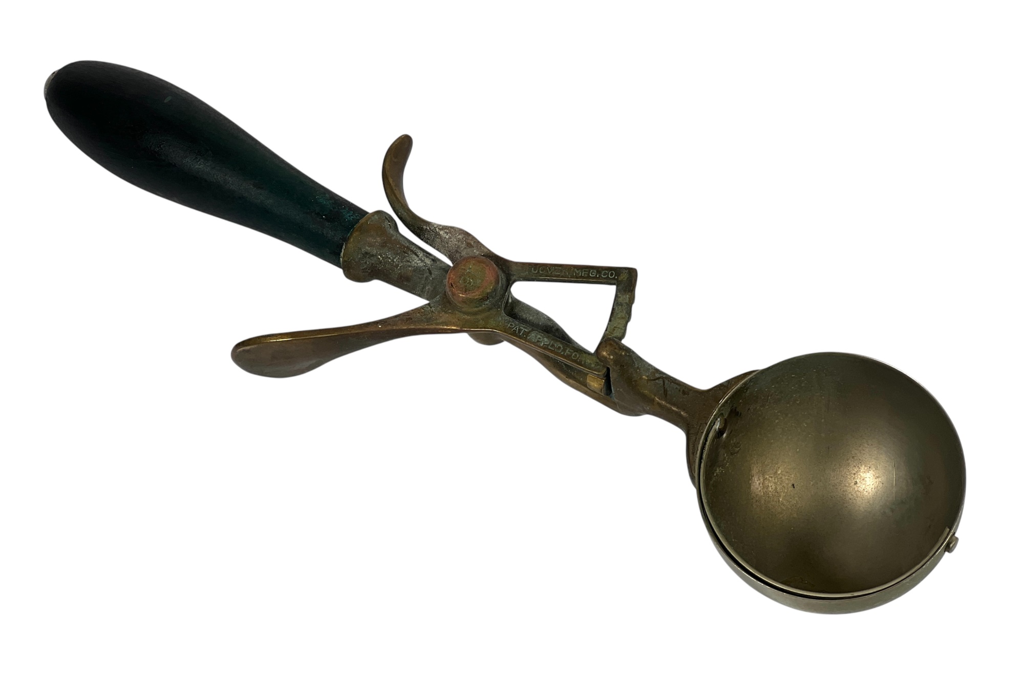 (2) dual action spring loaded ice cream scoops made by Dover Mfg. Co. (Dover, NH) models 10 and 16. Early (20th c), chromed brass and wood. 11 inches. Condition: Good. Temp No 8702
