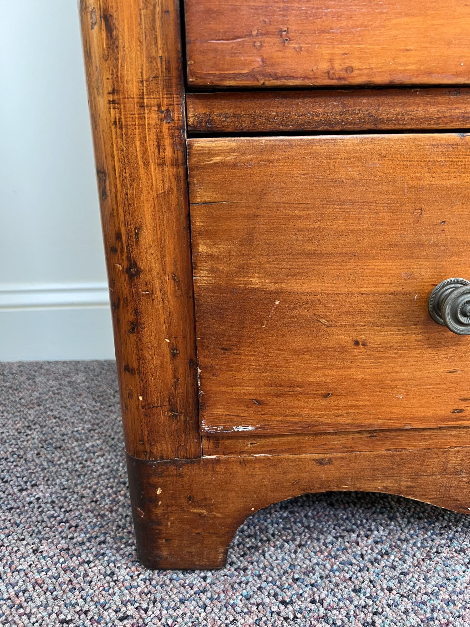 Molded top, paneled sides and shaped apron. 31 x 36 x 17 inches Condition: Refinished at an early date