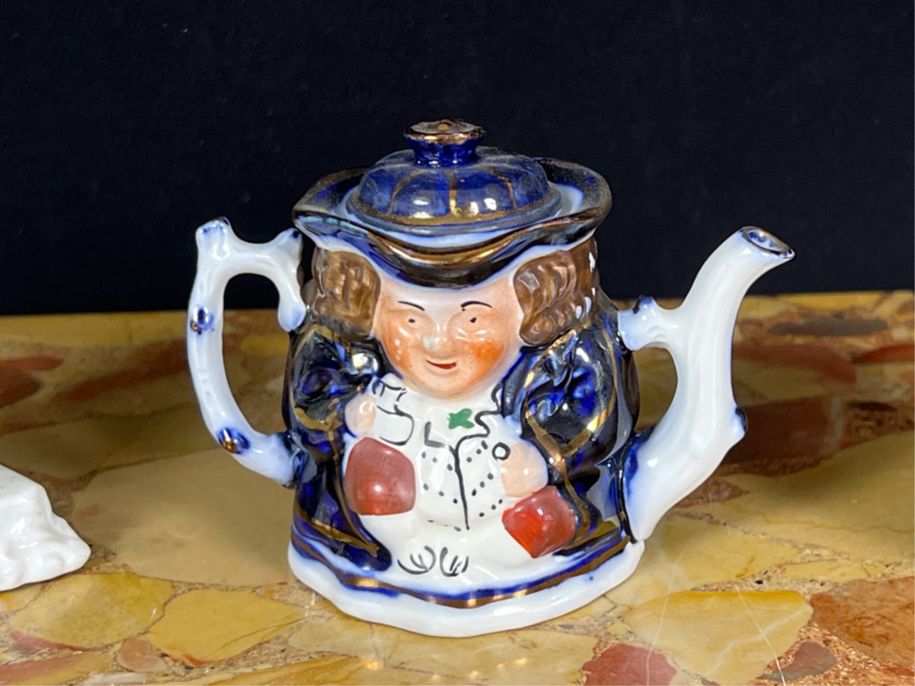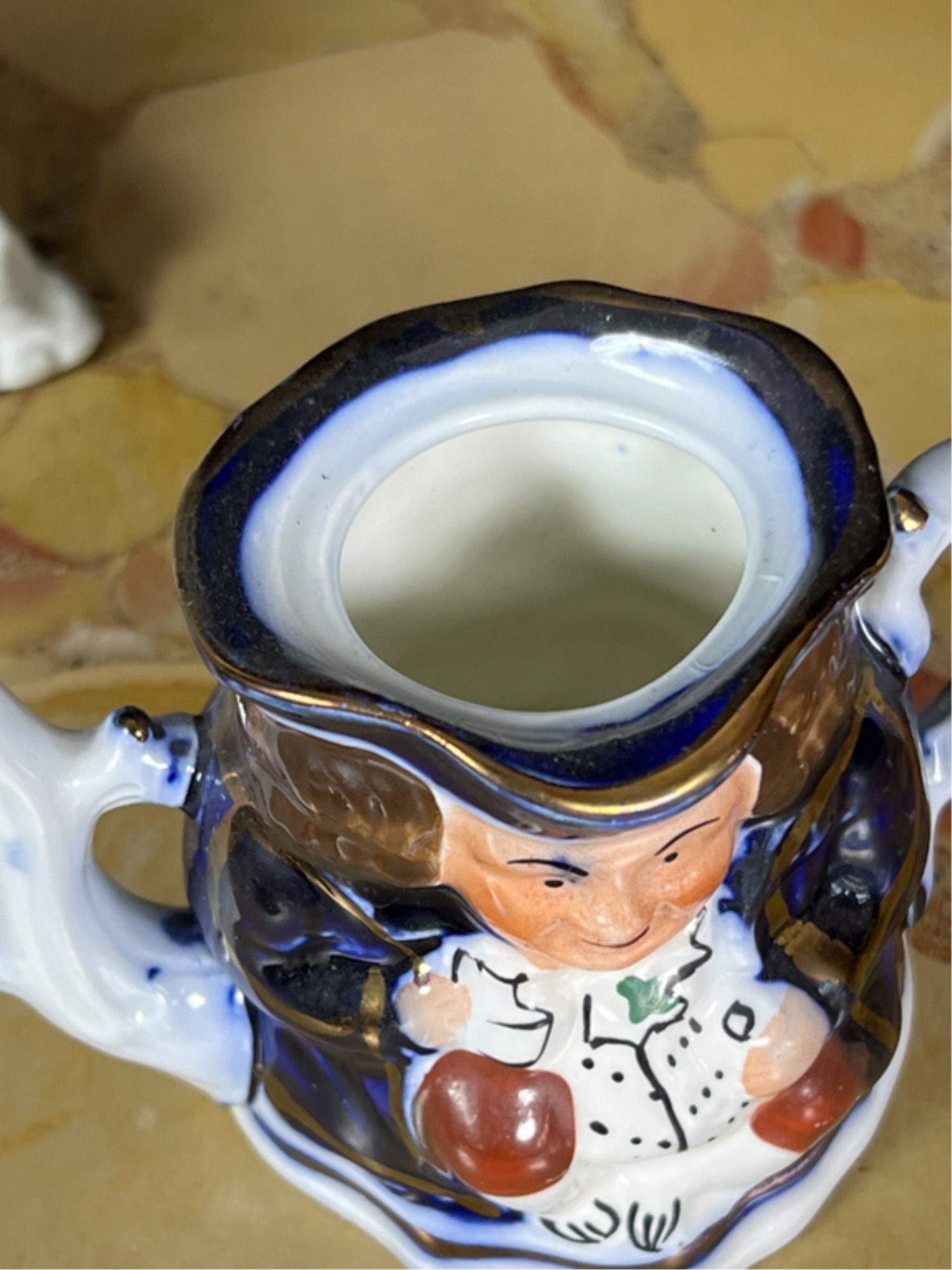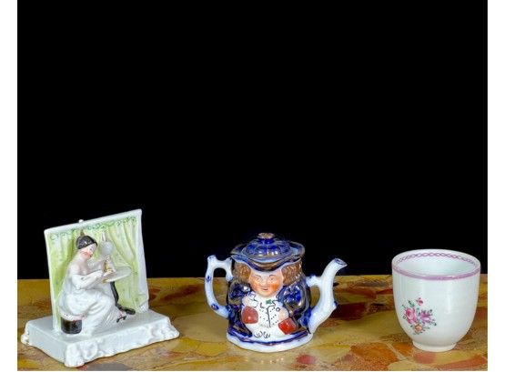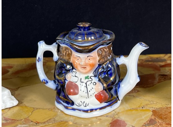 Miniature toby, "The Landlord In Love" and hand painted espresso cup.