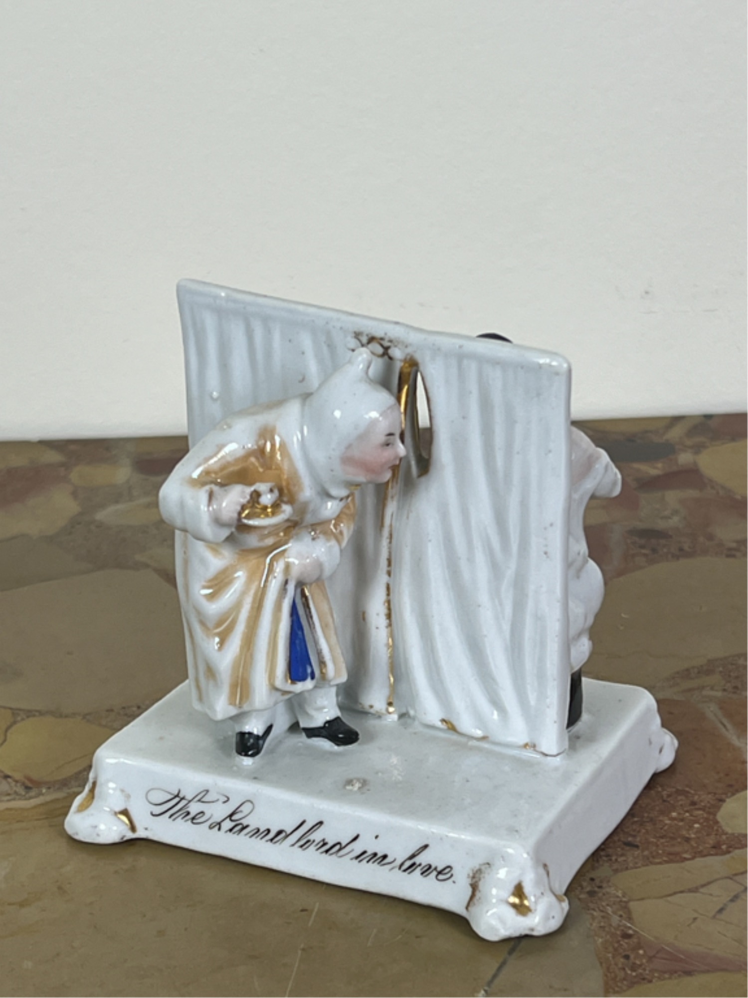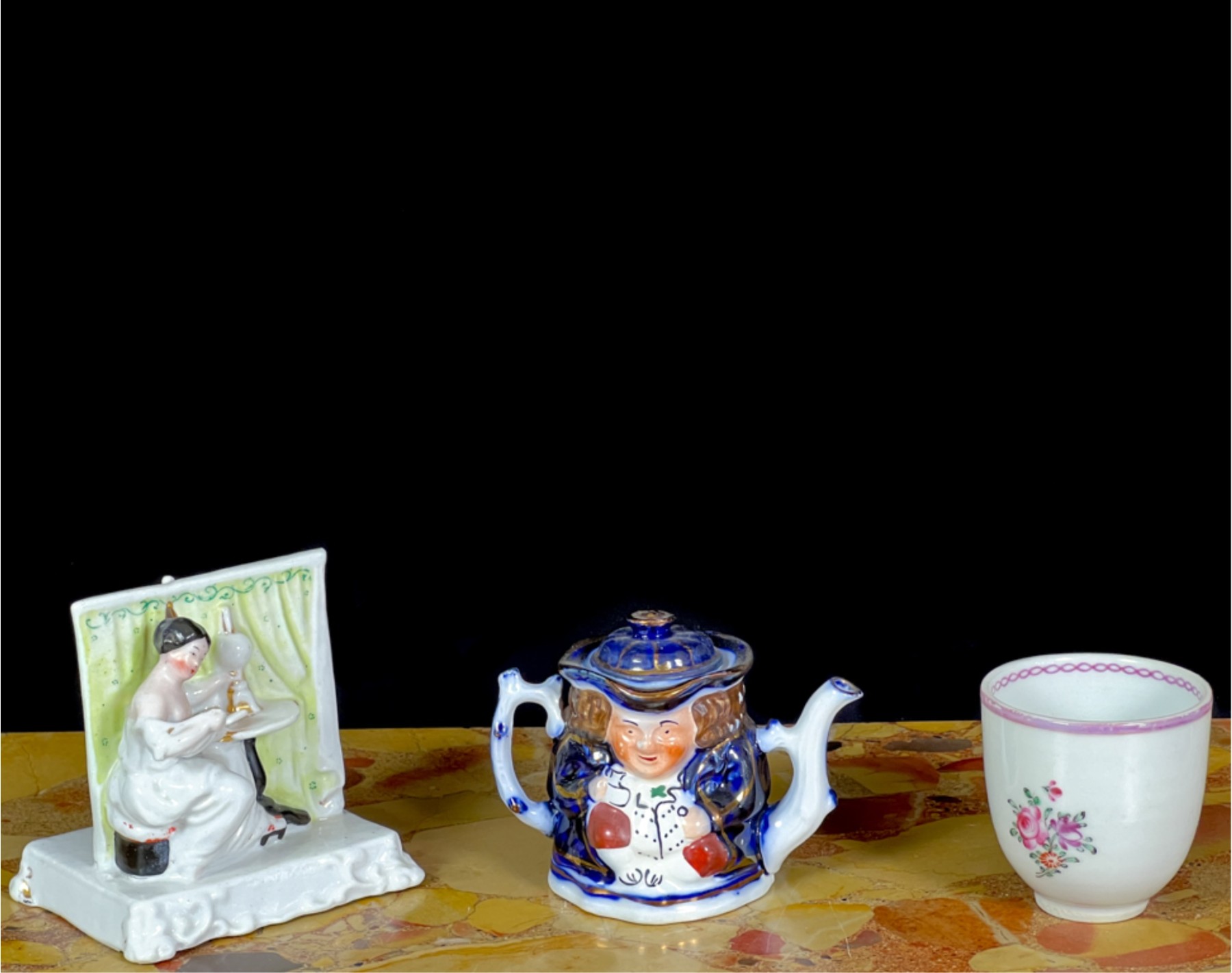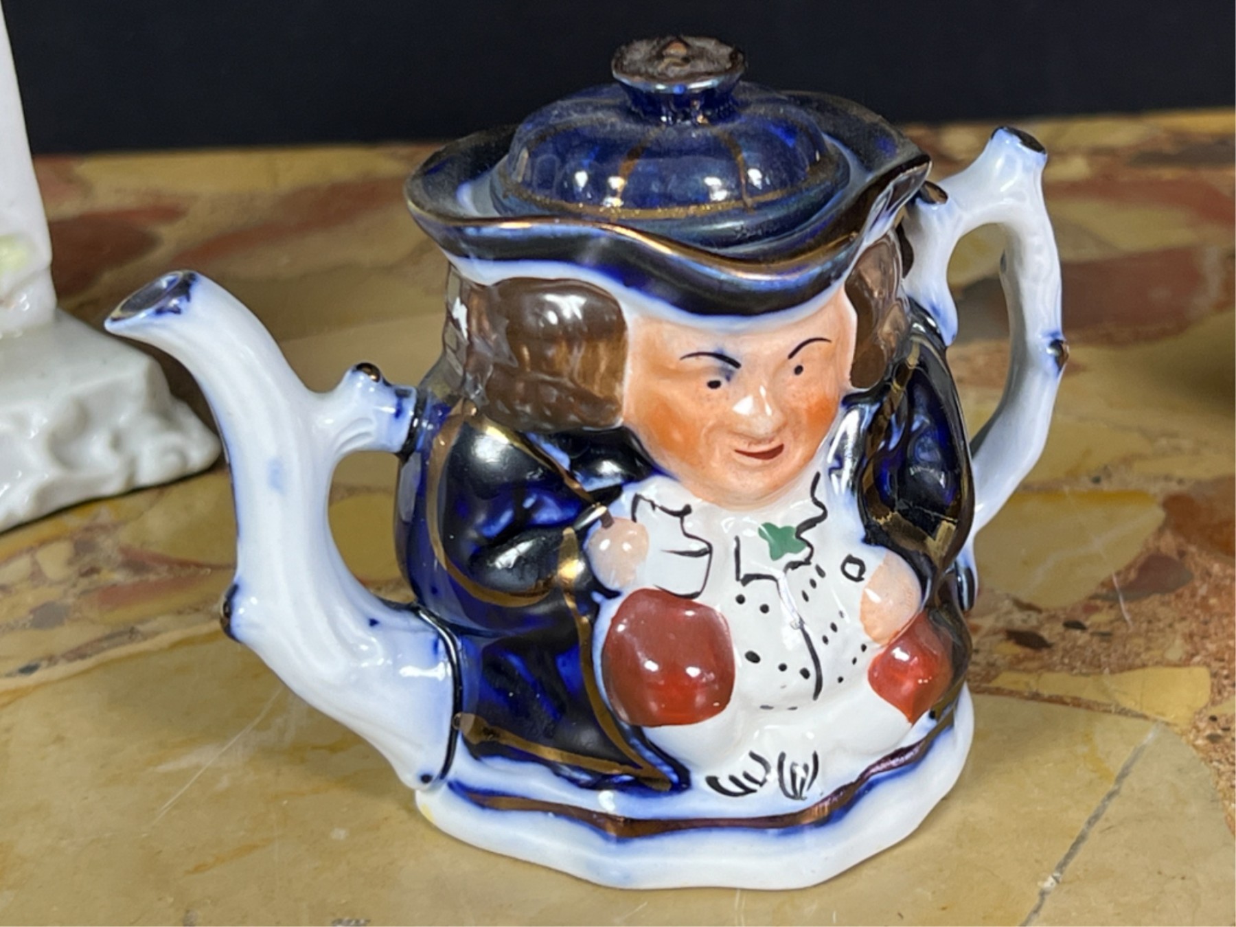 Miniature toby, "The Landlord In Love" and hand painted espresso cup.