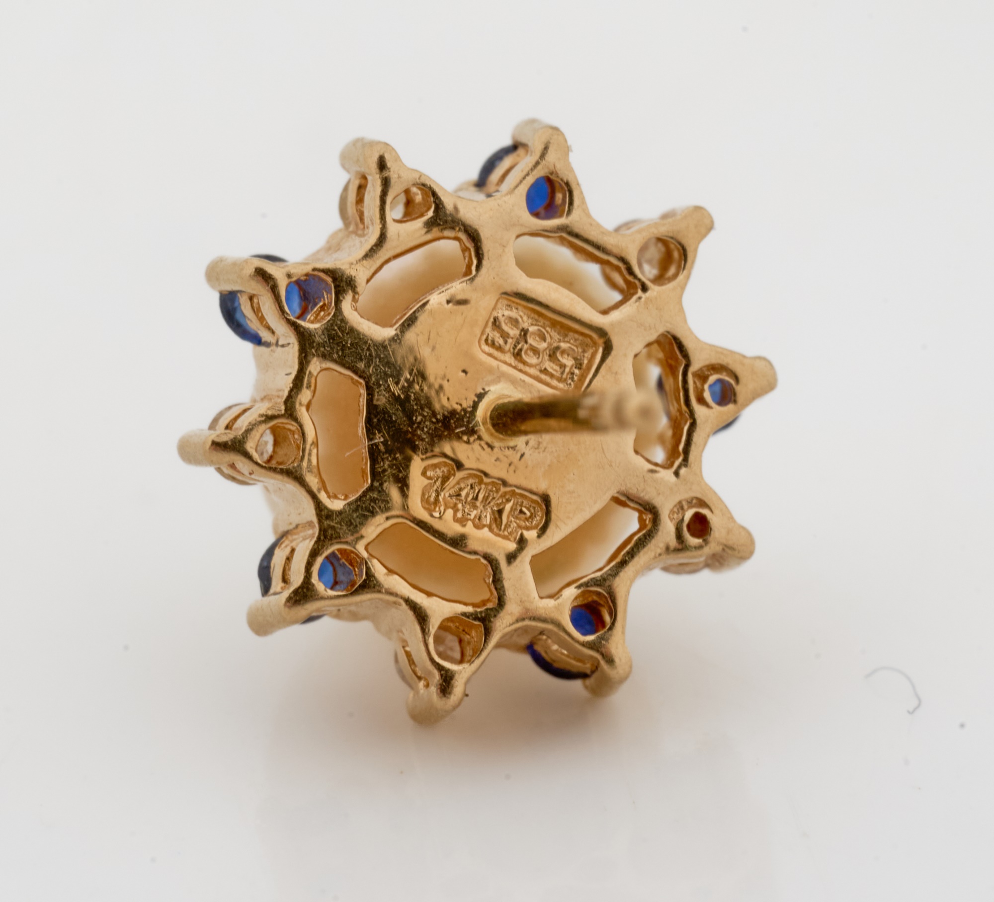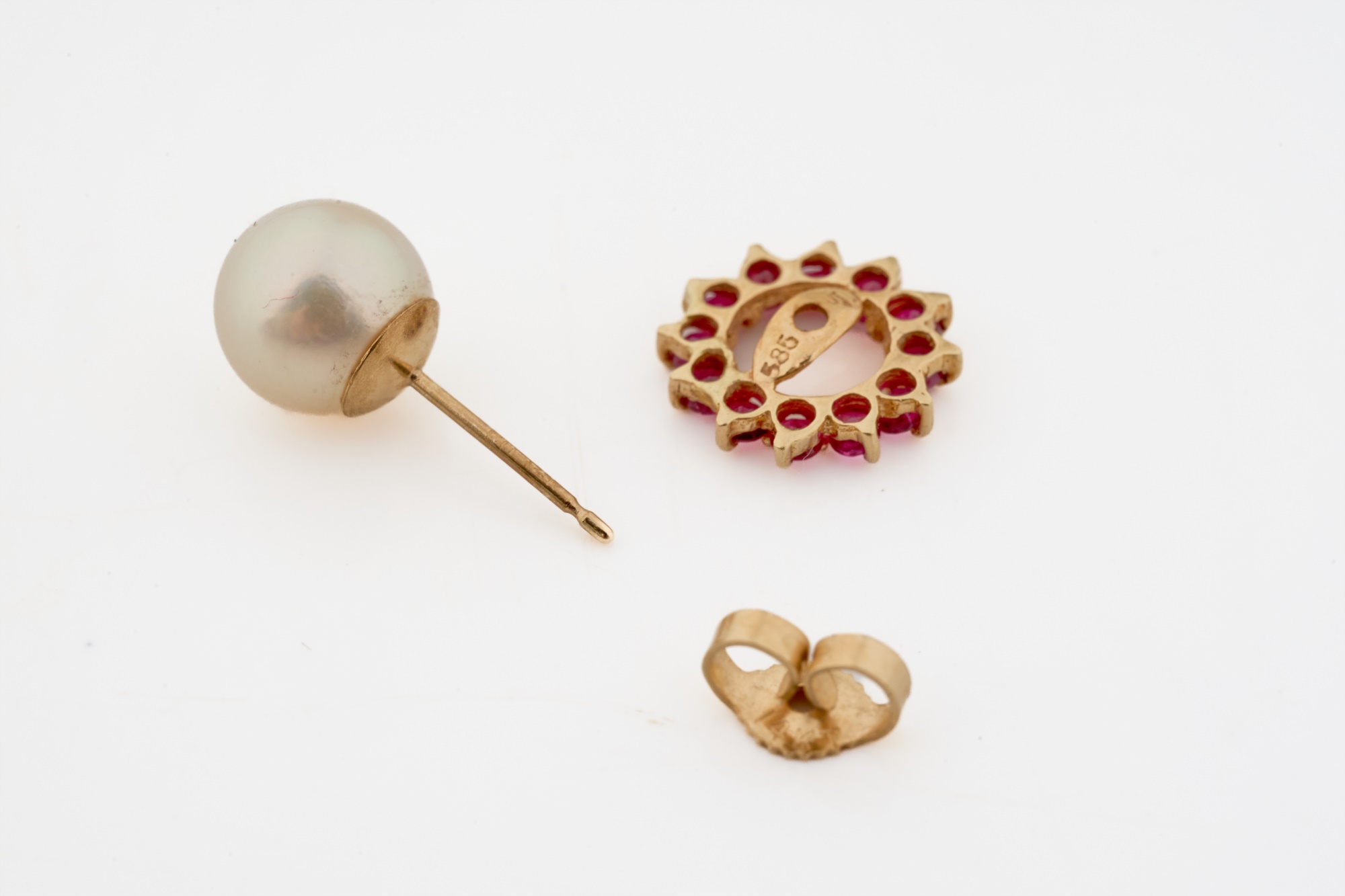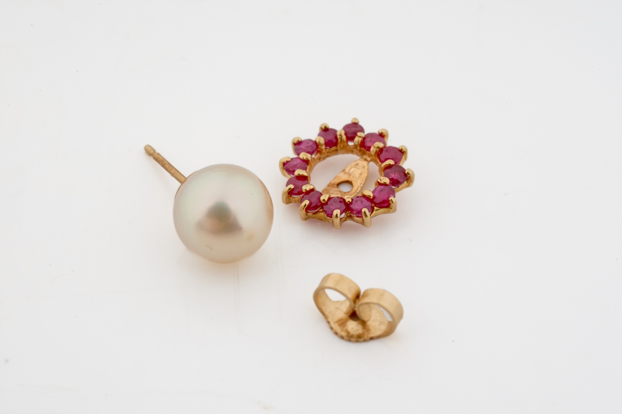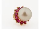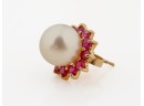Set with melee diamonds, sapphires and rubies. Pearls 6-7mm. 5.3 dwt (gross weight) Condition: Good