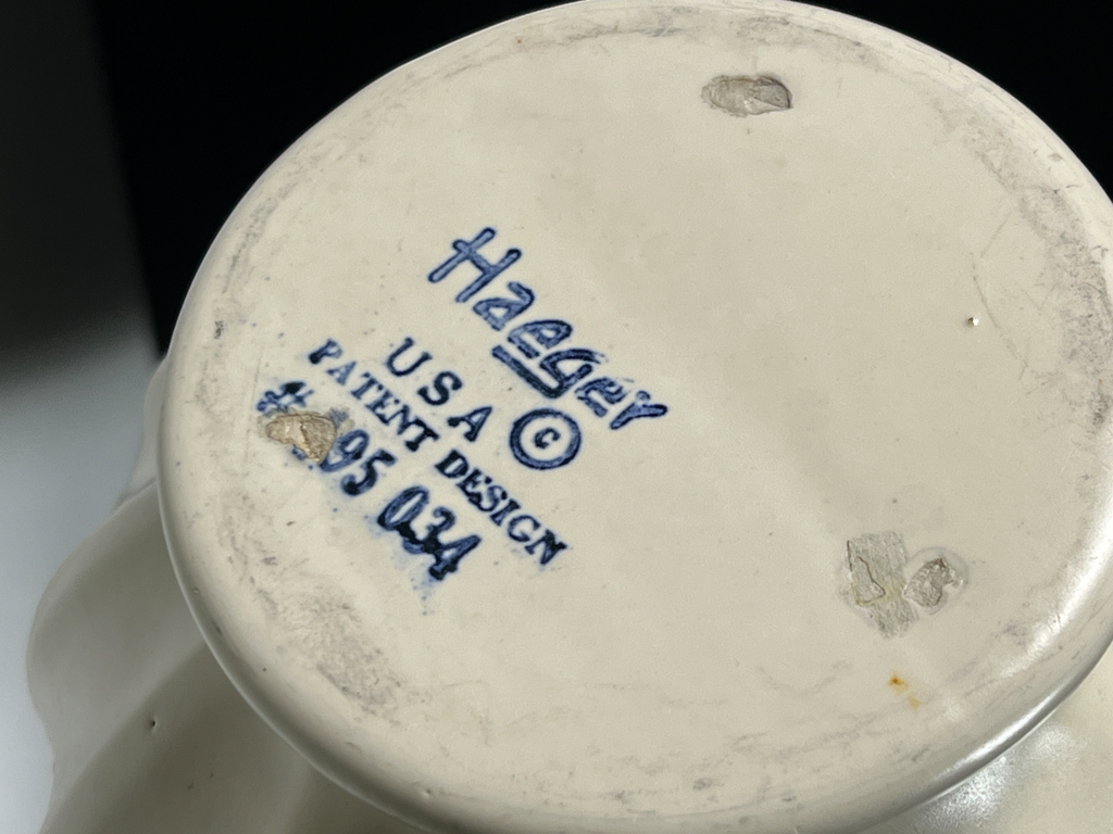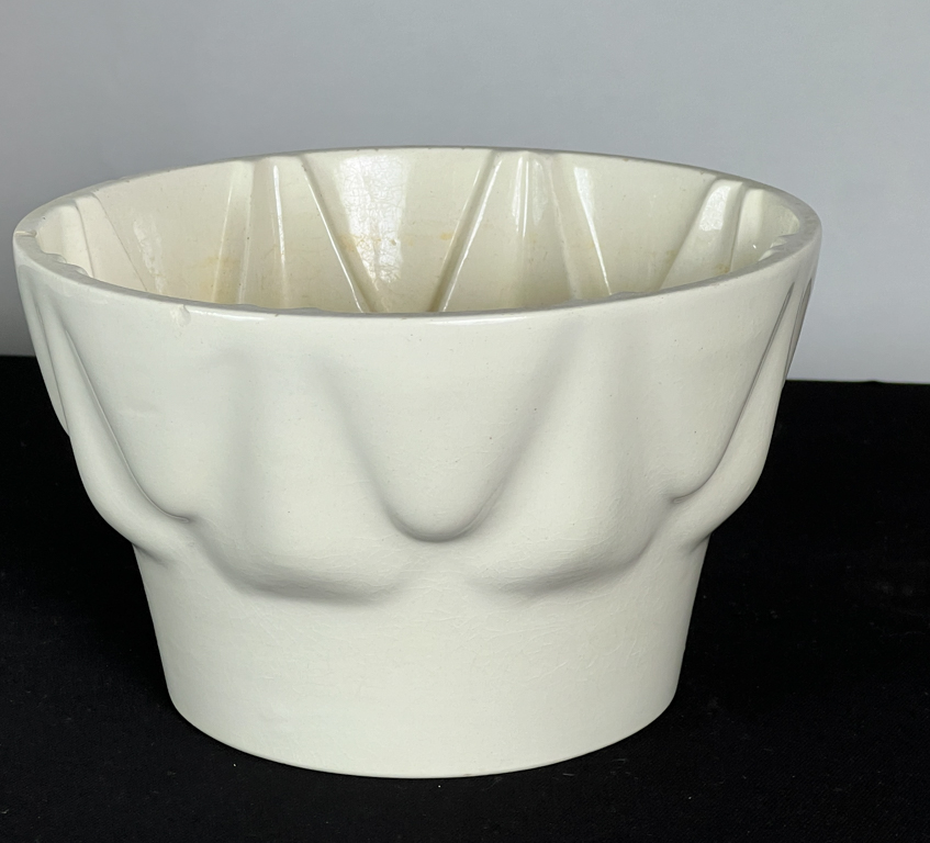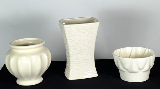 German food mold with Haeger and Mccoy vases. Tallest measures 9 3/8 inches.