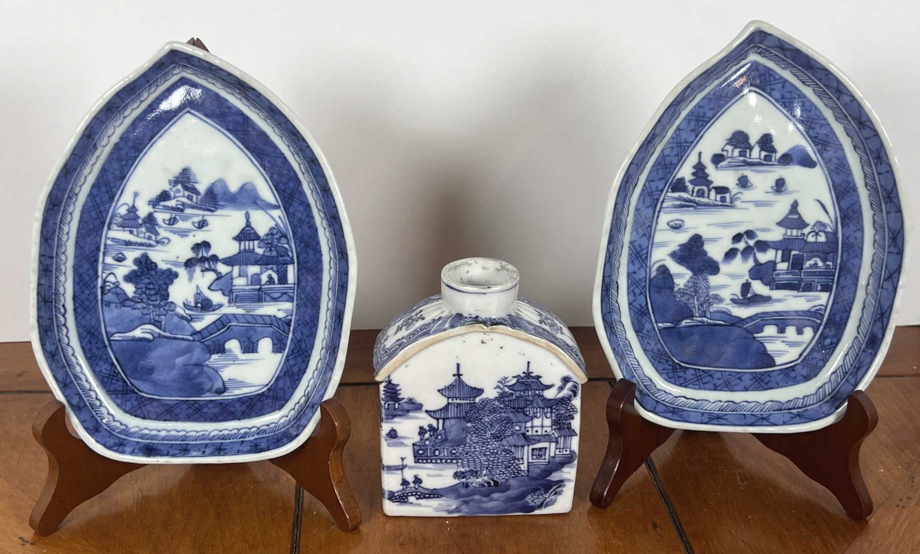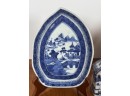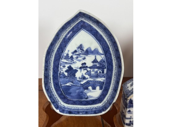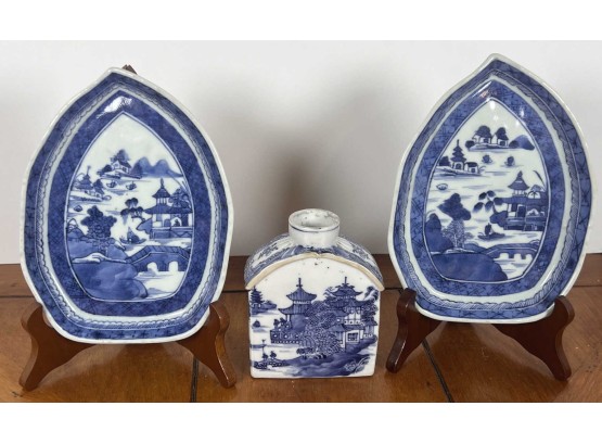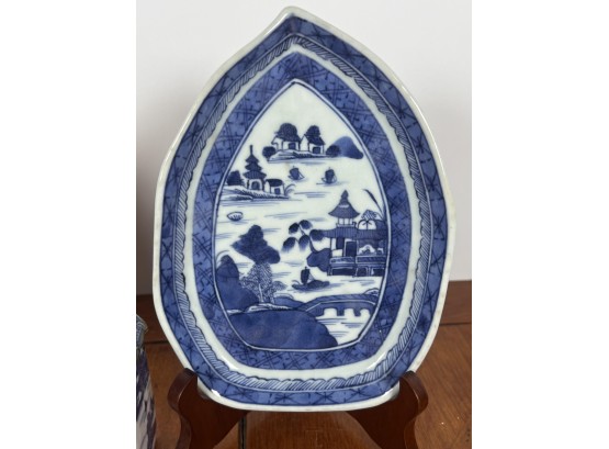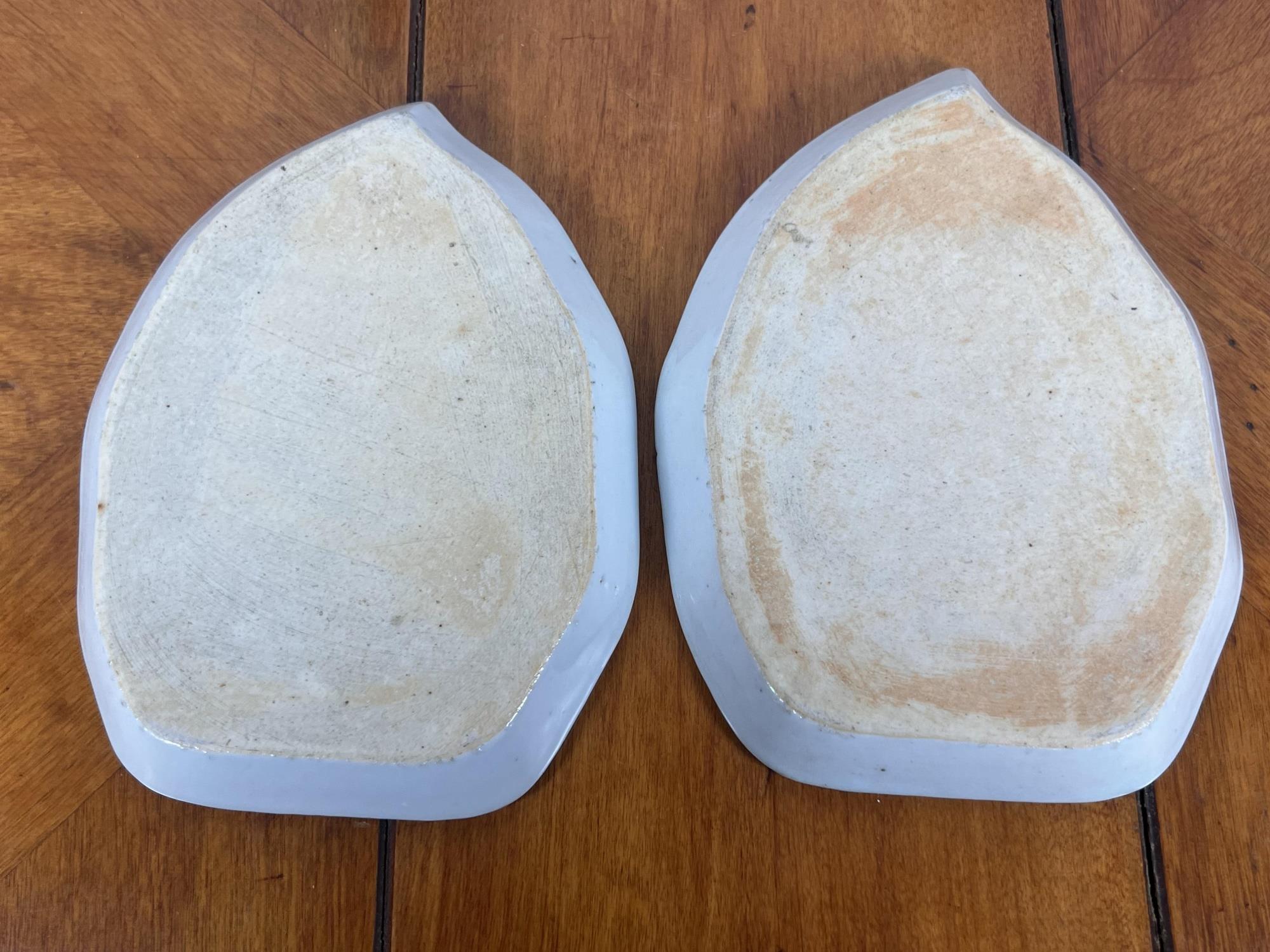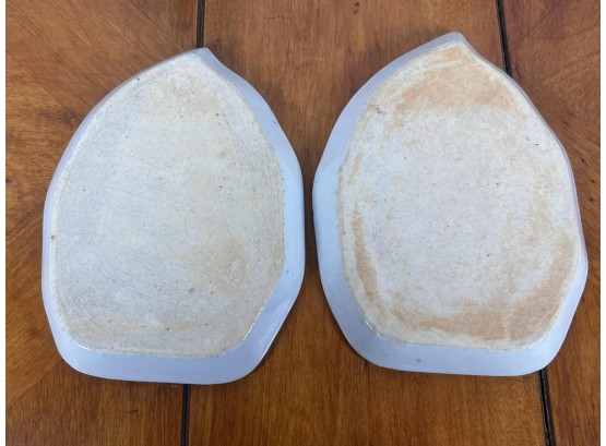 (2) leaf form plates and flask. Plates 7 1/4" x 5 1/4" Condition: Good Temp No 6455