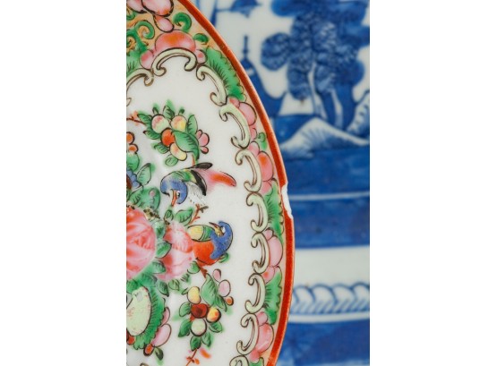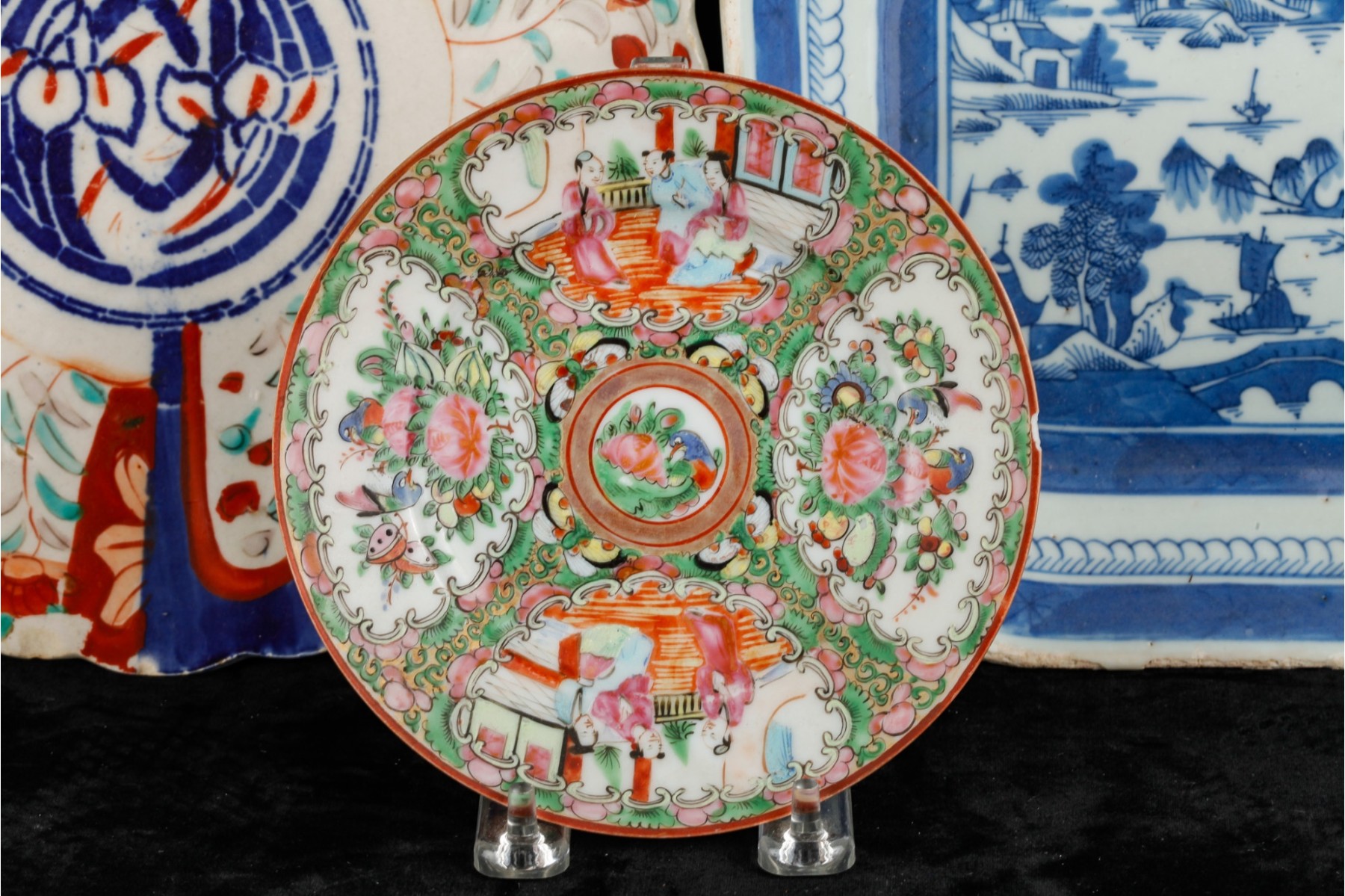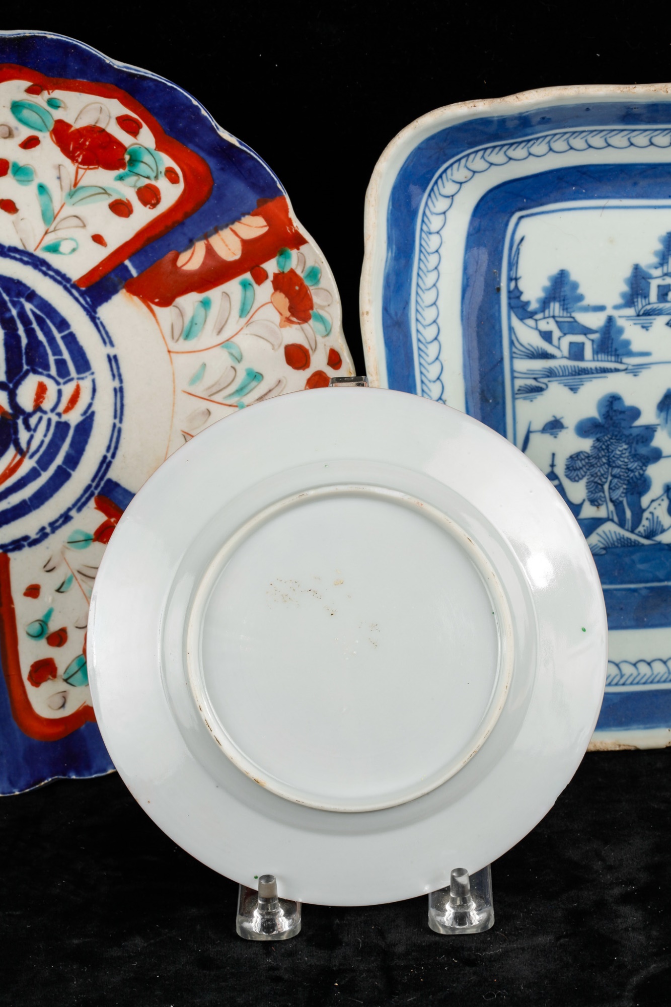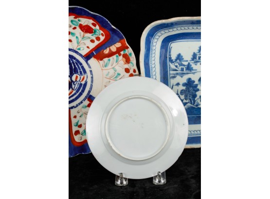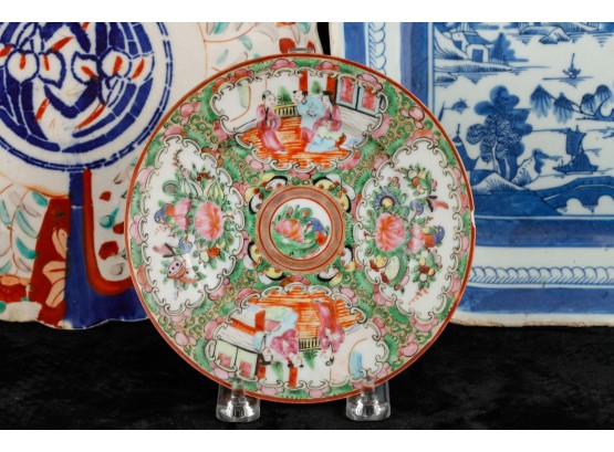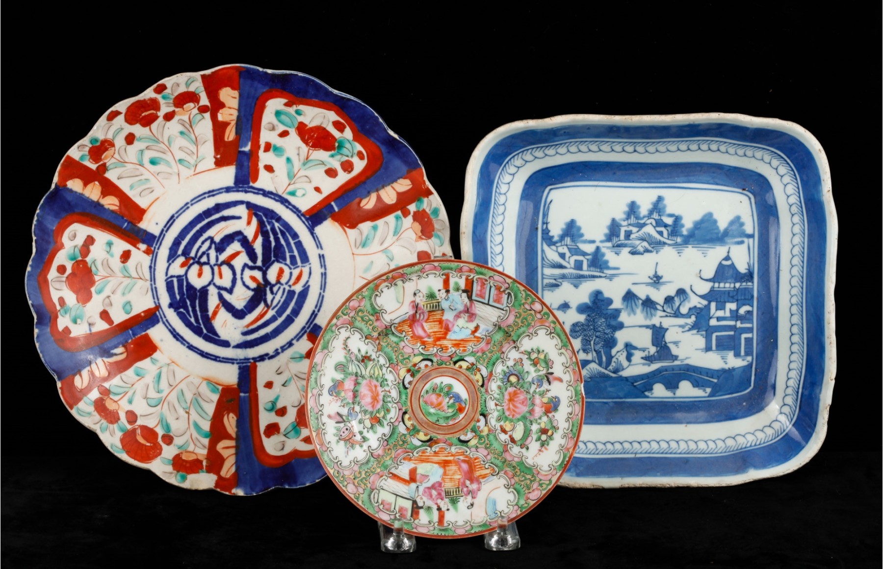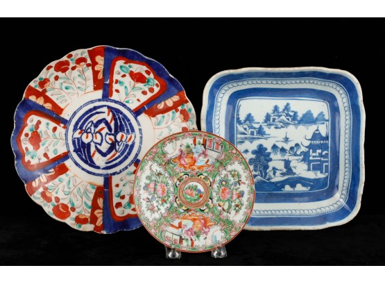Rose medallion 6" plate, square canton bowl 8 1/2" and Imari dish 9 1/2"