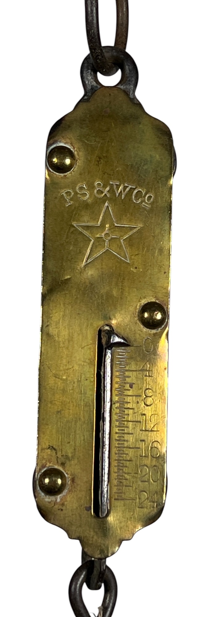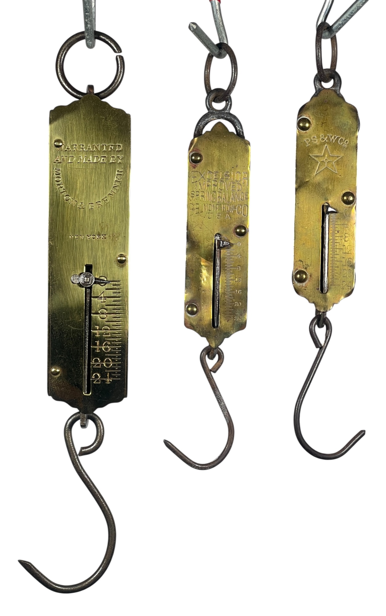 Morton & Bremmer (24) pound, Excelsior Belmont Hardware Co. (25) pound, and PS & W Co. (24) pound. 11 x 11/2 inches. Condition: Good. Temp No 8820