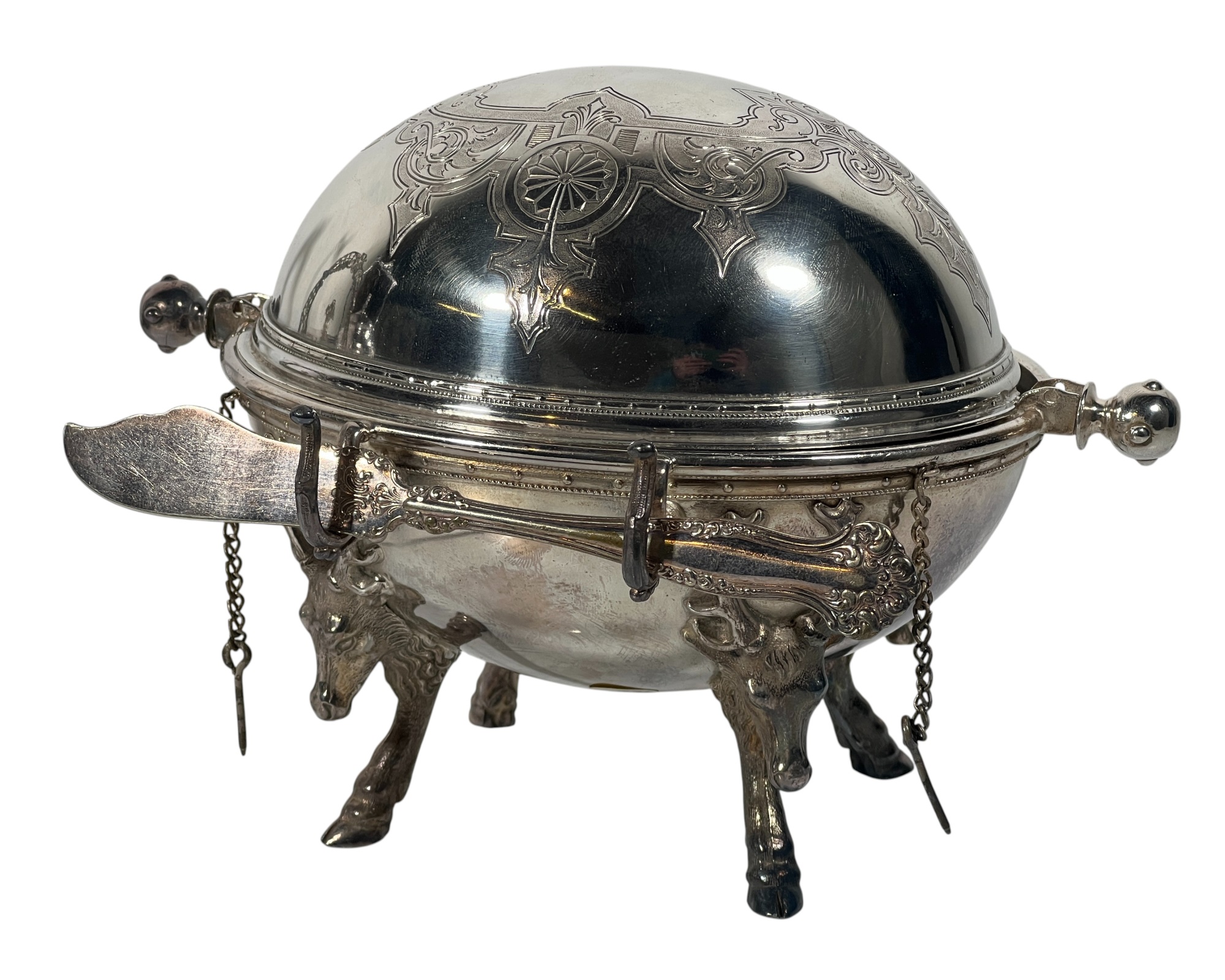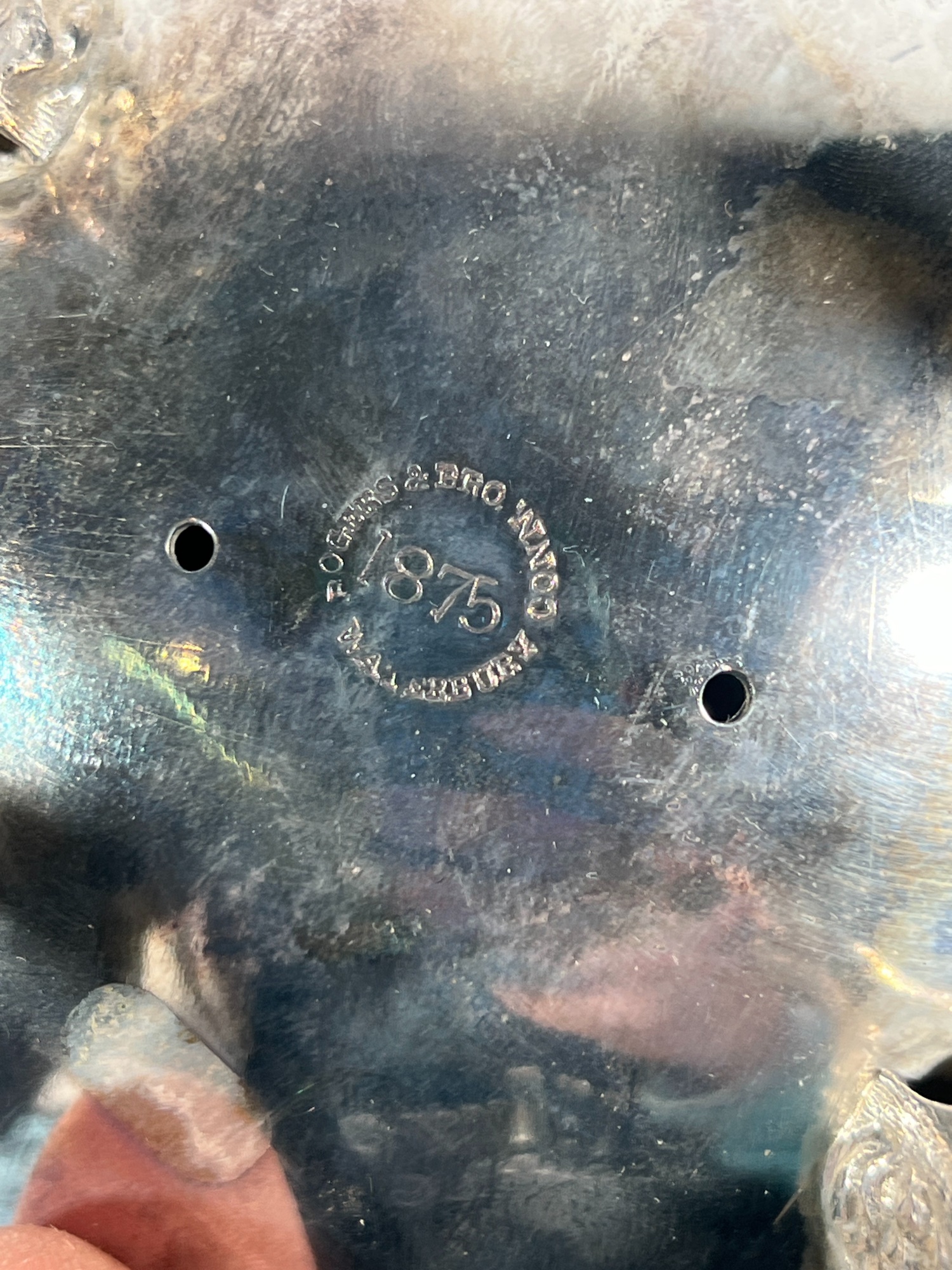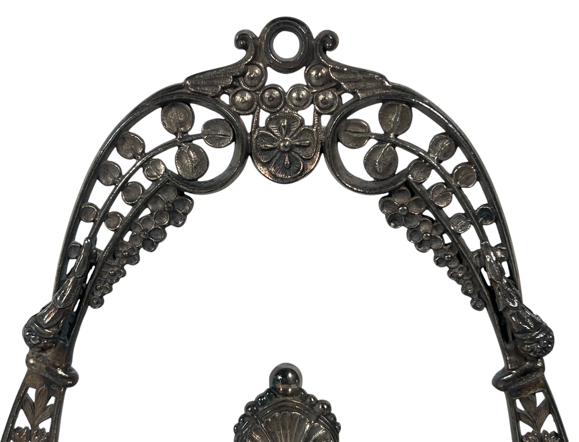 (1) with nice figural stage head feet, floral engravings/motifs. 11 x 6 inches. Condition: Spreaders may not match. Temp No 8765