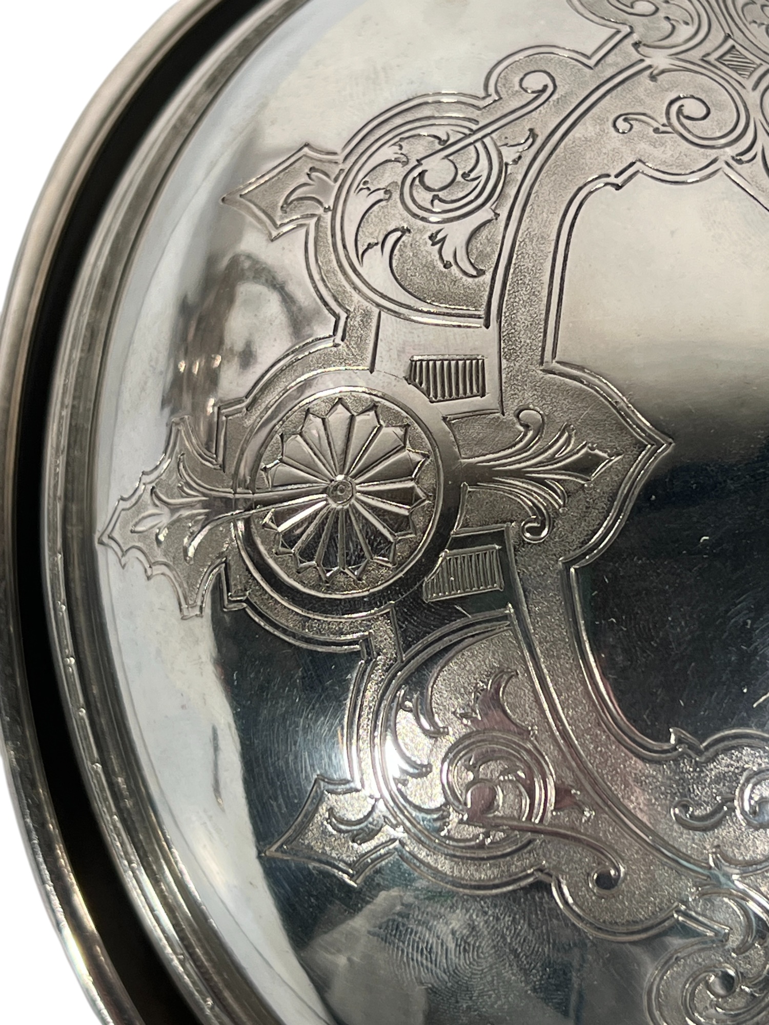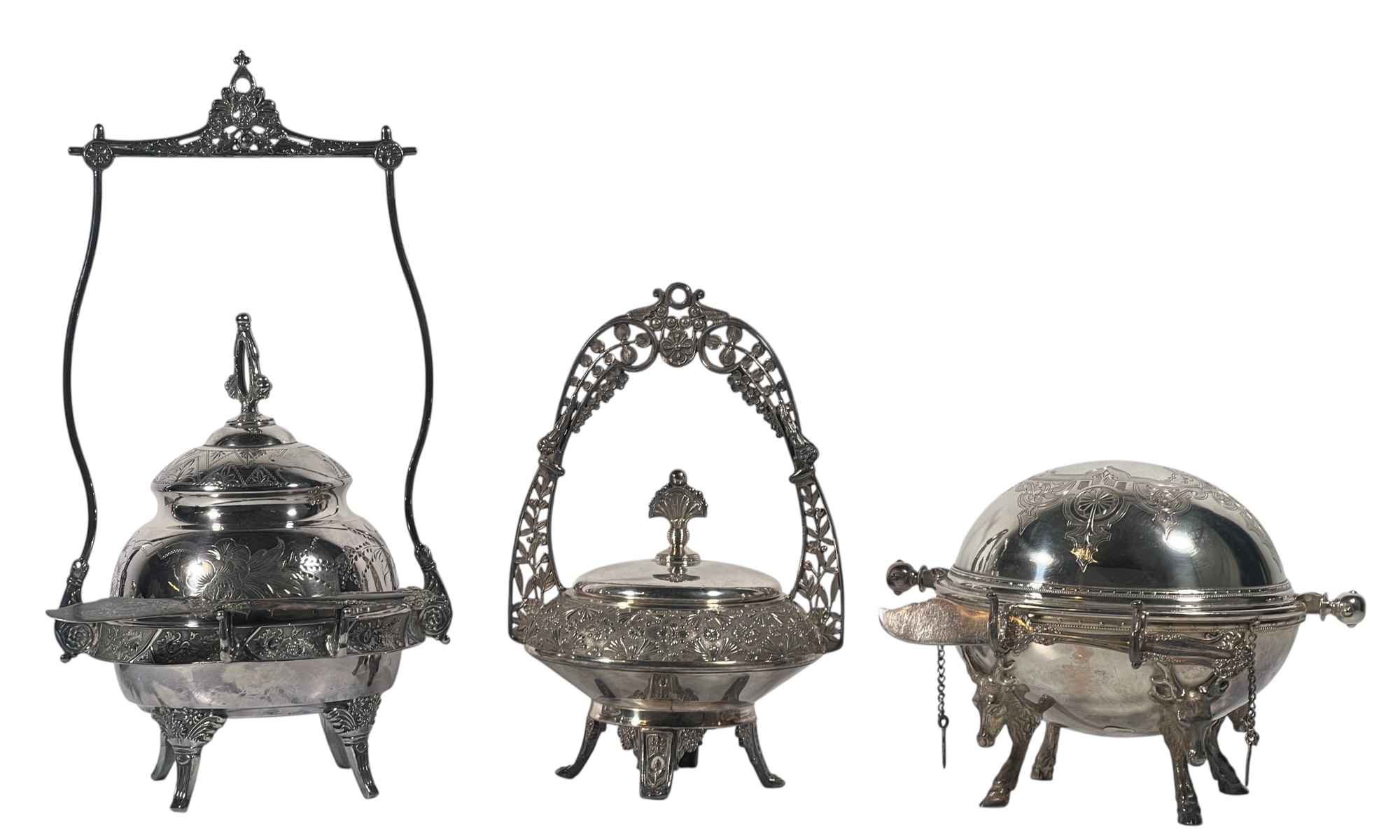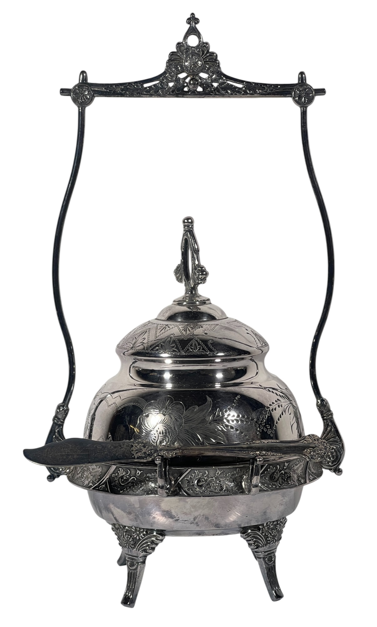 (1) with nice figural stage head feet, floral engravings/motifs. 11 x 6 inches. Condition: Spreaders may not match. Temp No 8765