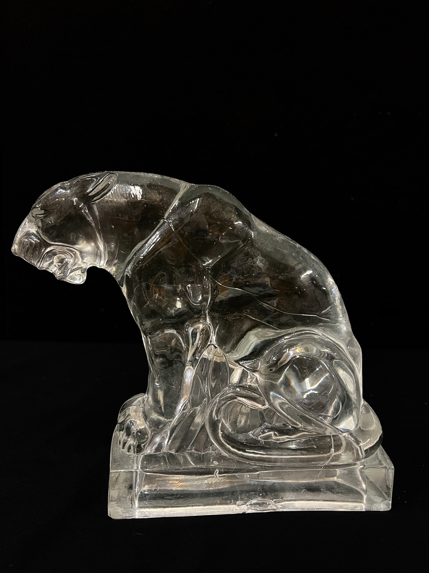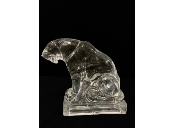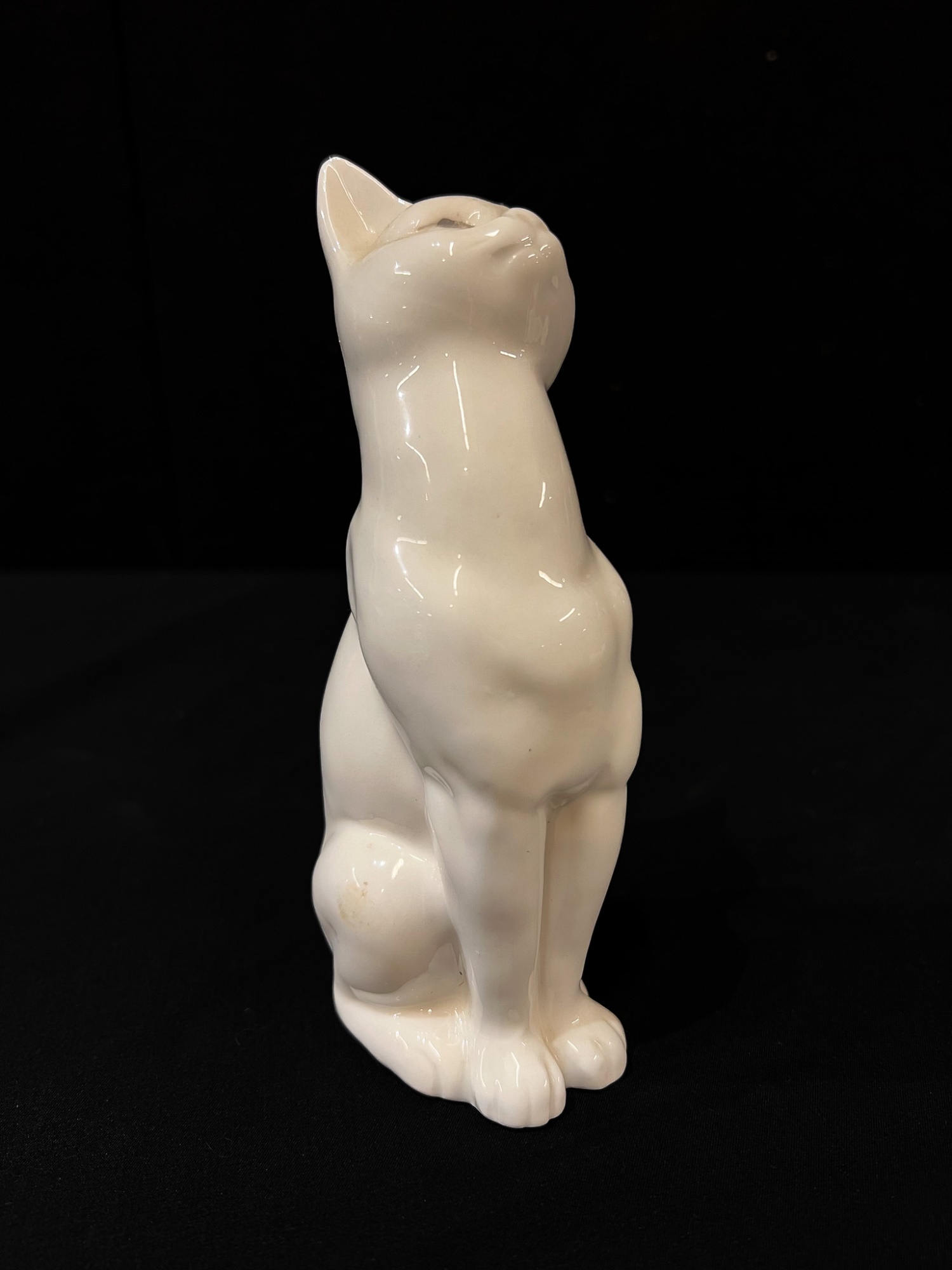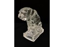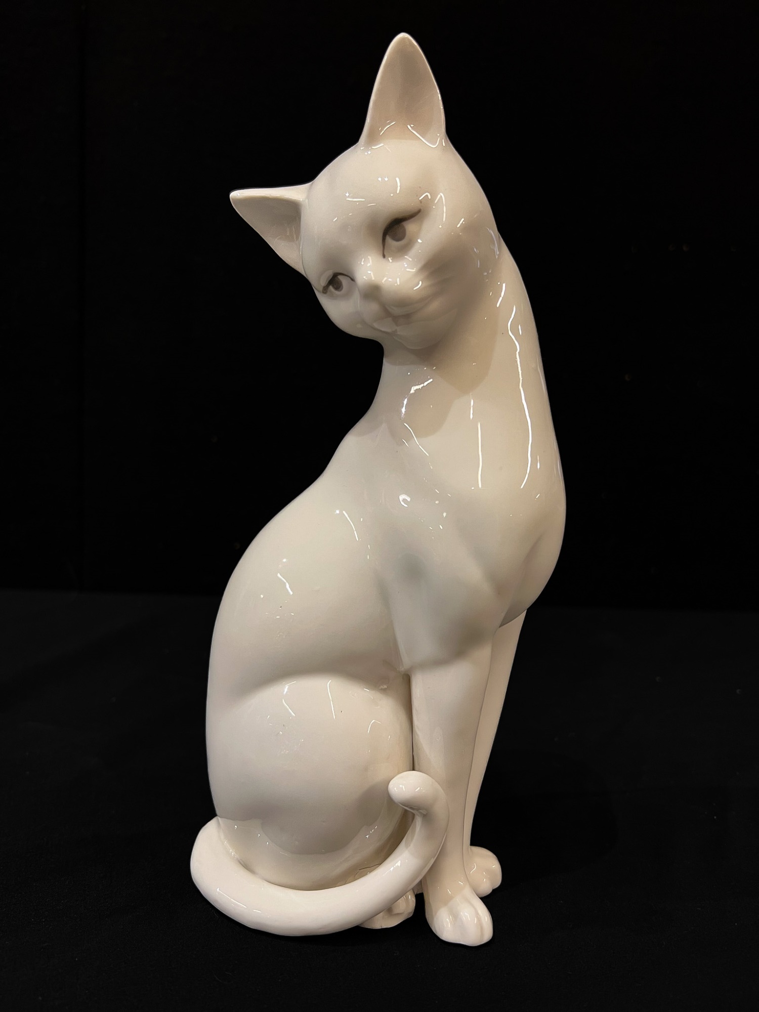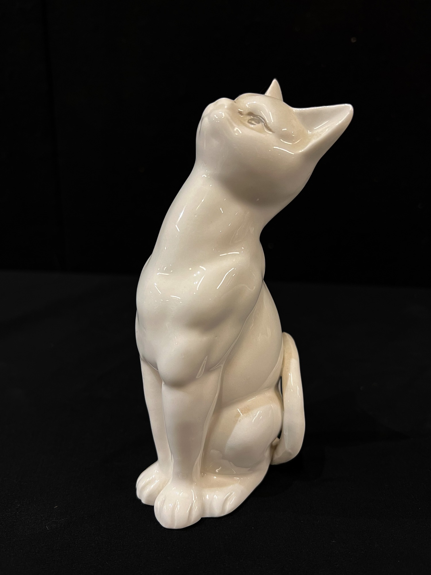 (2) white ceramic cats and a glass lion. Tallest cat 10"