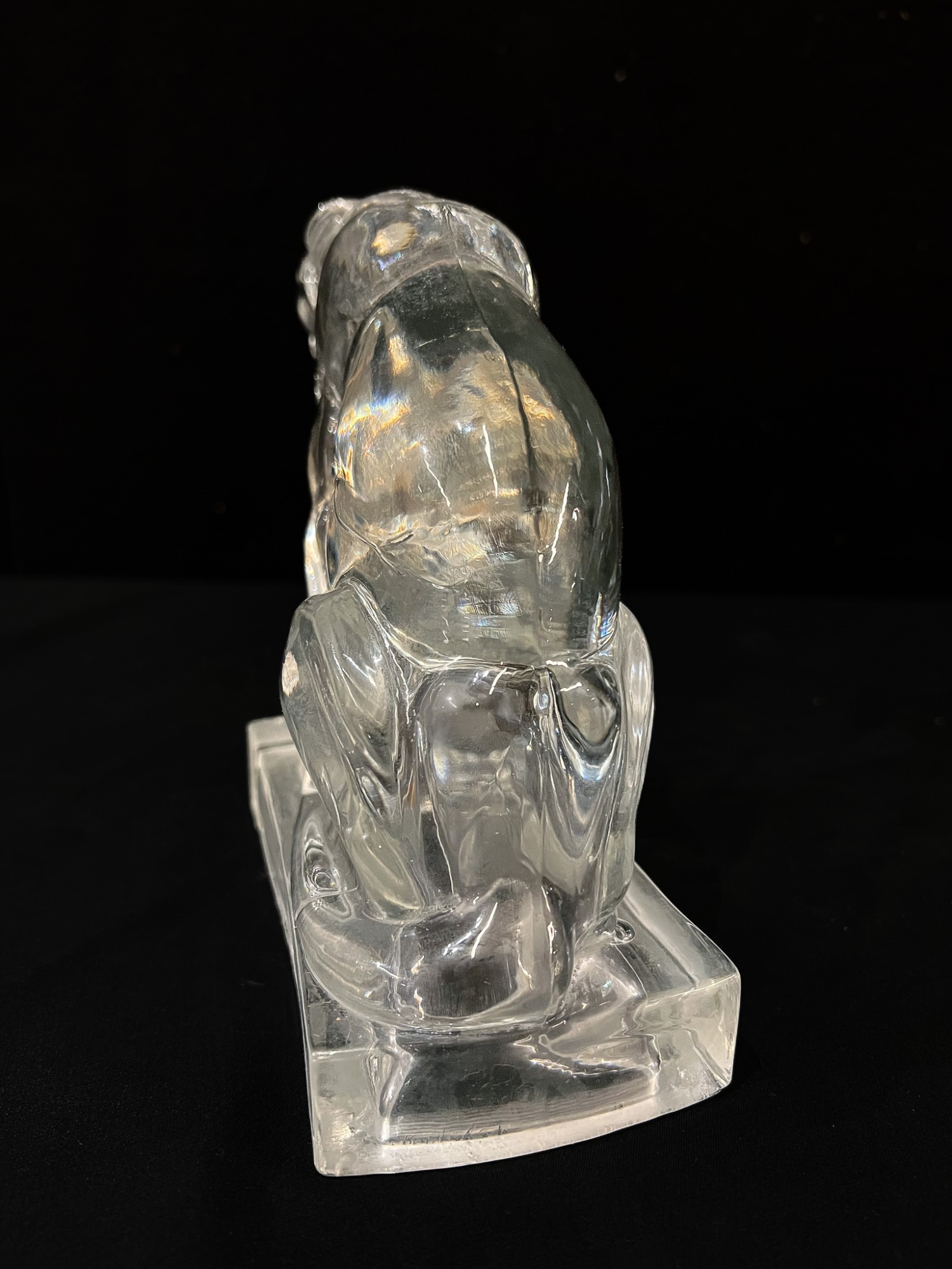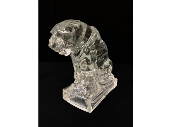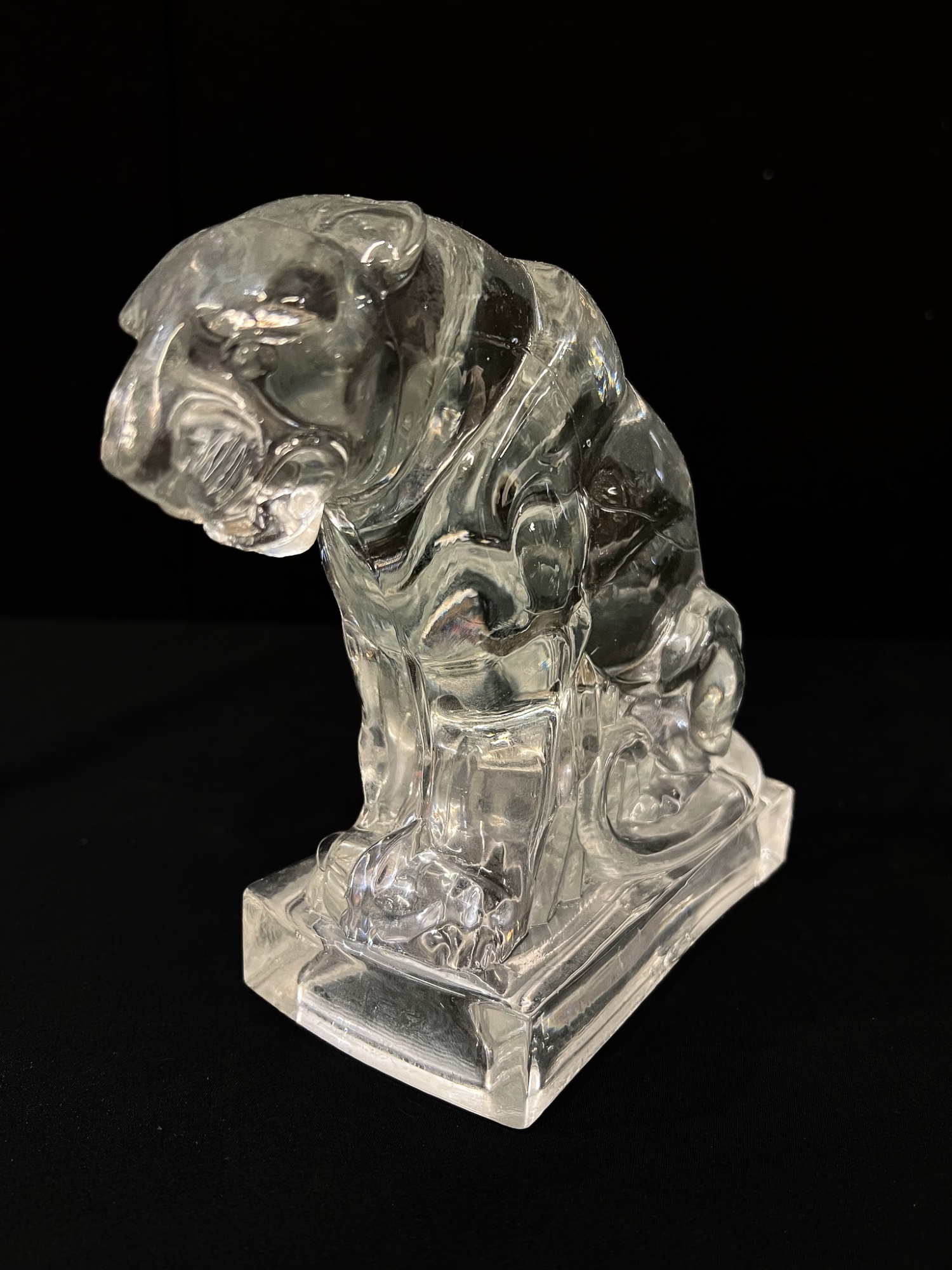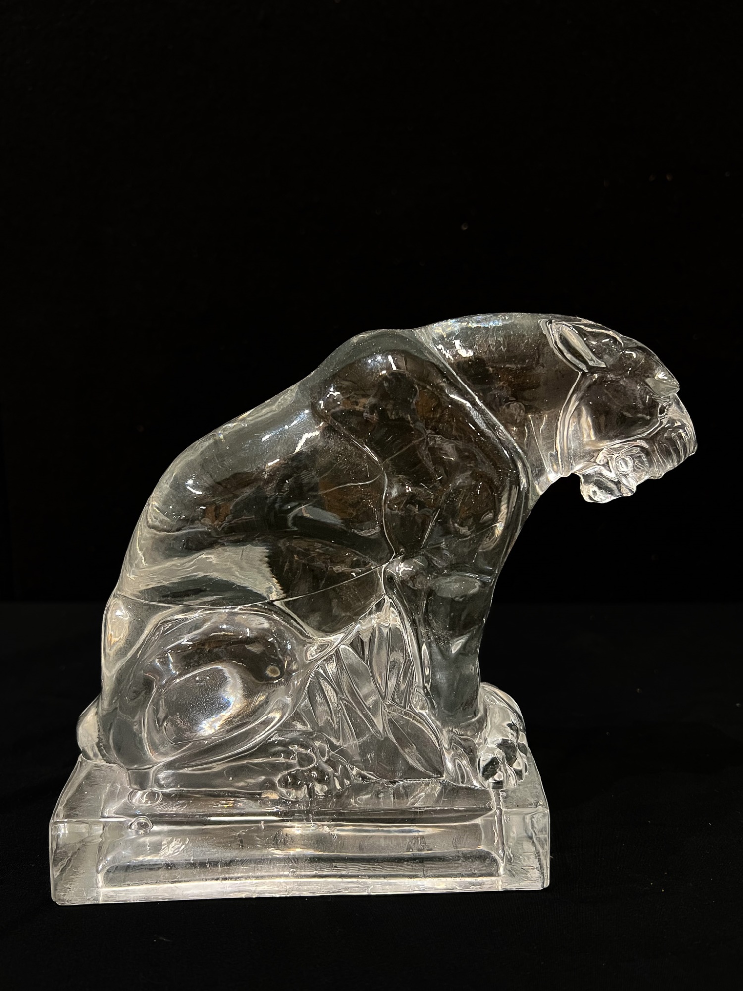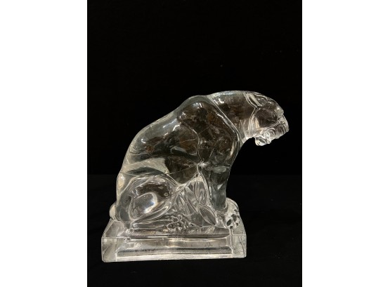 (2) white ceramic cats and a glass lion. Tallest cat 10"