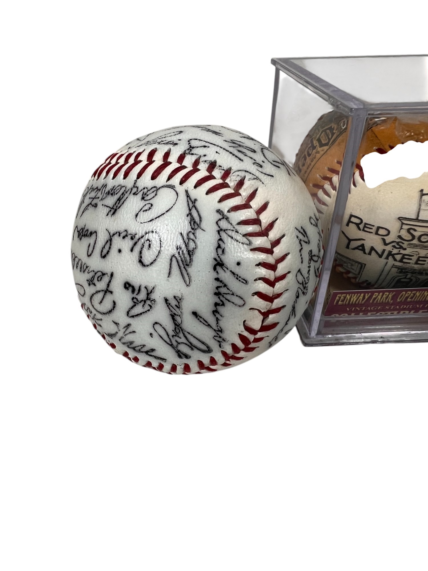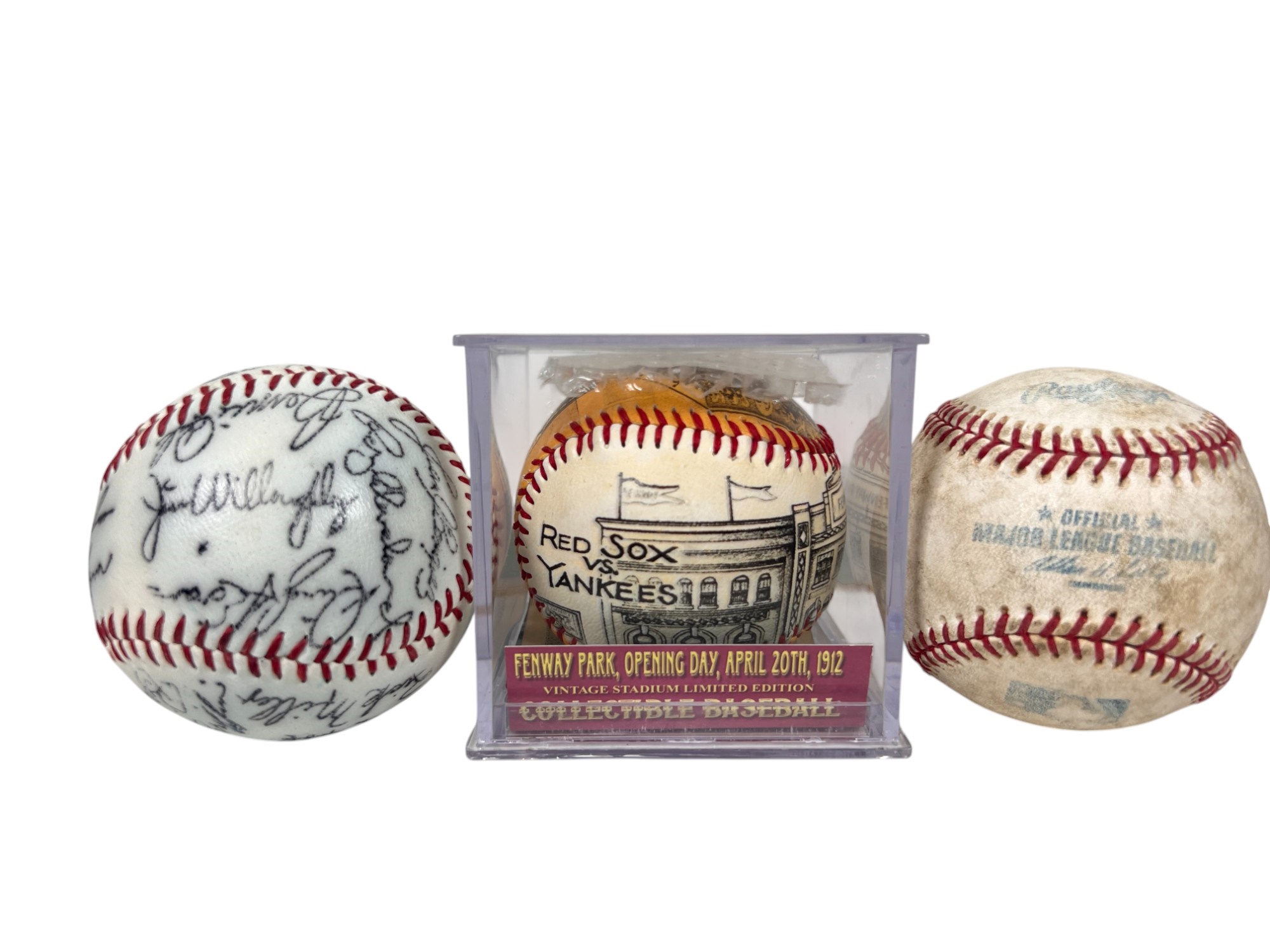 Rawlings Official Major League Baseball, facsimile signed 1960's Red Sox ball and a commemorative 1912 Fenway Park Opening day anniversary ball Condition: Wear