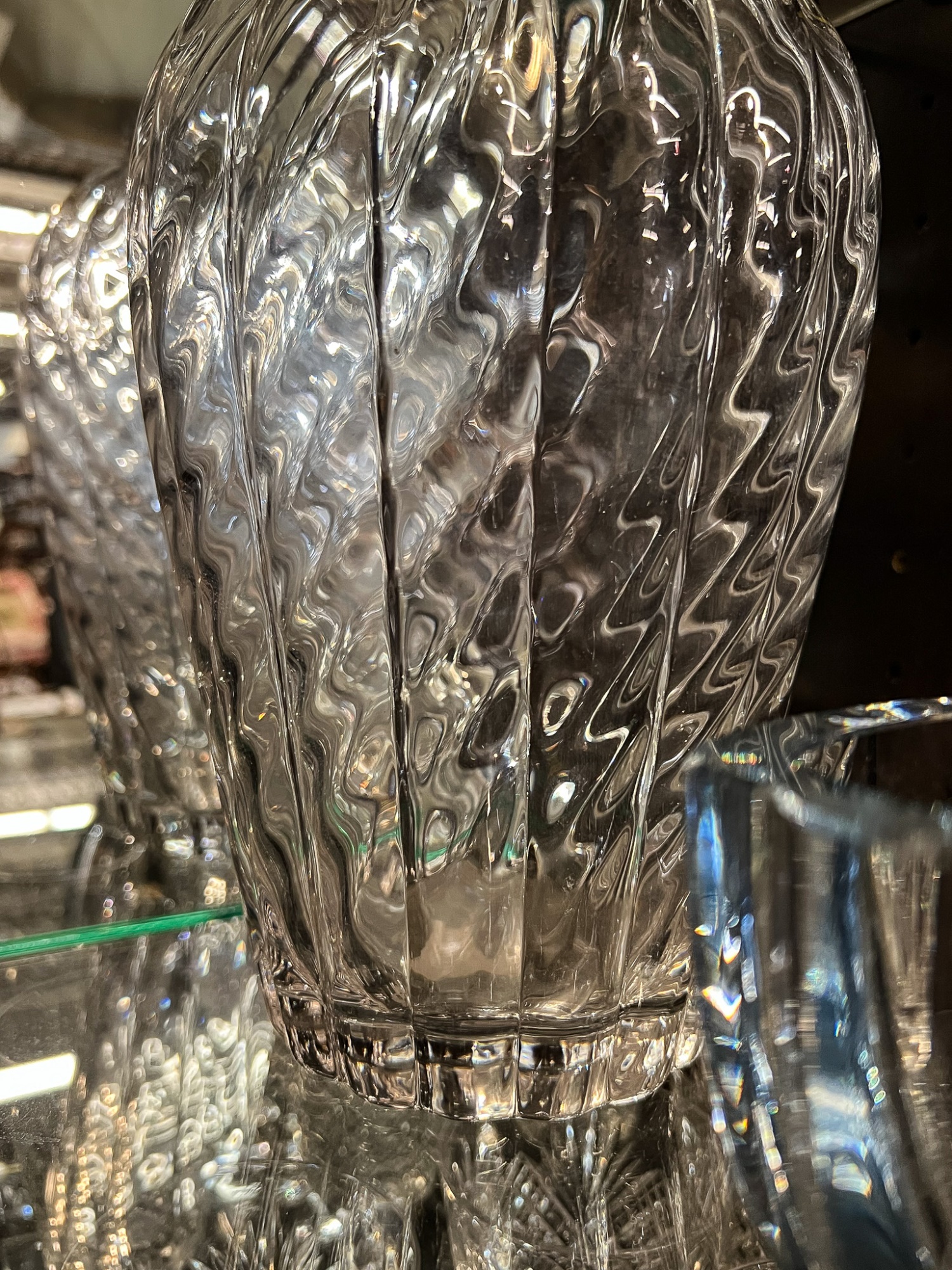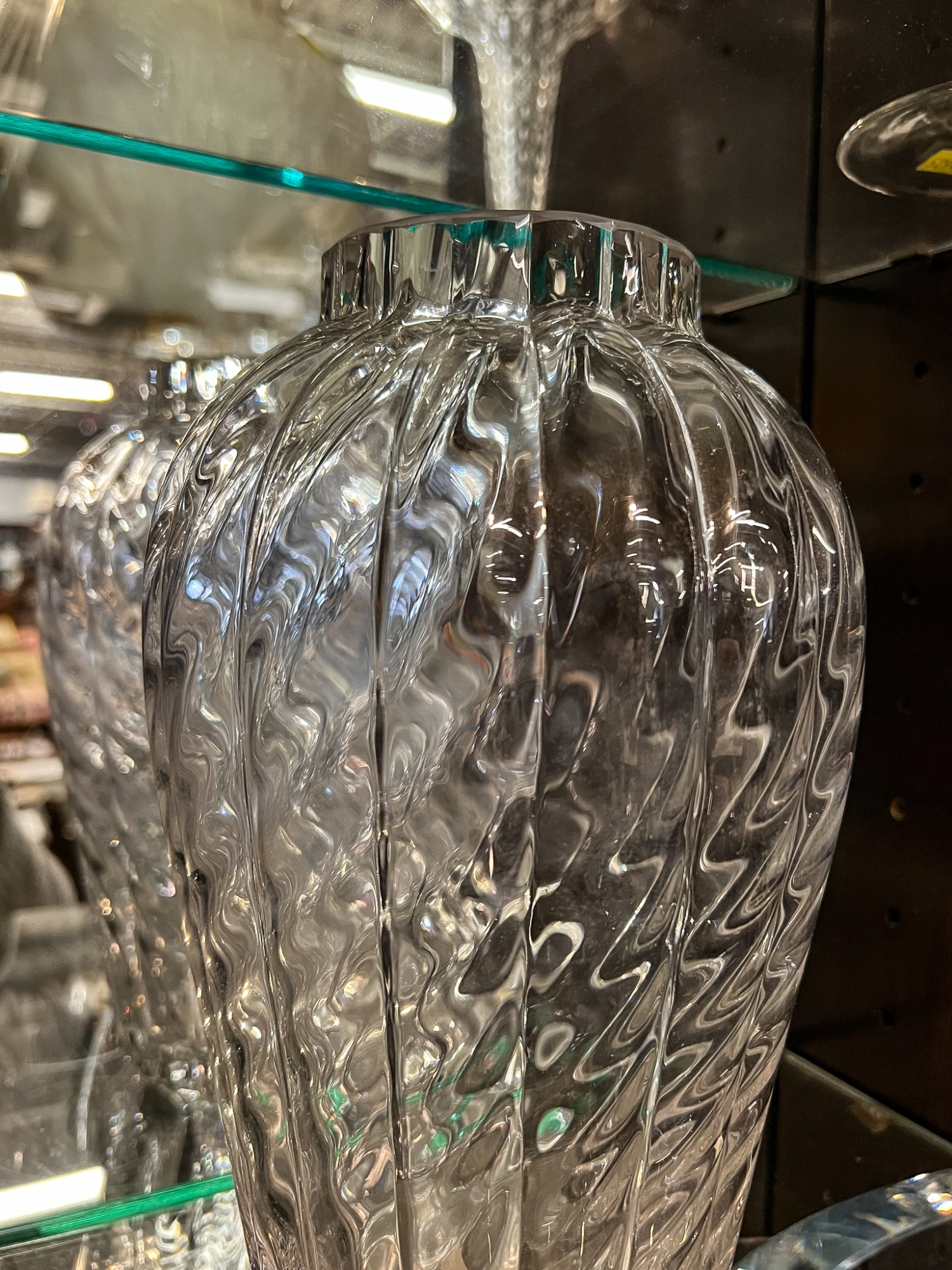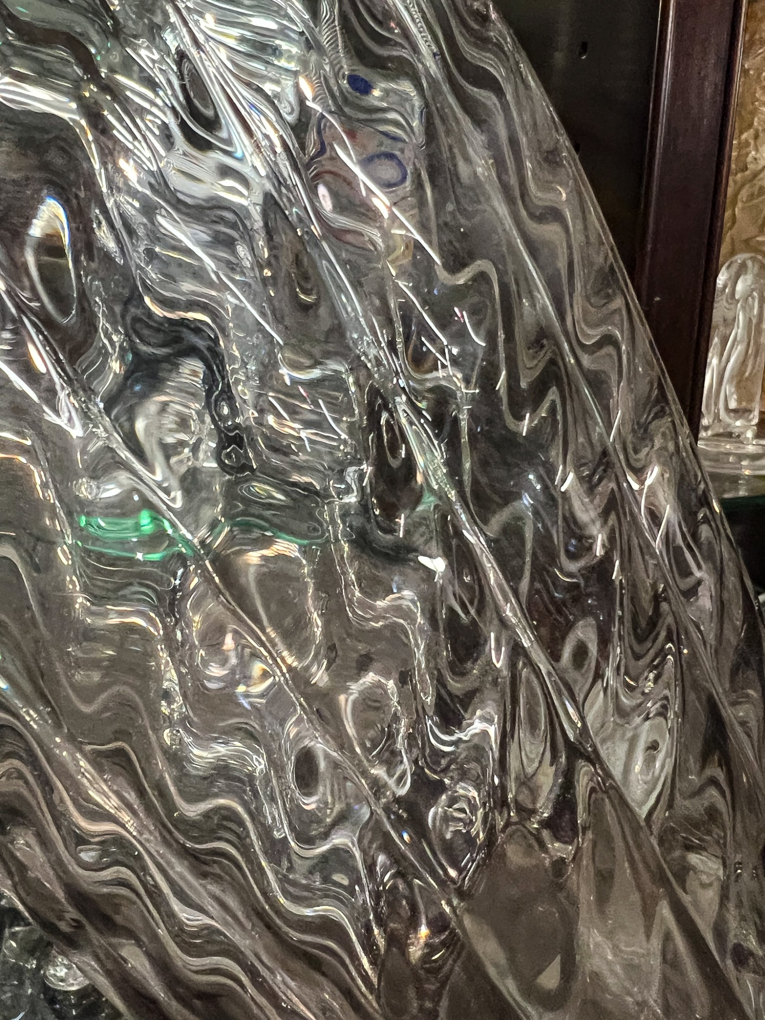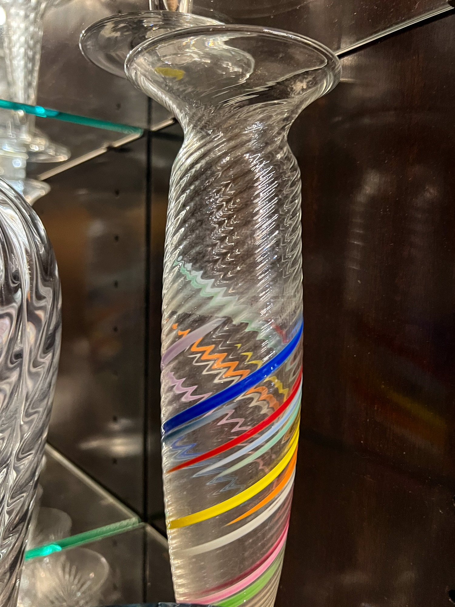Including fine quality heavy molded tall vase 10" x 6" dia, low blue tinted unsigned vase and multi color signed and dated 1986 vase 11" x 3 1/2" dia
