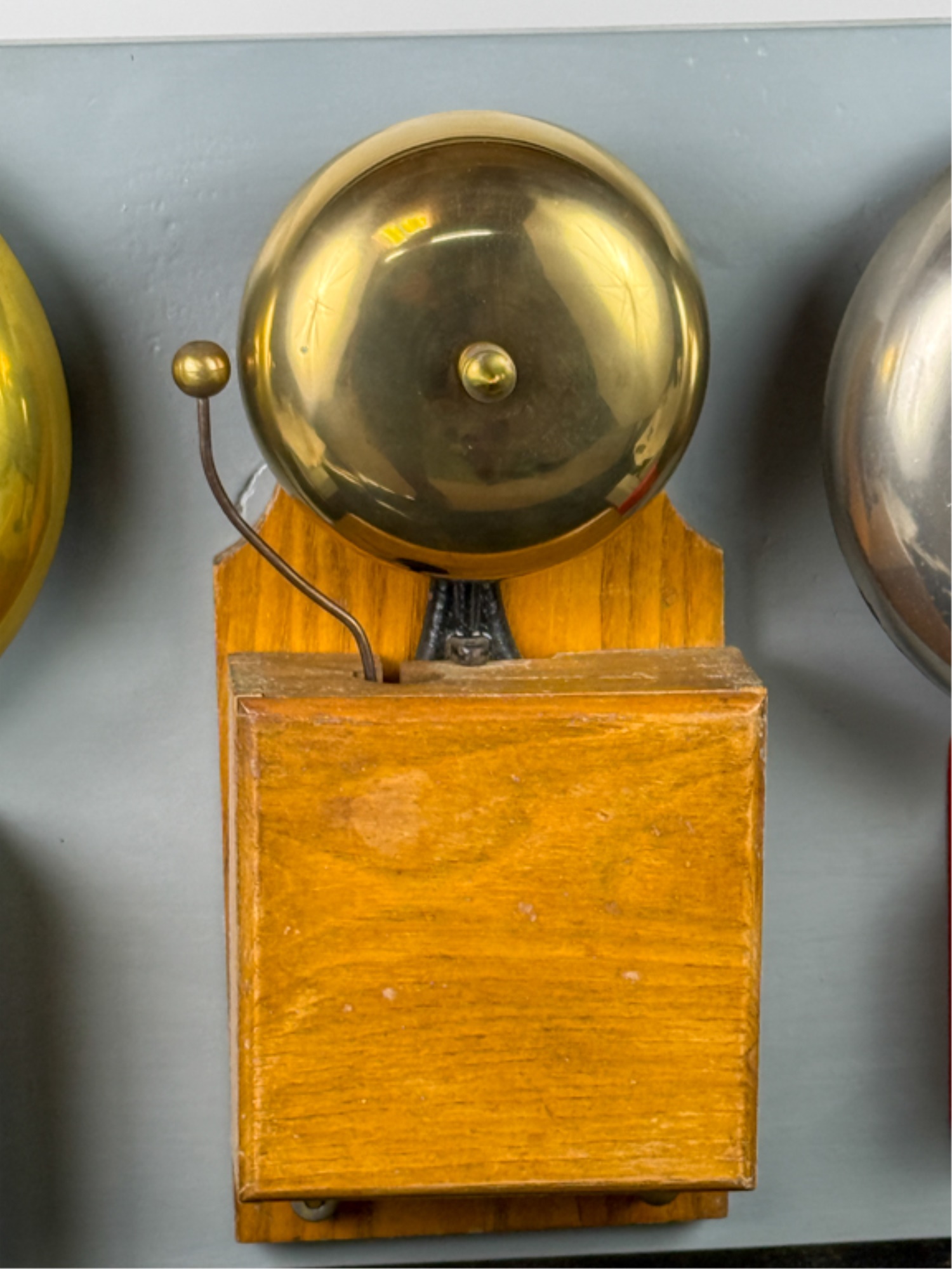 With 1888 Victor Bell. Comes with custom stand. Tallest measures 11 inches. Condition: Good. Temp No 29a