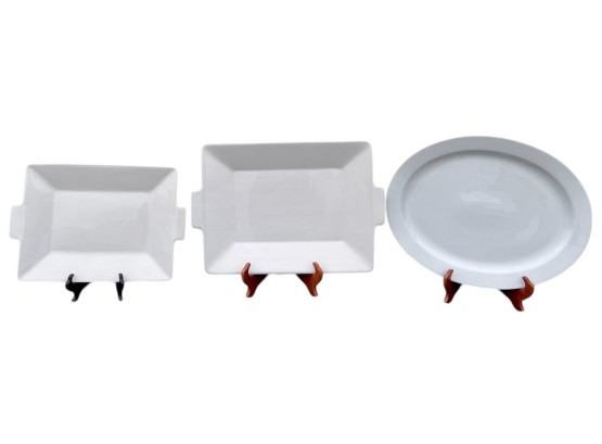 Including (2) Crate & Barrel and a Pottery Barn (14 3/4" x 19") Condition: Some chipping to outer coating of Crate & Barrel trays Temp No 6489